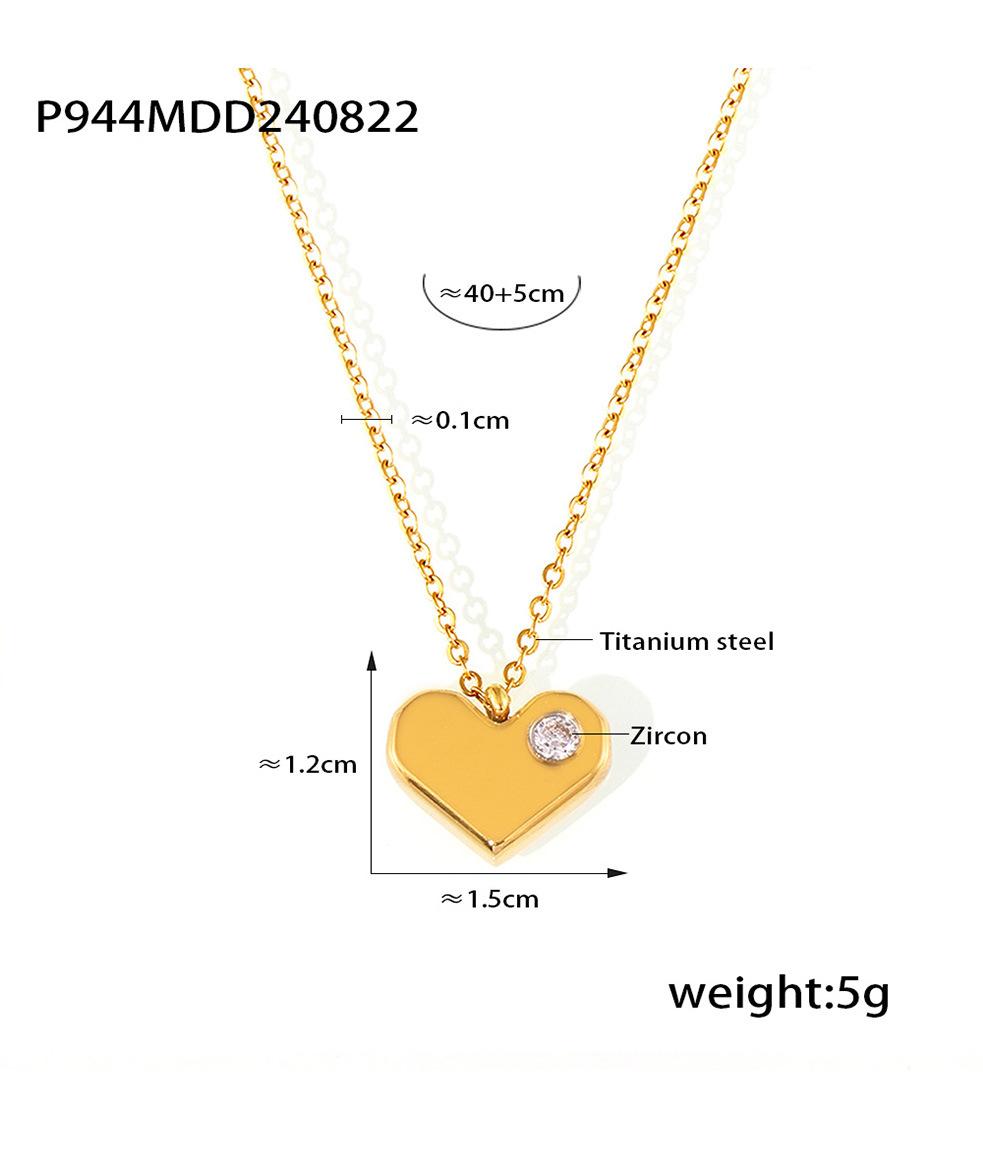 Collar con colgante de corazón de melocotón con incrustaciones de circonitas, estilo europeo y americano, para mujer, chapado en acero de titanio y oro de 18 quilates, cadena de clavícula de alta calidad con nicho.