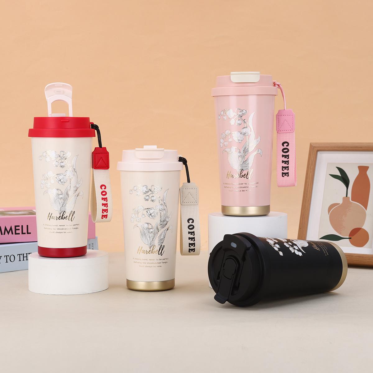Compra Nueva taza de vacío de acero inoxidable 316 con pajita, taza de café doble, taza portátil para llevar al aire libre con cuerda de elevación al por mayor en Joom.pro