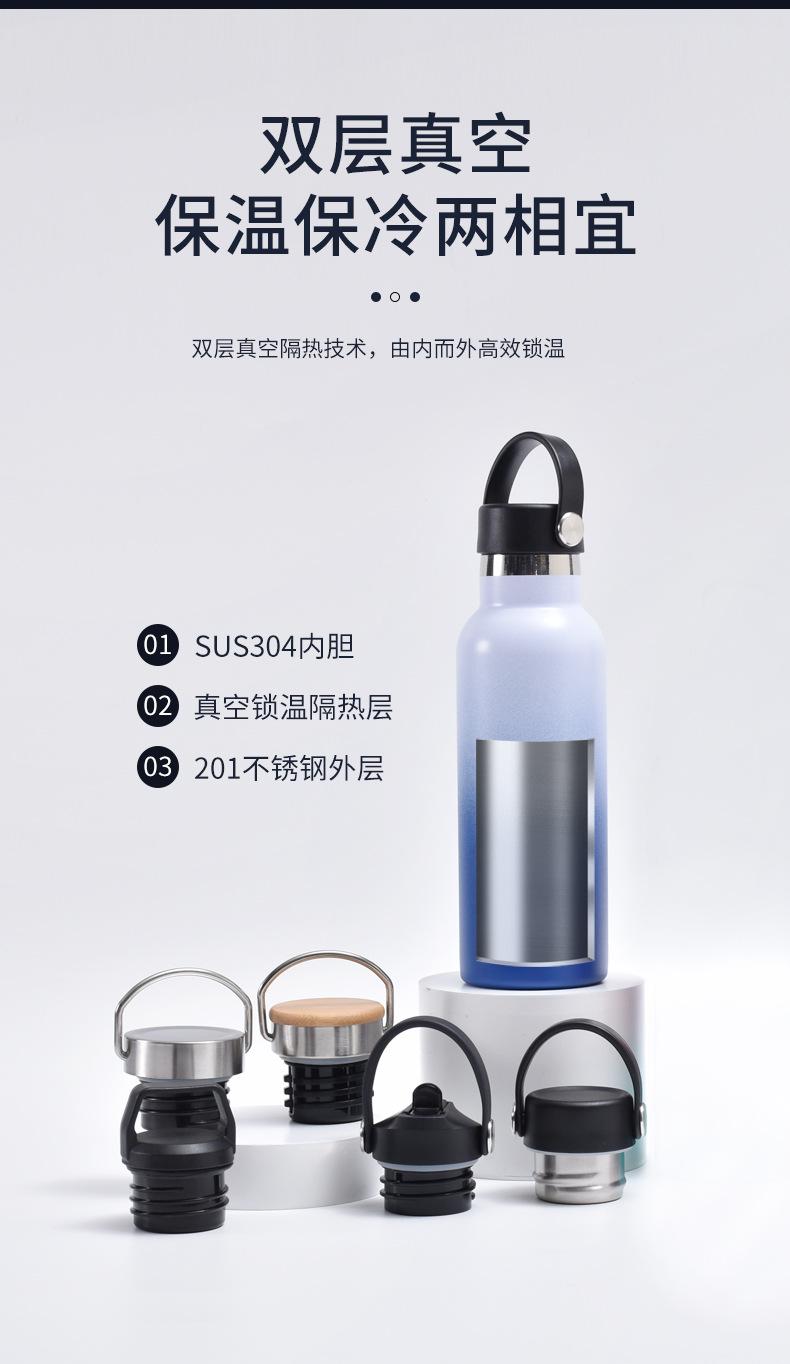 Hervidor de agua deportivo de boca grande de estilo americano con múltiples tapas transfronterizas personalizado, termo de acero inoxidable de gran capacidad para exteriores