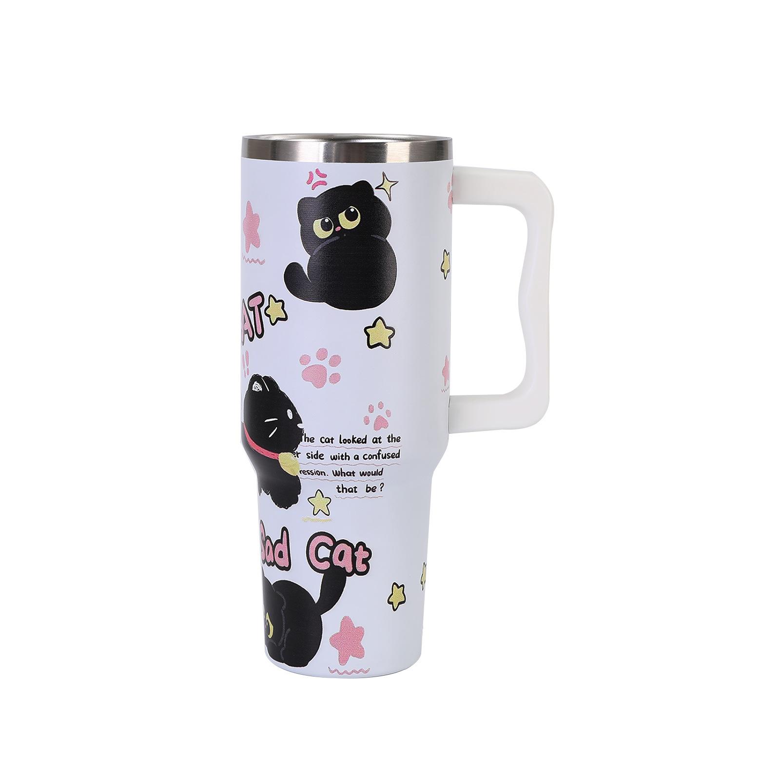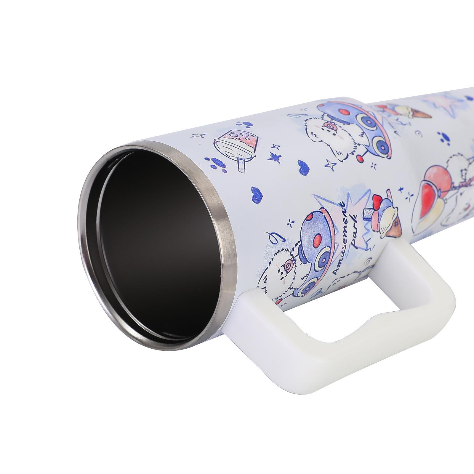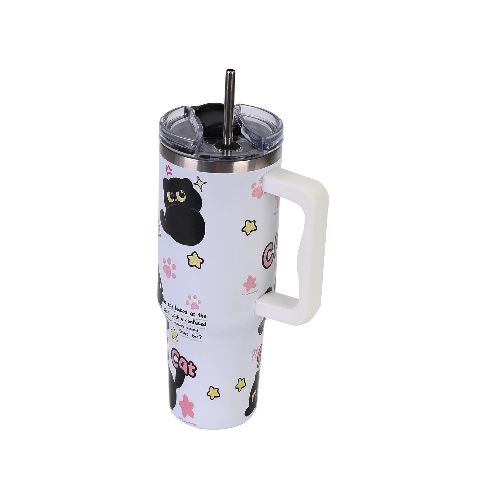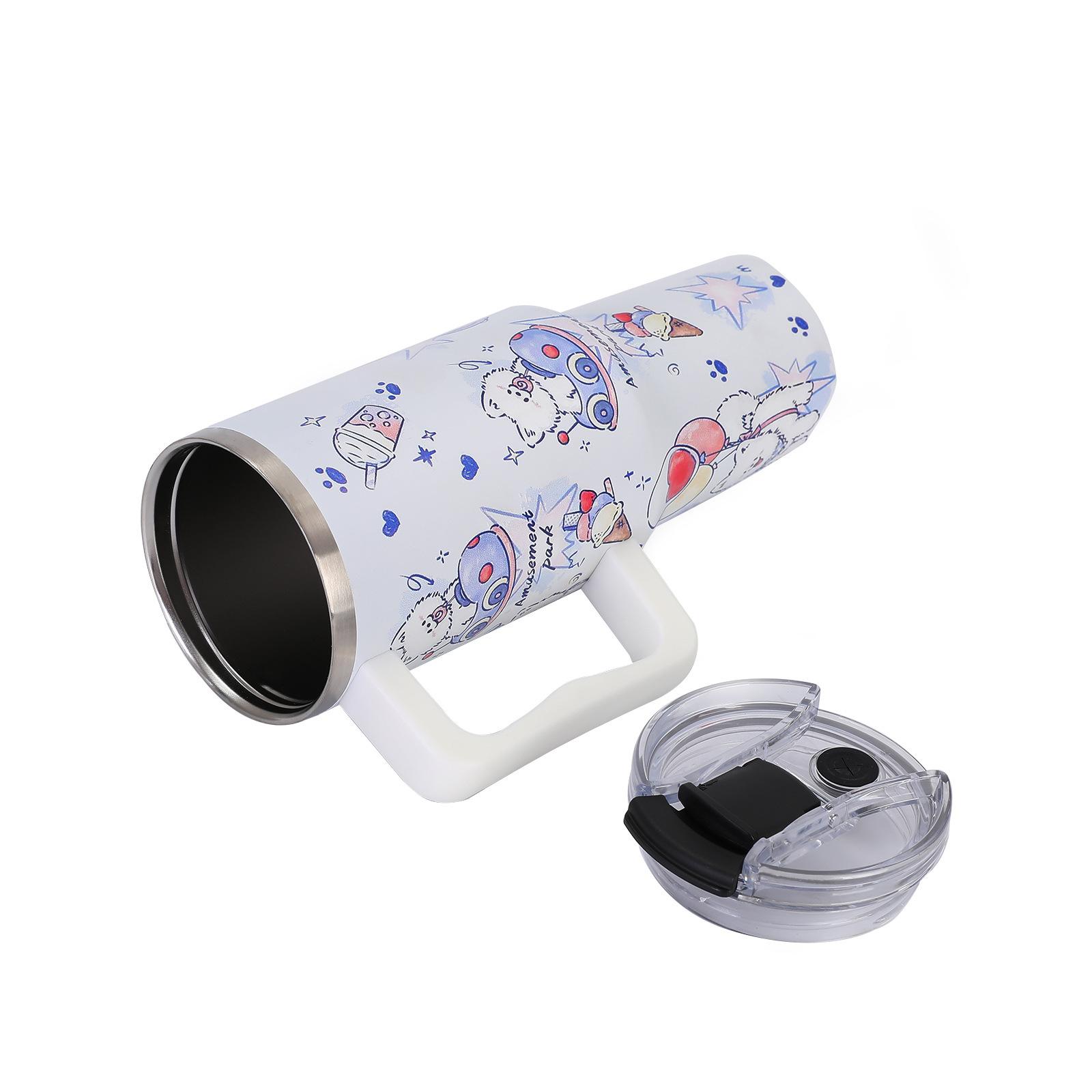 Termo de acero inoxidable 304 de 40 oz con asa, impresión 3D personalizada, taza creativa de doble capa para coche.
