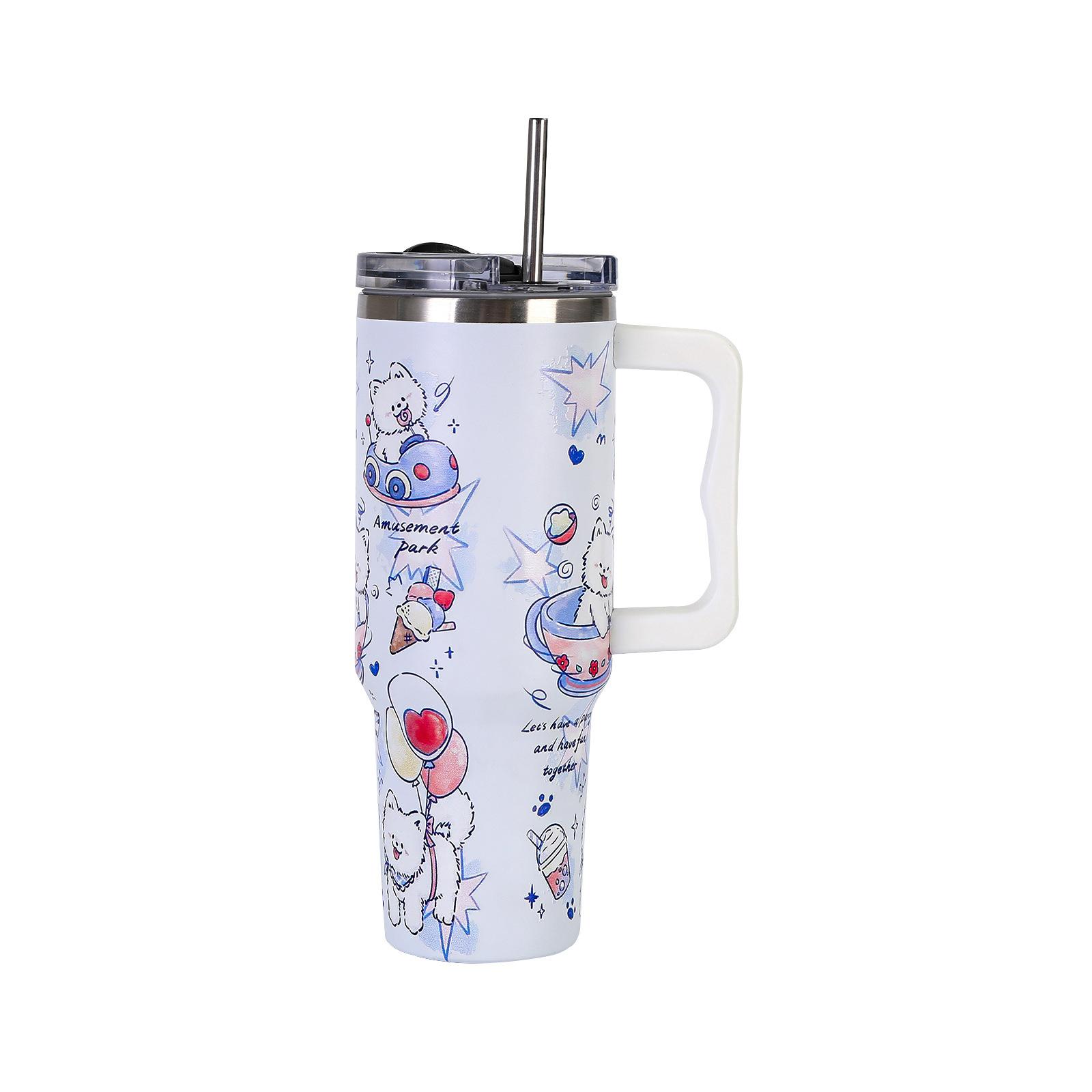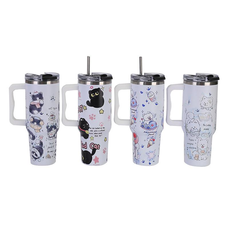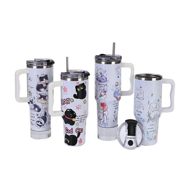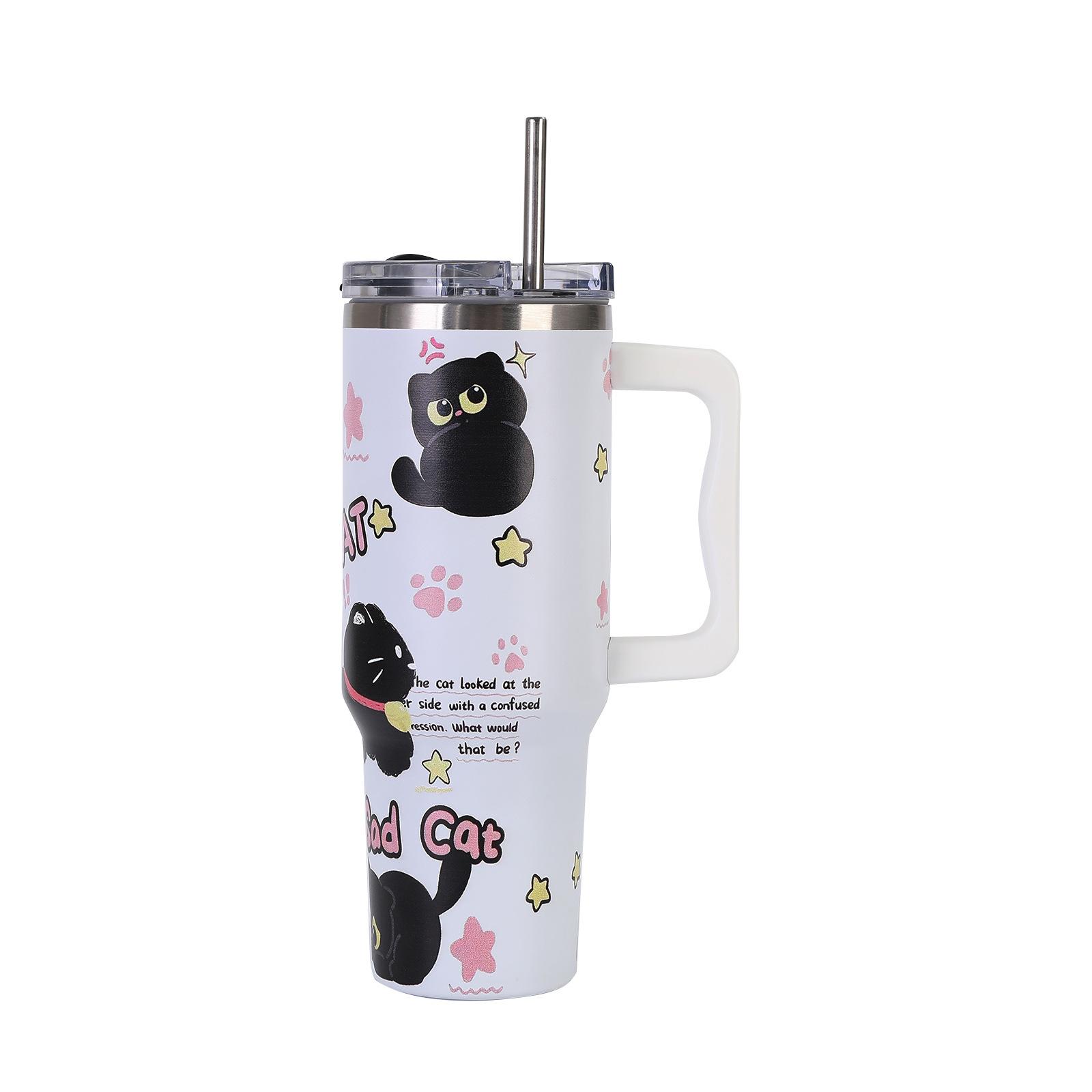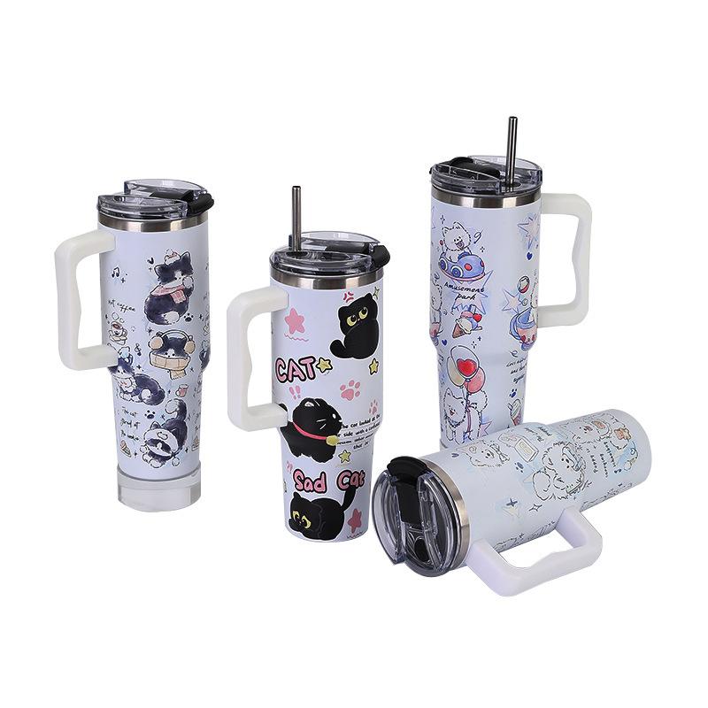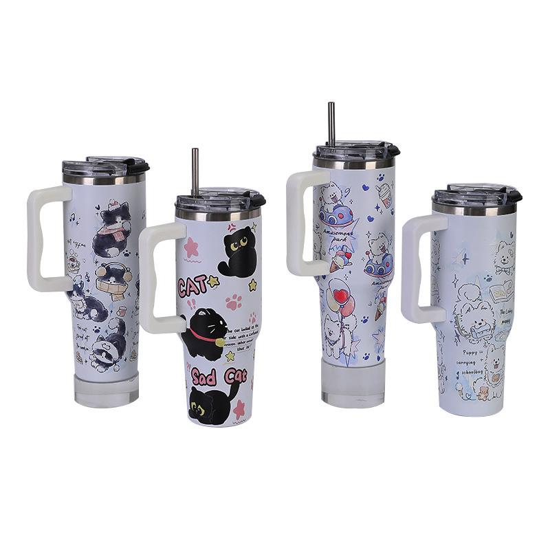 Termo de acero inoxidable 304 de 40 oz con asa, impresión 3D personalizada, taza creativa de doble capa para coche.