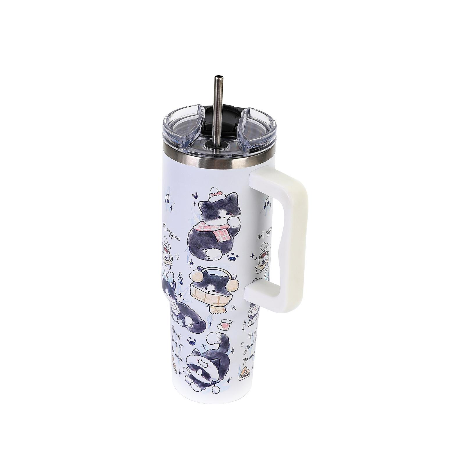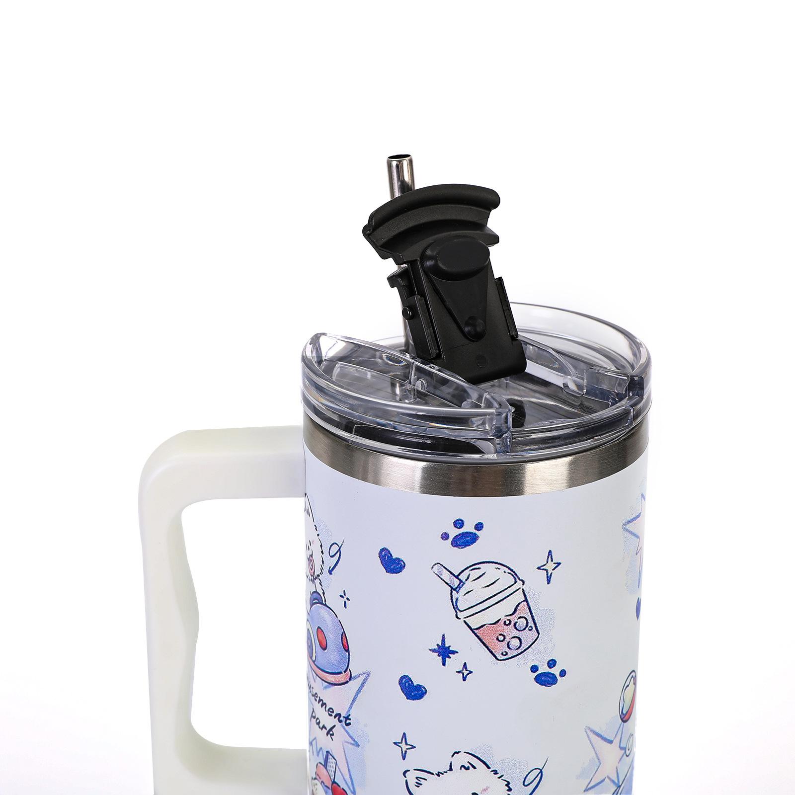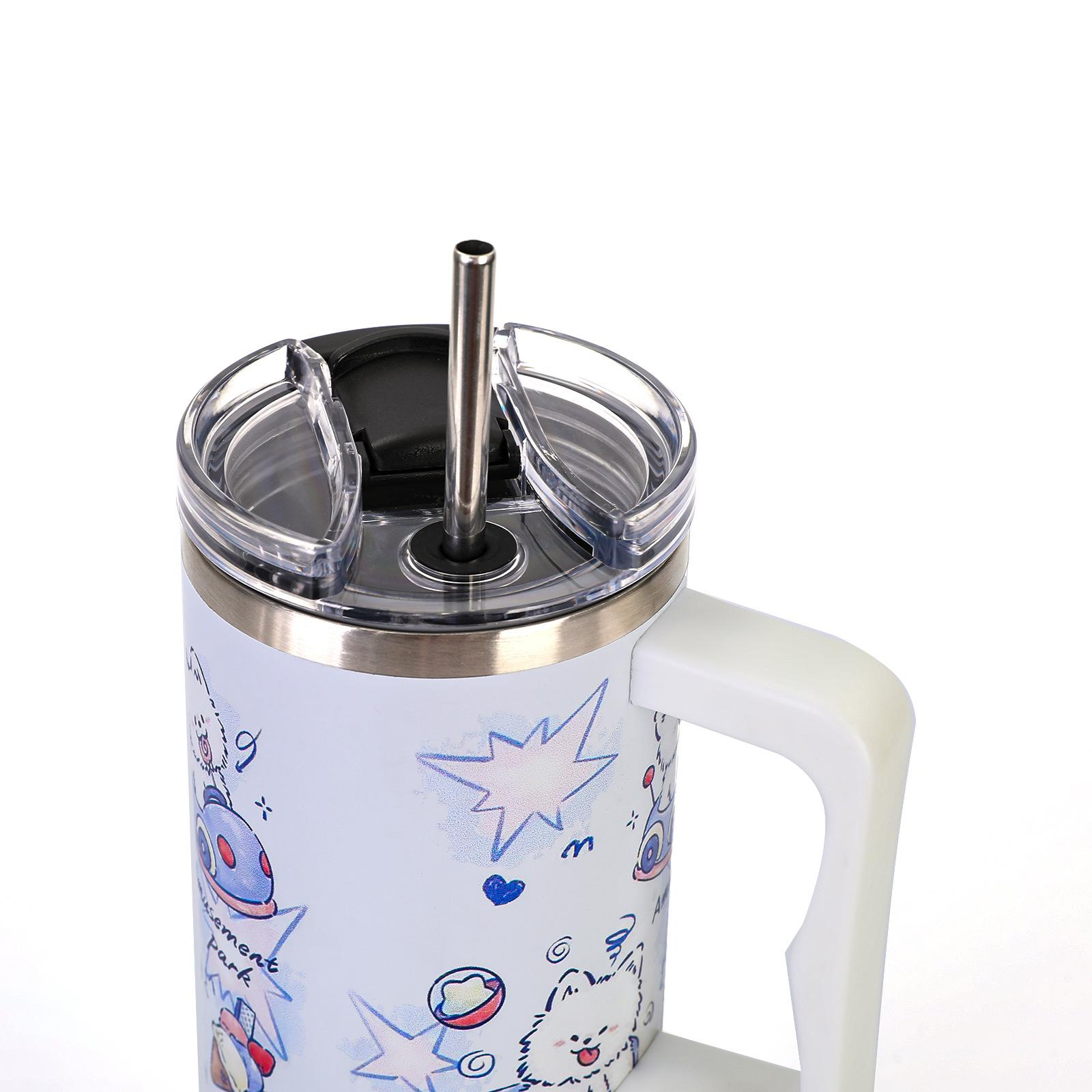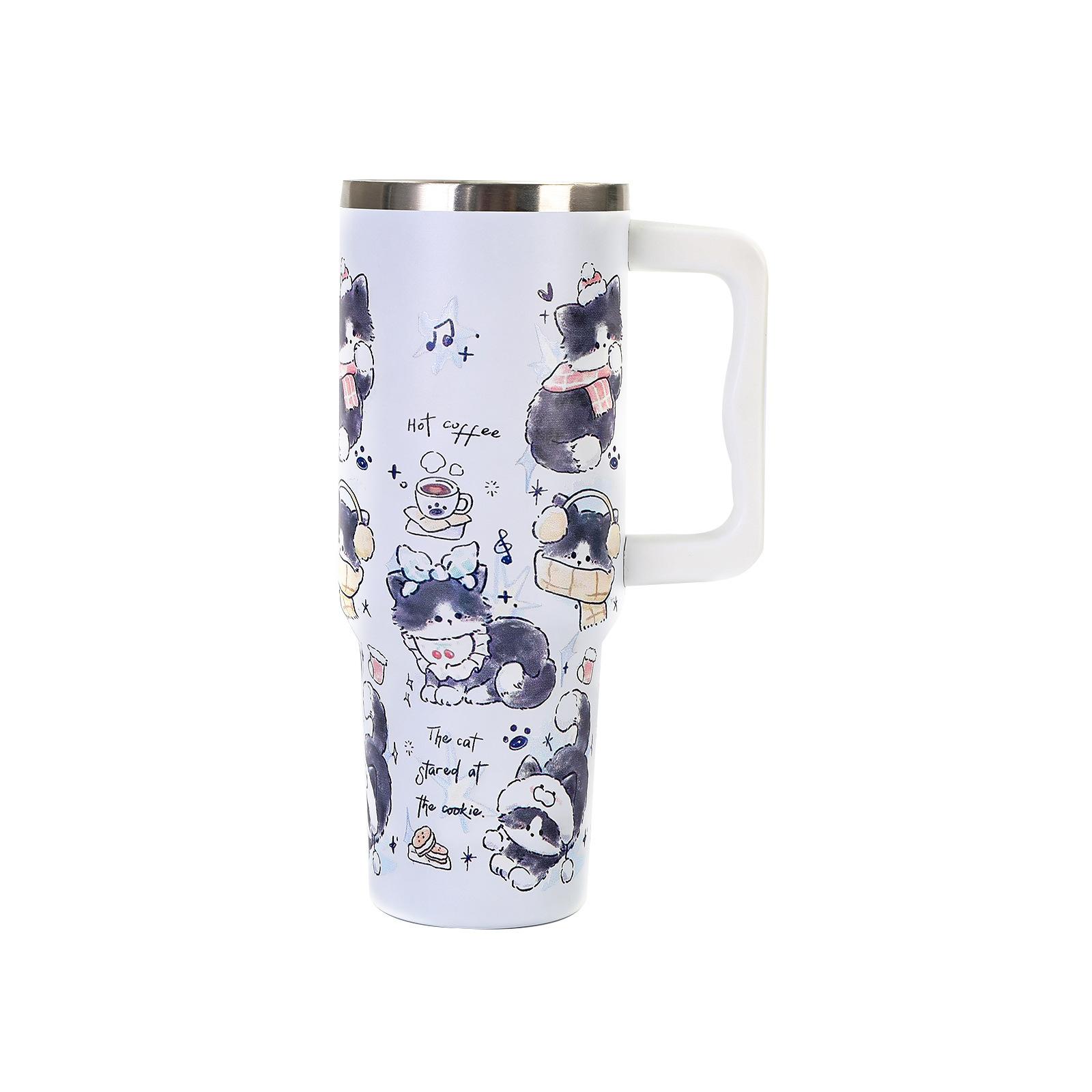 Termo de acero inoxidable 304 de 40 oz con asa, impresión 3D personalizada, taza creativa de doble capa para coche.