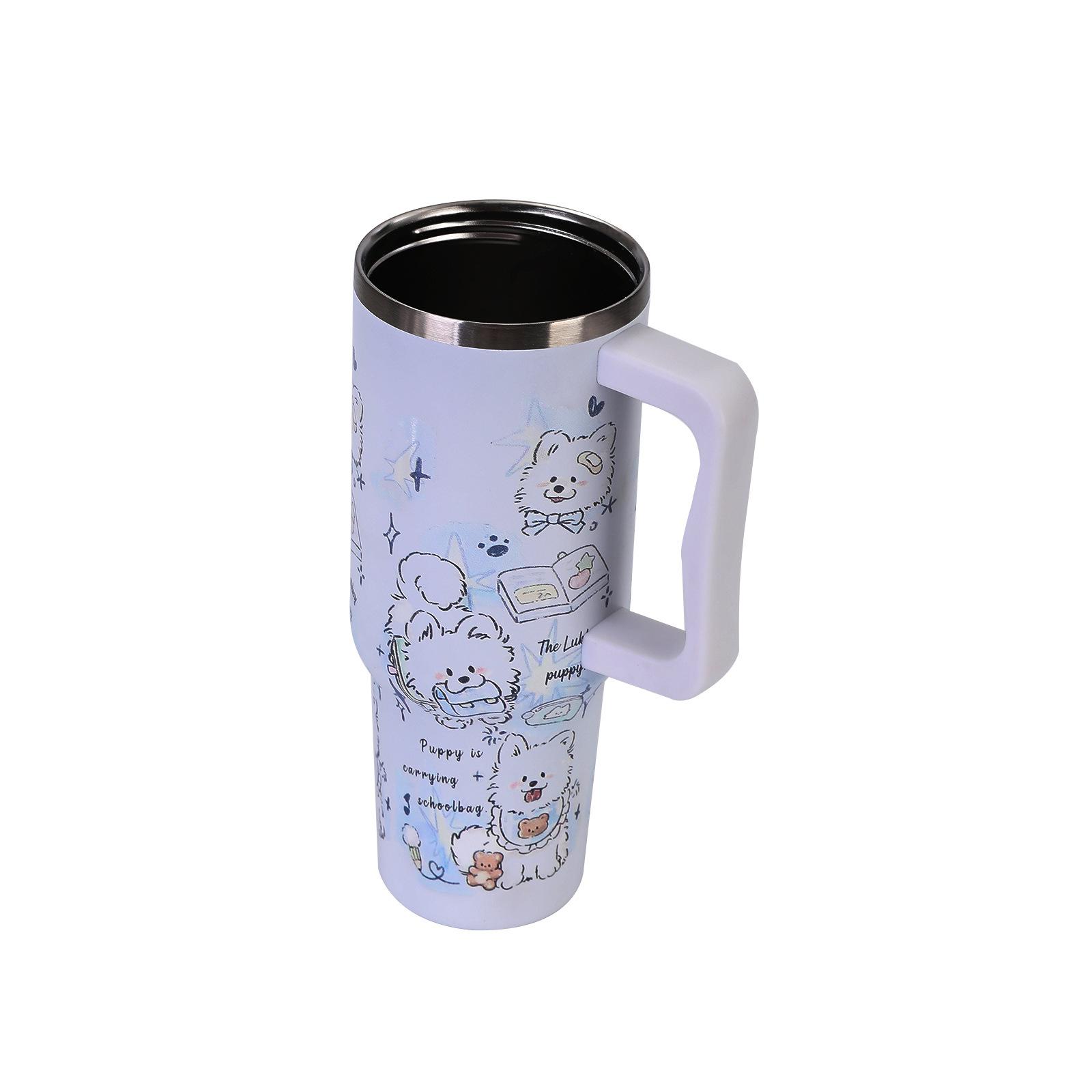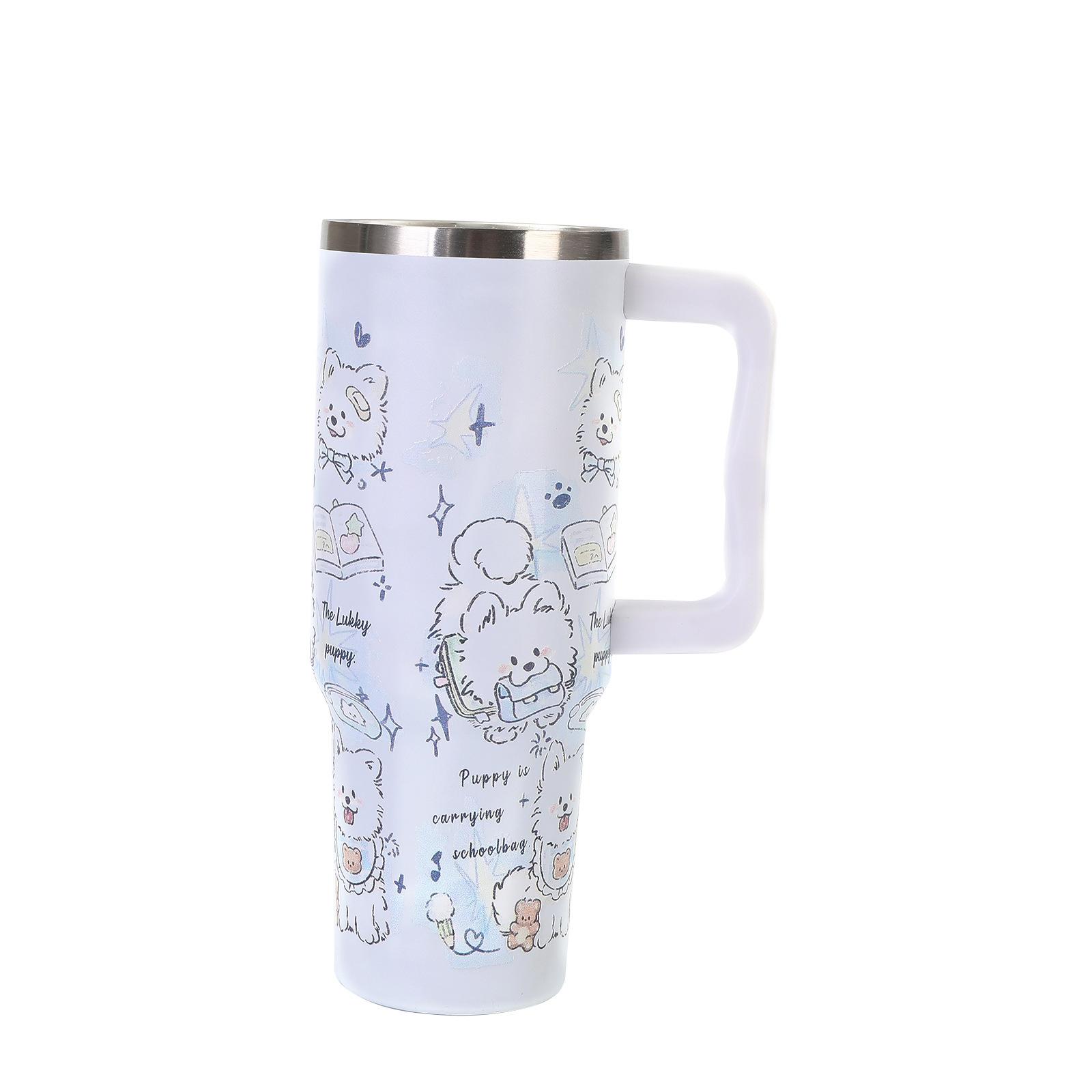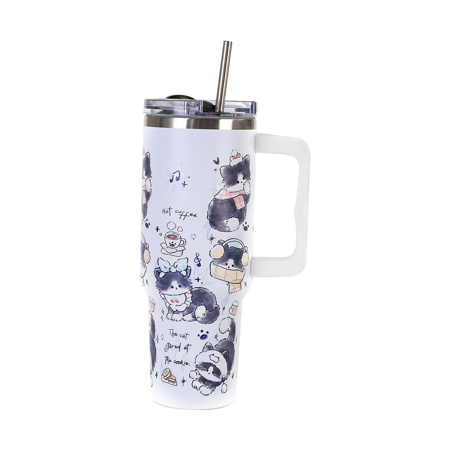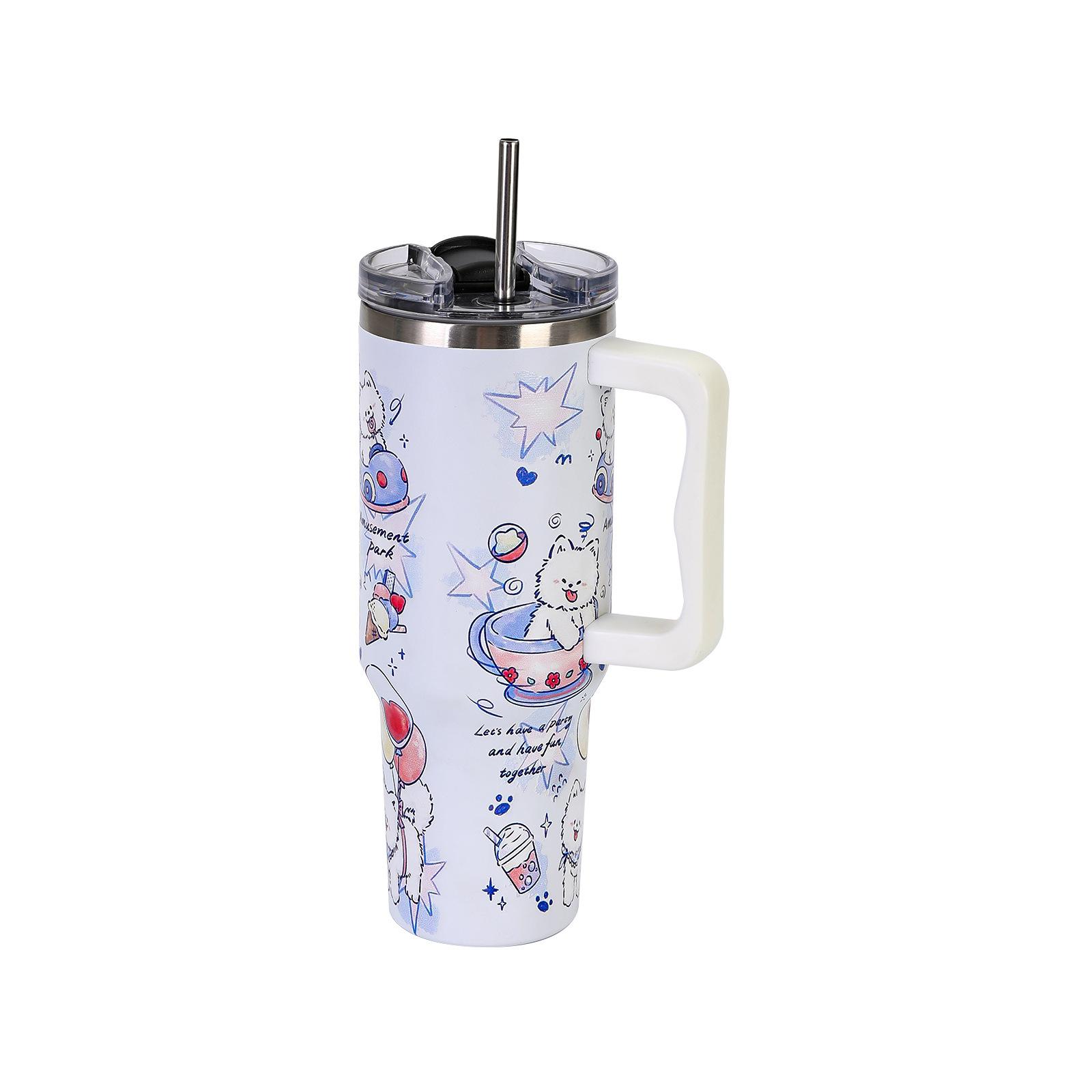 Termo de acero inoxidable 304 de 40 oz con asa, impresión 3D personalizada, taza creativa de doble capa para coche.