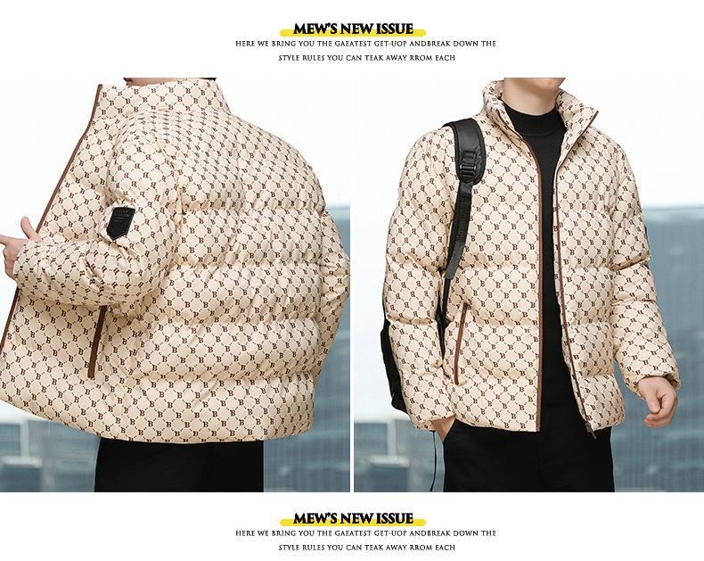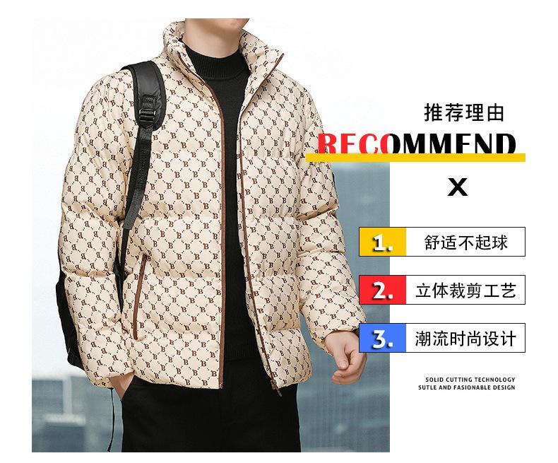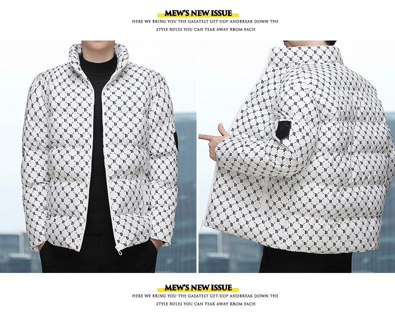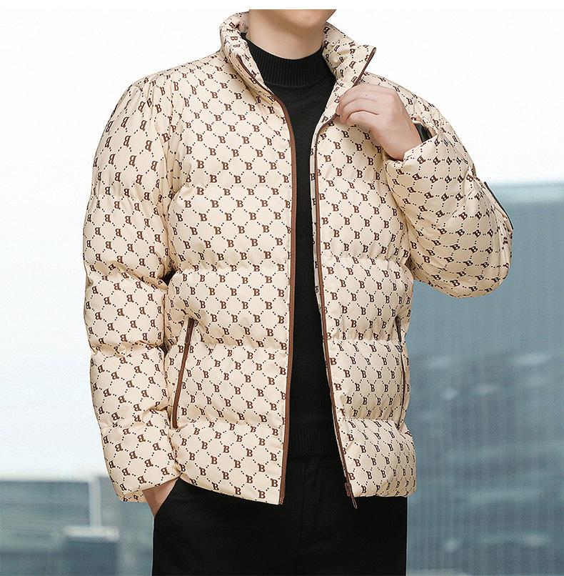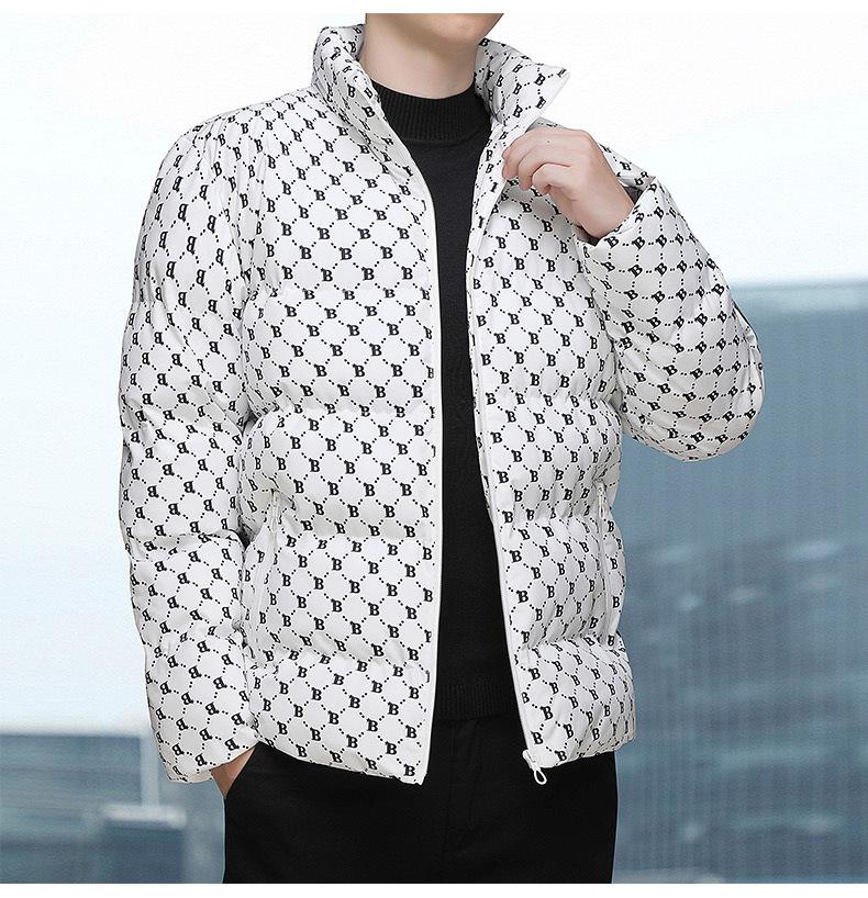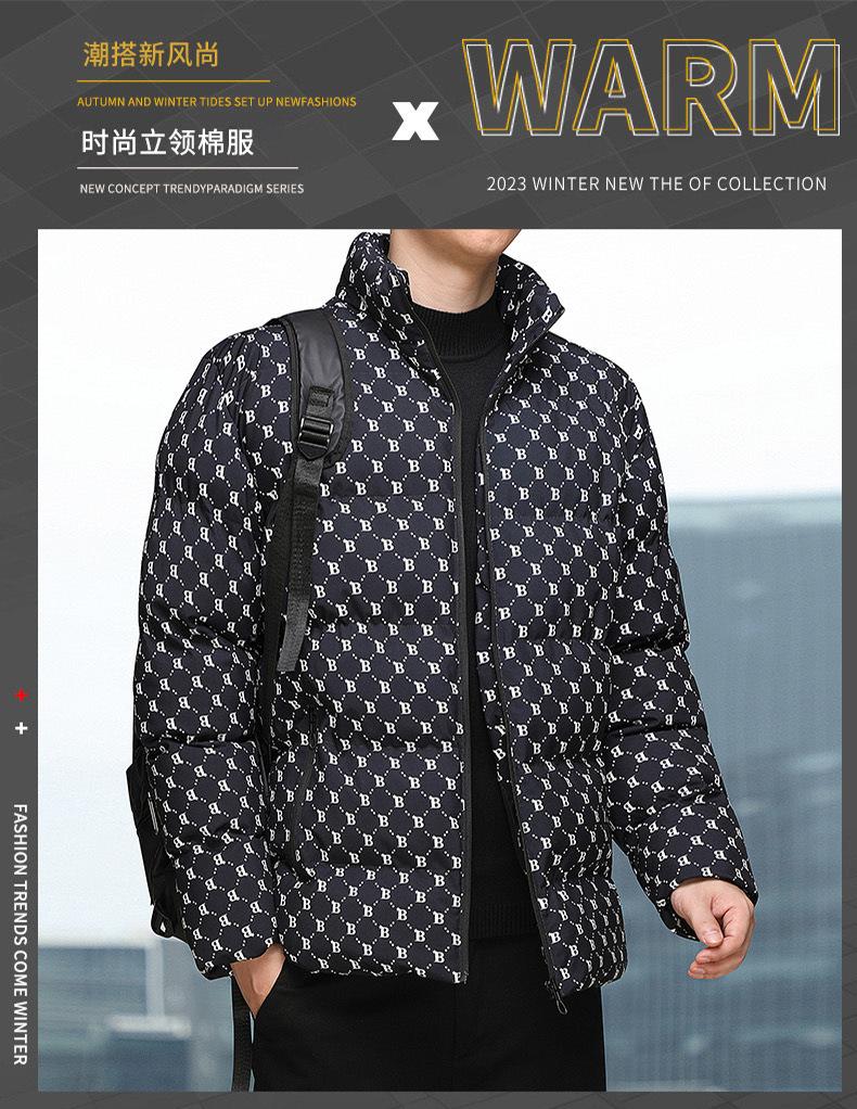 Abrigo acolchado de algodón para hombre, otoño e invierno 2023, nuevo abrigo acolchado de algodón con letra B de moda, abrigo grueso y cálido con cuello alto, abrigo de pan para hombre