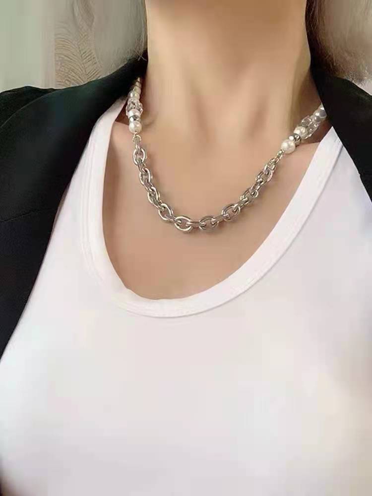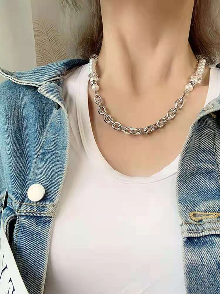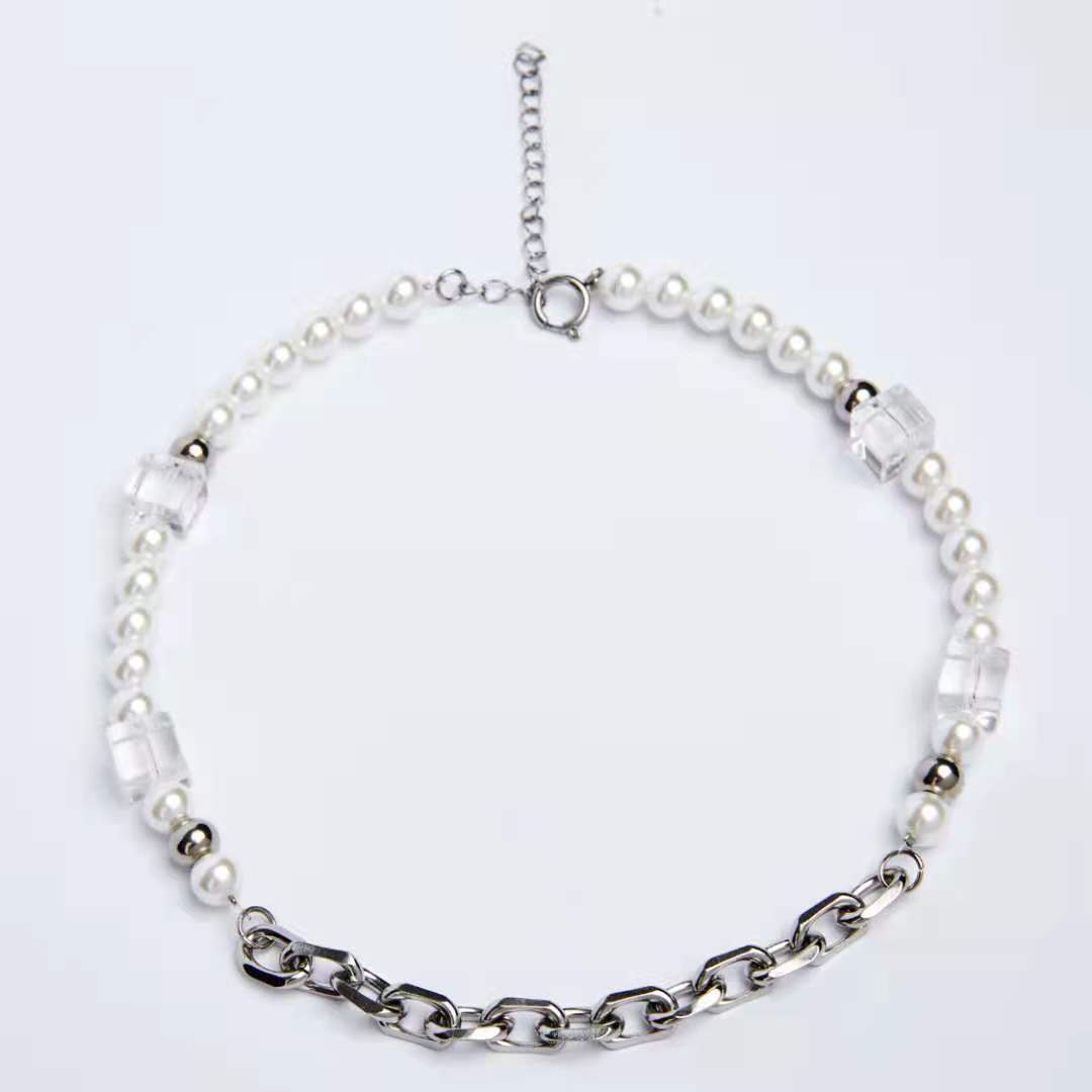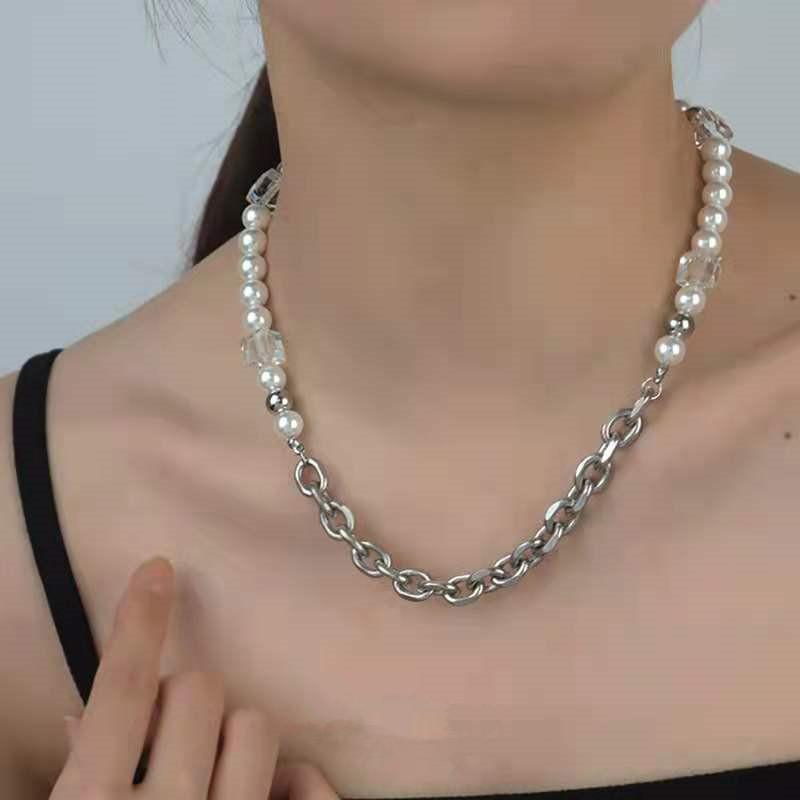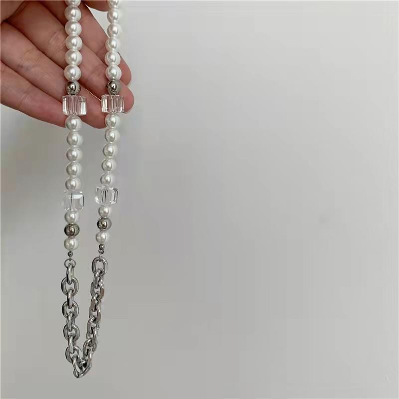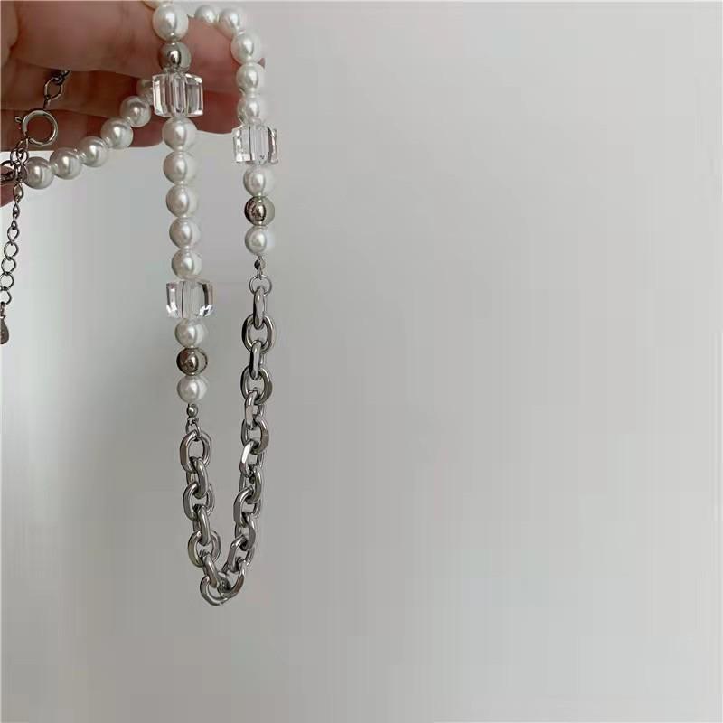 Collar Cuadrado de Perlas de Cristal 2021 Nuevo Verano para Mujer Lujo Ligero Nicho ins Cadena de Clavícula Moderna Hip-Hop para Hombre