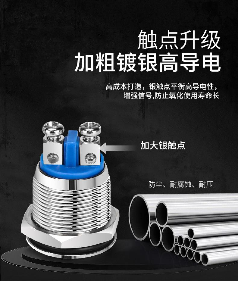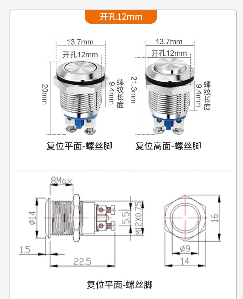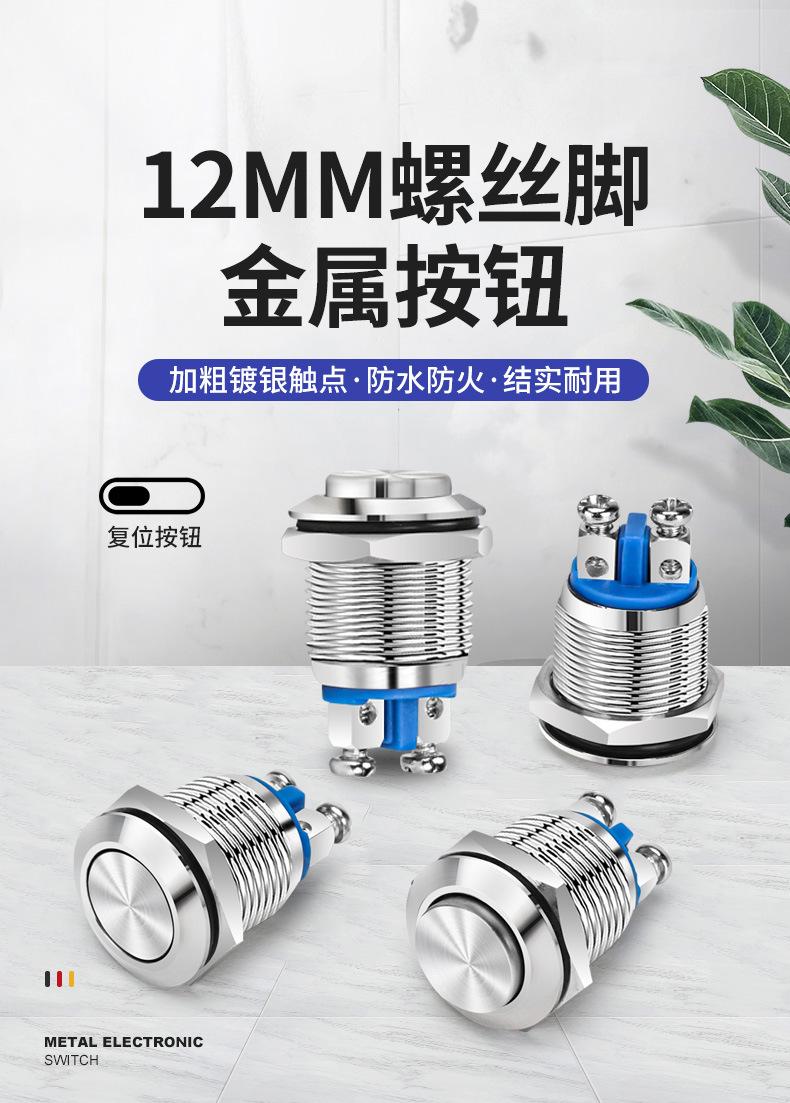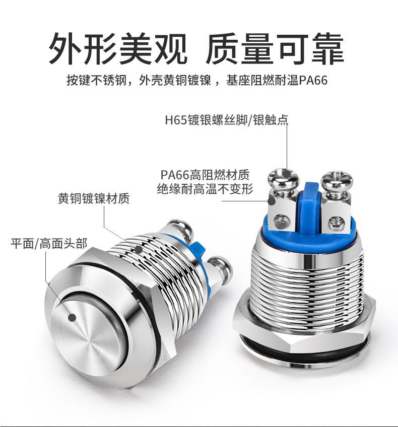 Interruptor de botón de metal de 12 mm, reinicio, impermeable, inicio, redondo, pequeño, interruptor de encendido, tornillo, pie, cabeza plana, cabeza alta