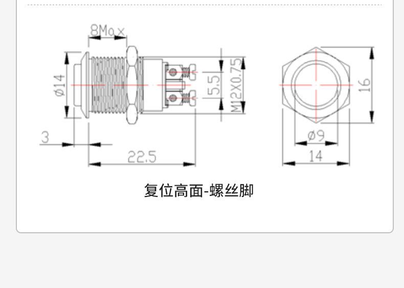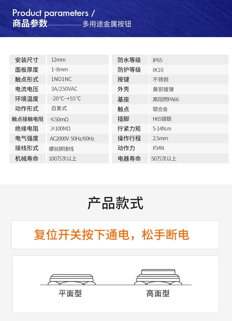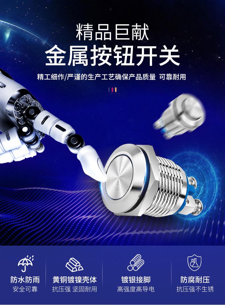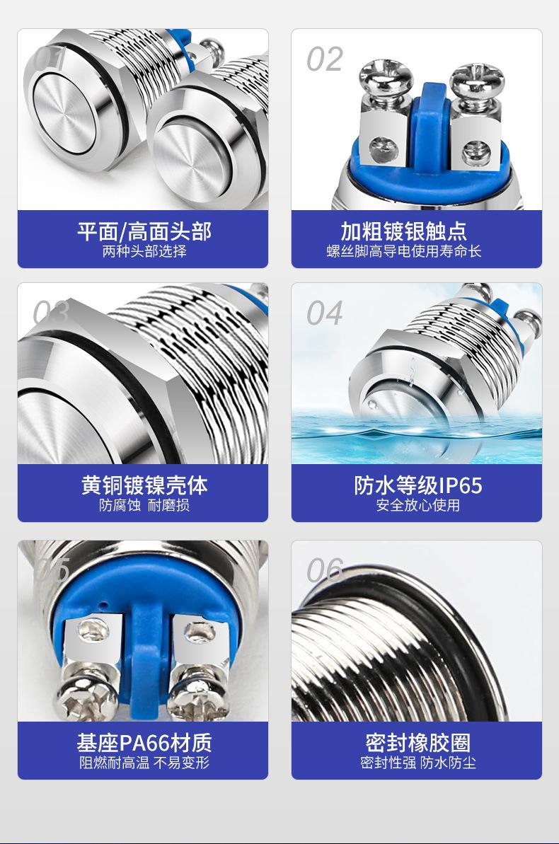 Interruptor de botón de metal de 12 mm, reinicio, impermeable, inicio, redondo, pequeño, interruptor de encendido, tornillo, pie, cabeza plana, cabeza alta
