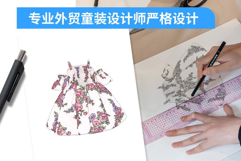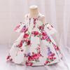 Nuevo Vestido de Princesa para Niñas Transfronterizo Vestido Estampado para Niños Vestido para Niña de un Año Vestido de Verano con Hombro Descubierto Vestido Largo de Satén