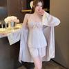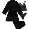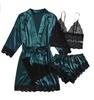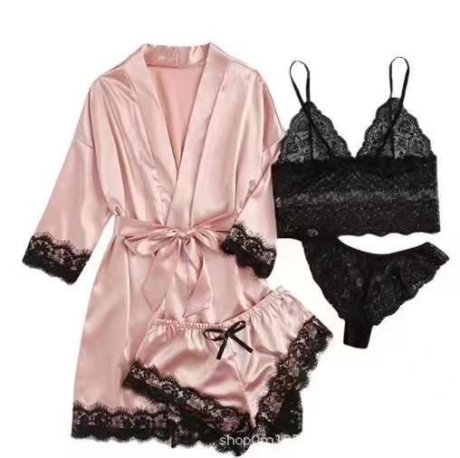 Pijama de Ropa de Casa para Mujer de Estilo Europeo y Americano, Conjunto de 4 Piezas de Encaje y Satén con Tirantes, Traje de Verano para Mujer, Camisón con Shorts al por Mayor