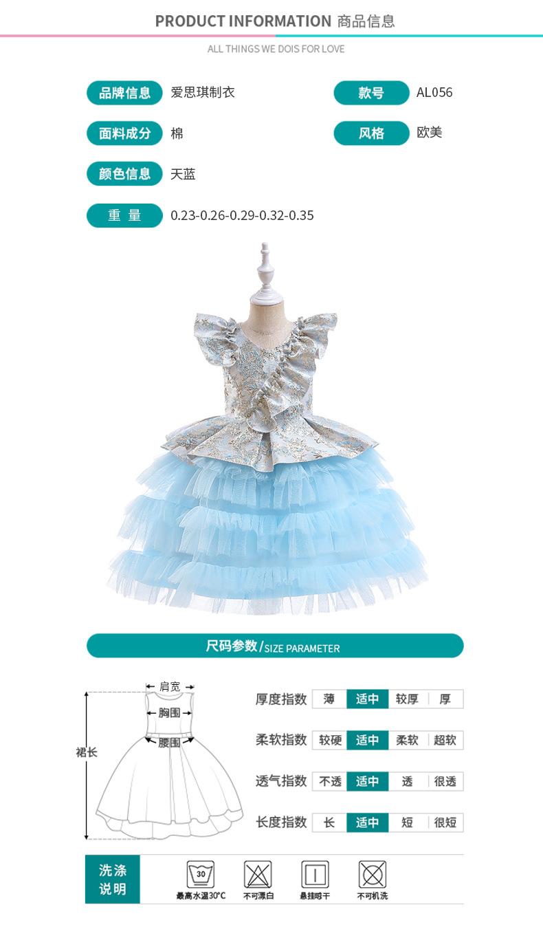 Nuevo vestido de niña transfronterizo Vestido de princesa manga volada para niños vestido de pastel esponjoso de malla vestido de noche elegante para niñas