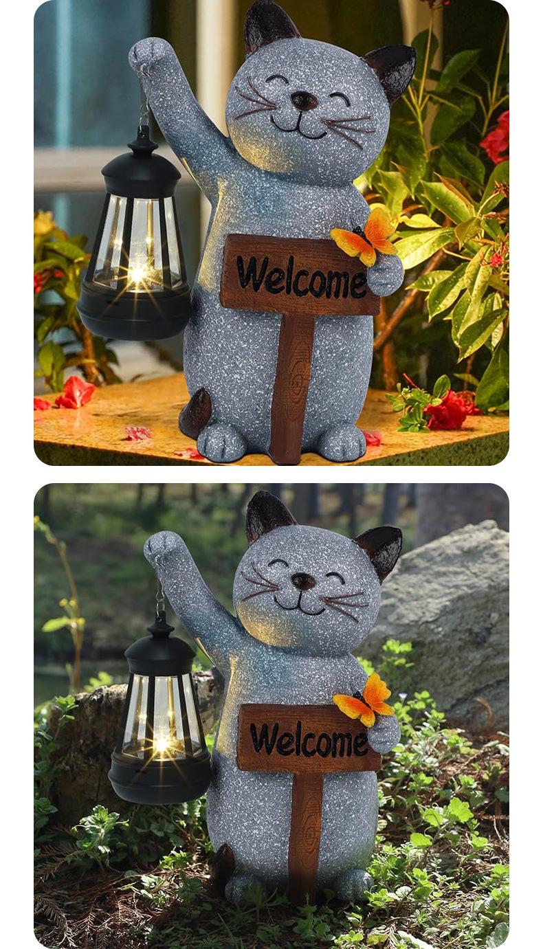 Farol de exterior personalizado de Amazon, adorno de gato para césped, bonito animal de imitación, artesanía de resina, decoración.