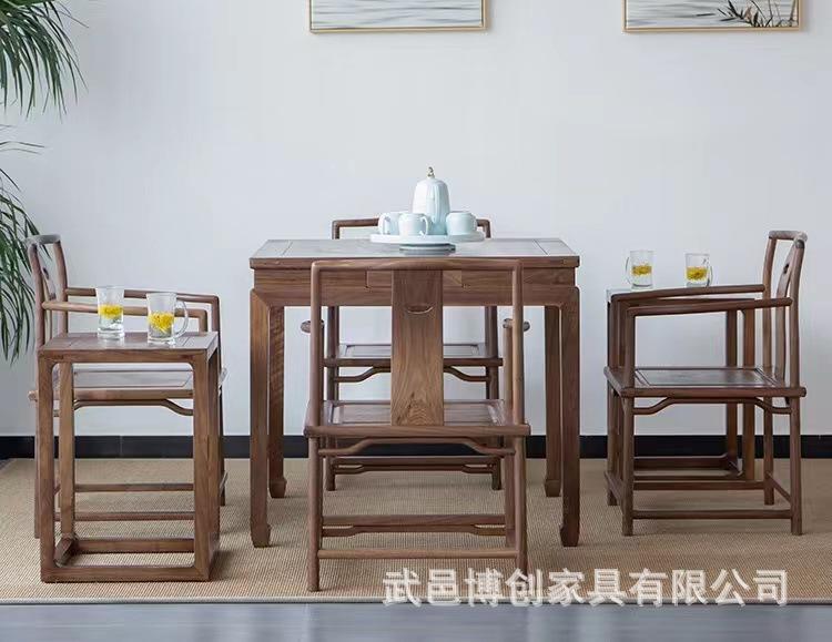 Nueva mesa de restaurante y silla de estilo chino con ocho hadas de olmo antiguo, mesa de té zen de madera maciza, mesa de té para el hogar, mesa cuadrada pequeña