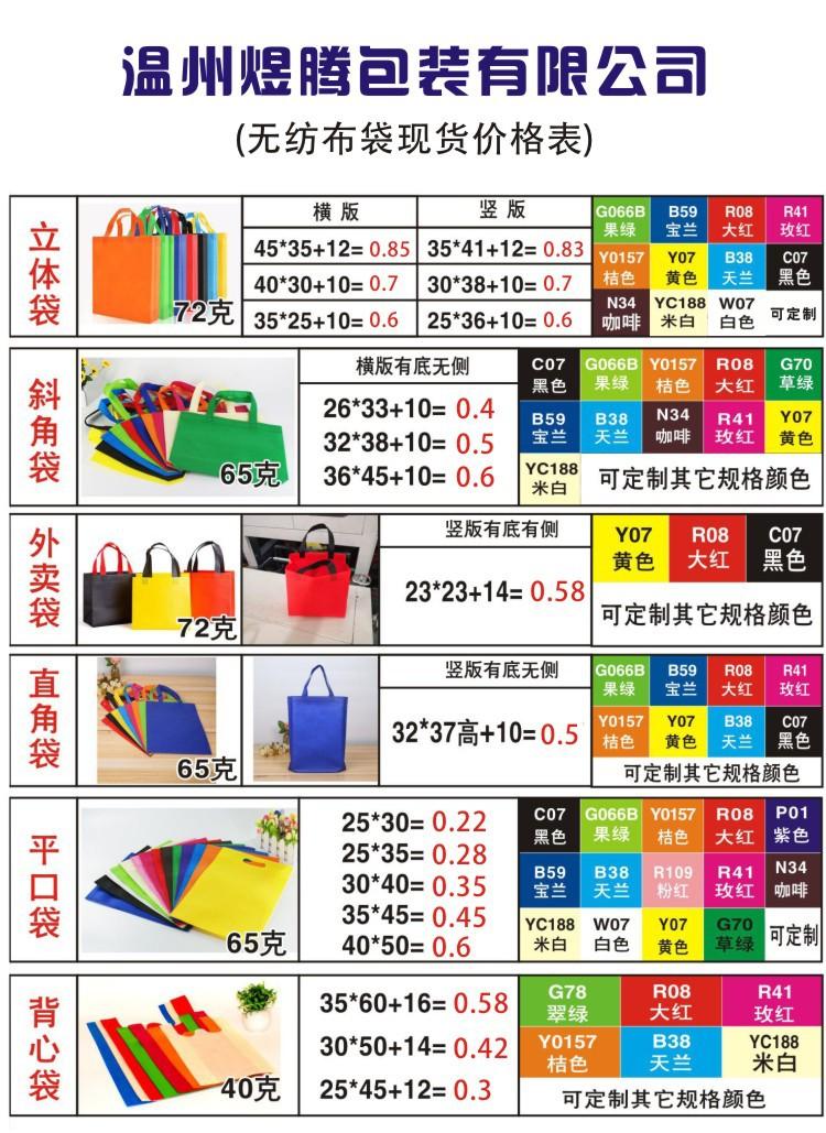 Los productos principales: bolsas de embalaje no tejidas, bolsas de embalaje de plástico, impresión a color variada, serigrafía, etc. Nuestra empresa se adhiere al principio de servicio de desarrollo de calidad y el cliente primero. Insistimos en la alta calidad