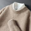 Suéter de lana 100% para hombre, jersey de cuello redondo, holgado y grueso, de negocios, con base de punto cálido de Jacquard, para otoño e invierno.