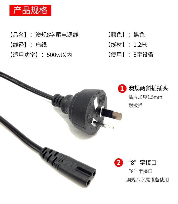 Compra Cable de alimentación estándar australiano, adaptador plano de 8 colas 2*075 de 1,2 metros, cable de alimentación estándar australiano, cable de enchufe australiano al por mayor en Joom.pro