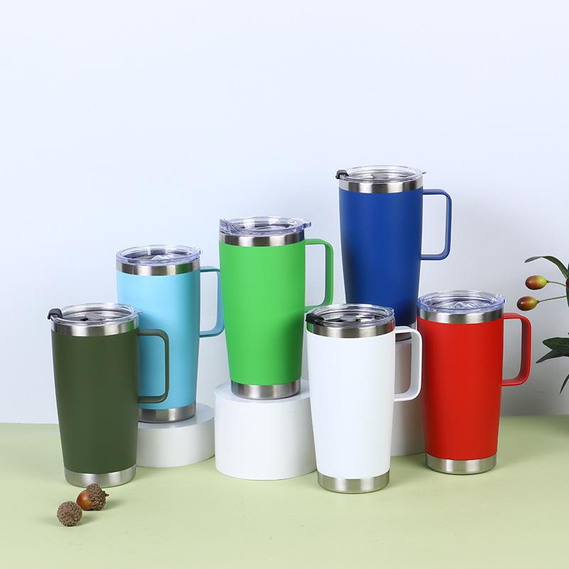 Termo portátil para coche de acero inoxidable 304 con asa de 20 oz, gran capacidad, aislamiento térmico, para cerveza, con borde cruzado