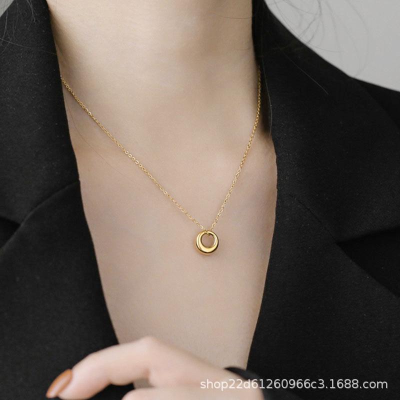 Versión coreana de collar de acero de titanio con anillo simple de Joker para mujer, viento frío, acero de titanio, oro, moda, cadena para clavícula, joyería al por mayor