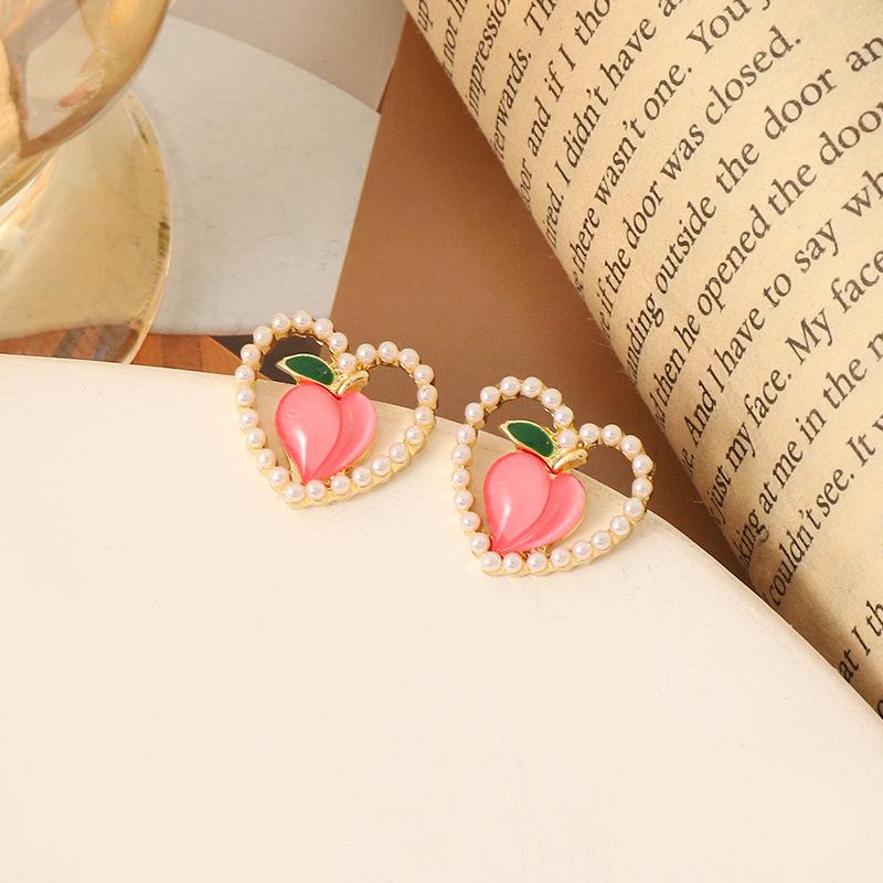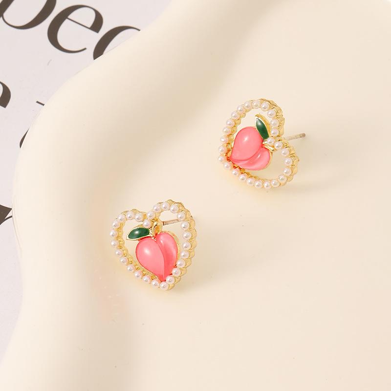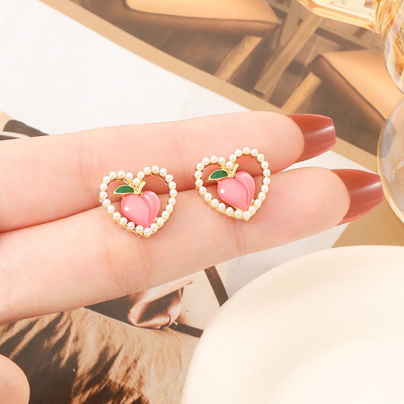 Compra Pendientes para mujer, nuevos y bonitos pendientes con forma de corazón de melocotón, preciosos pendientes de botón con aguja plateada, color rosa, elegantes, ligeros, de lujo, con un dulce diseño de nicho. al por mayor en Joom.pro