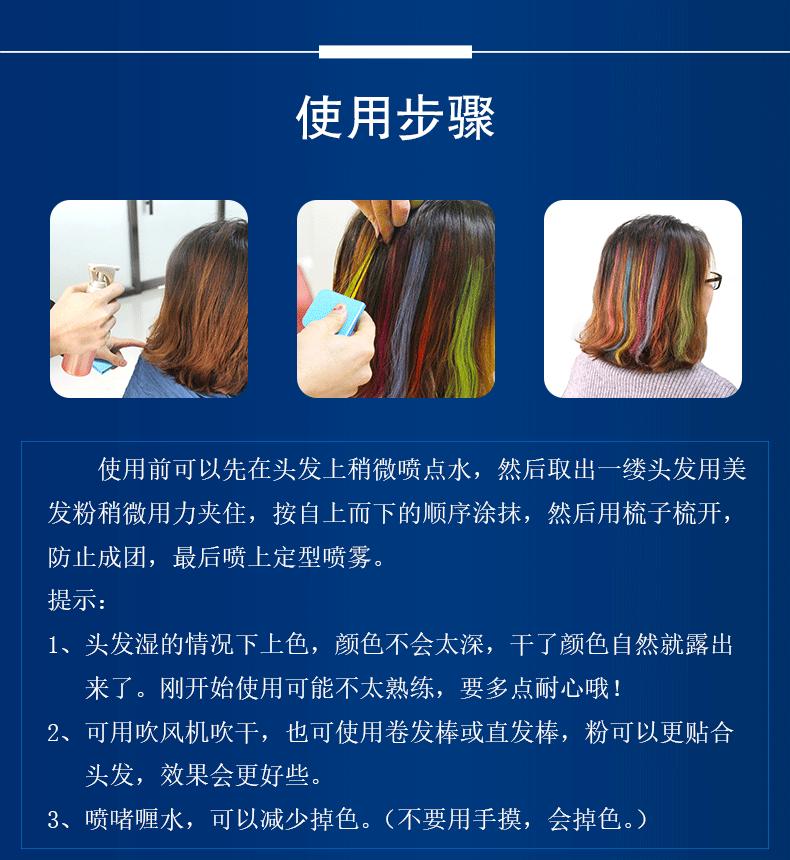 Venta Caliente Transfronteriza Tinte de Cabello Desechable en Polvo Pastel Polvo para el Cabello Tinte Temporal Colorido para el Cabello Paquete de 3g