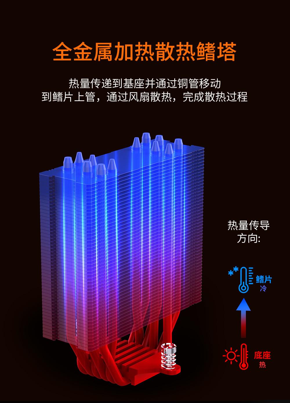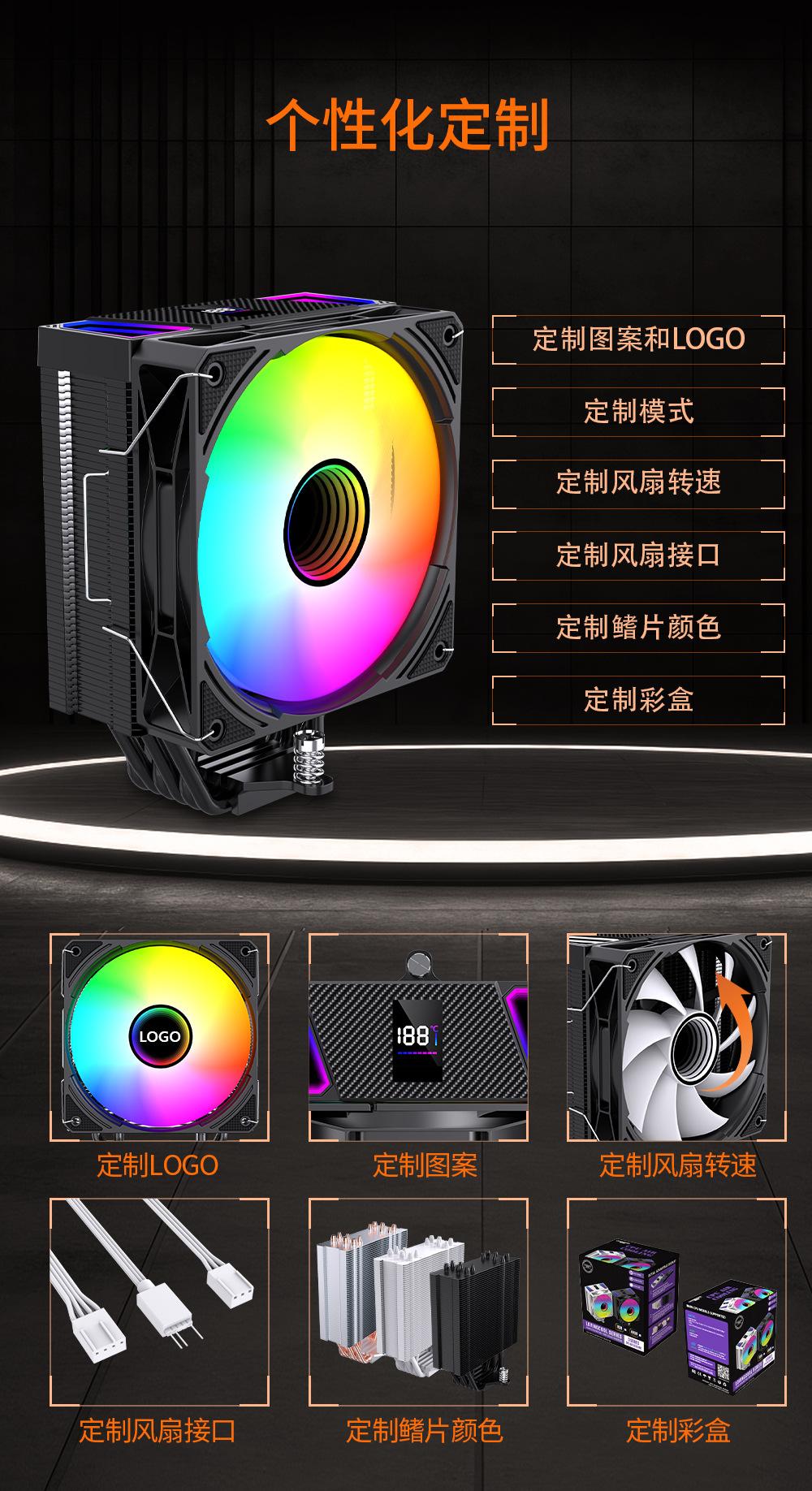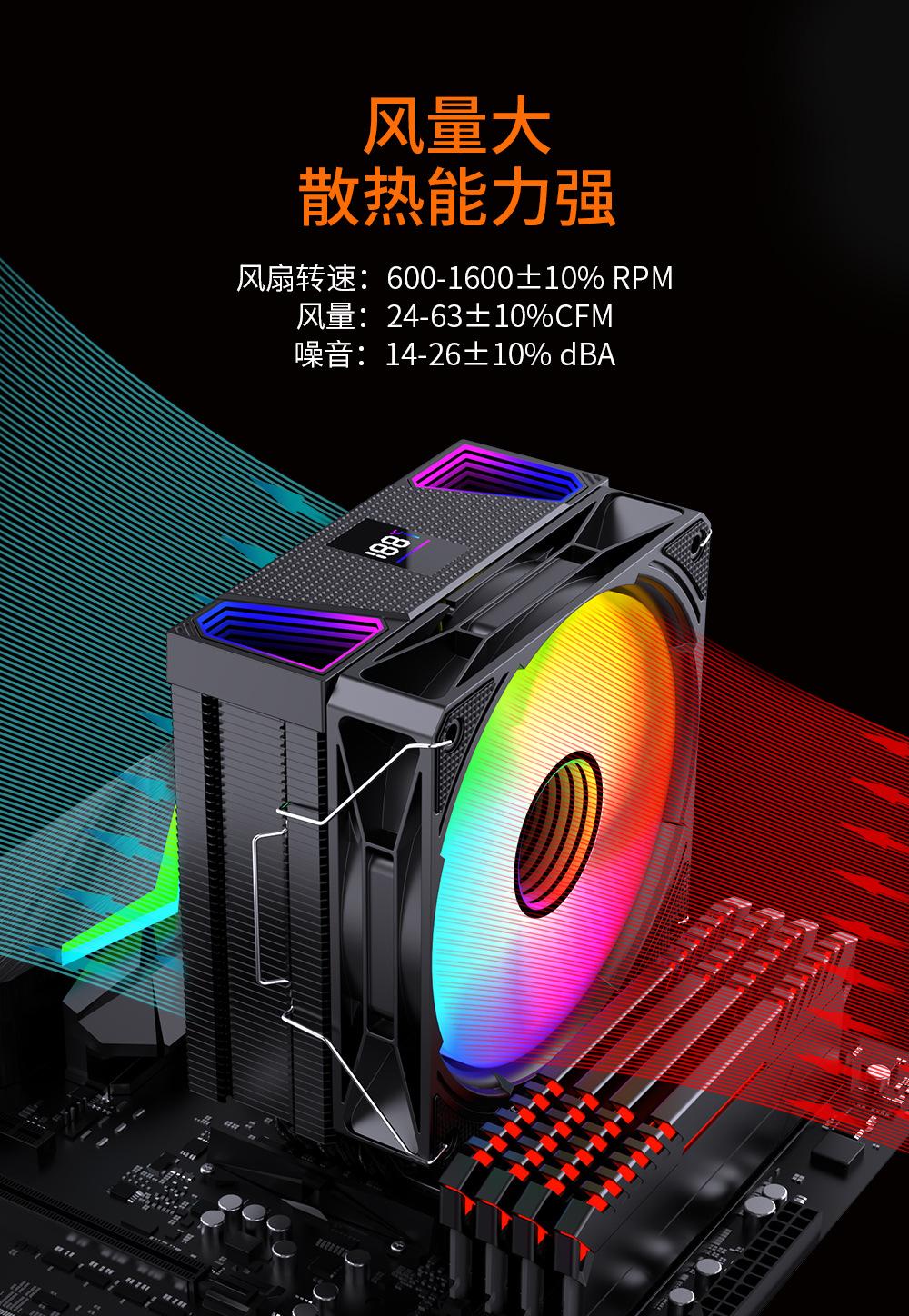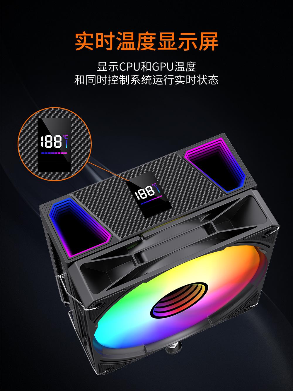Radiador de CPU con 6 tubos de cobre y pantalla de temperatura, control de temperatura síncrono argb shuang, alta disipación de calor, silencioso, universal para todas las plataformas.
