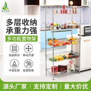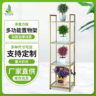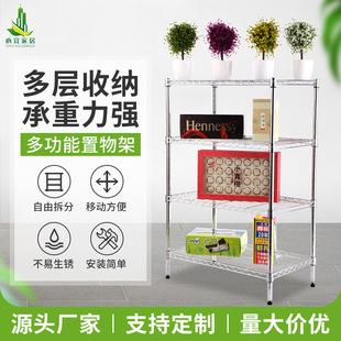 Estante de piso de acero al carbono, estante de almacenamiento de hierro de cocina de cuatro capas extraíble, estante de almacenamiento de tierra para sala de estar, venta al por mayor
