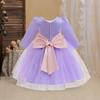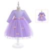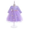 Vestido de manga larga para niñas, estilo europeo y americano, grande, con estampado de mariposas y malla, ideal para fiestas infantiles.