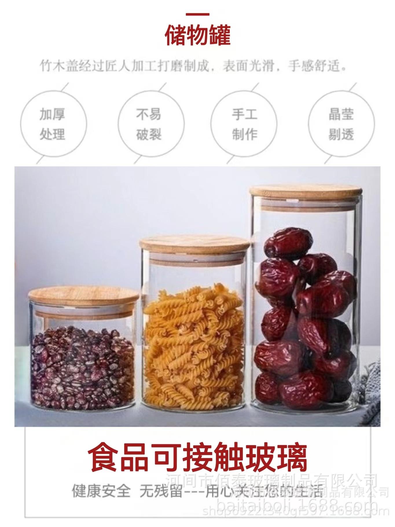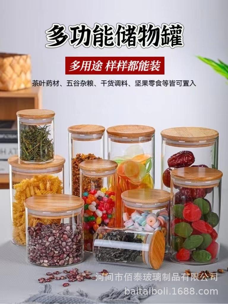 Frasco Sellado de Vidrio de Borosilicato Alto con Tapa de Bambú Tarro para Té Transparente de Gran Capacidad Tarro de Almacenamiento para el Hogar para Fruta Seca y Granos
