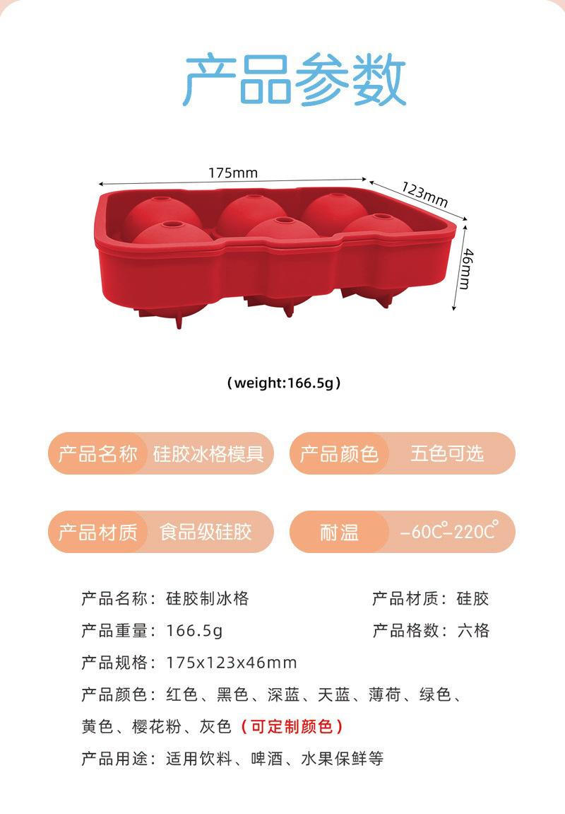 Bandeja de hielo de 6 bolas 165.7g 74 piezas/caja 53*29*37cm