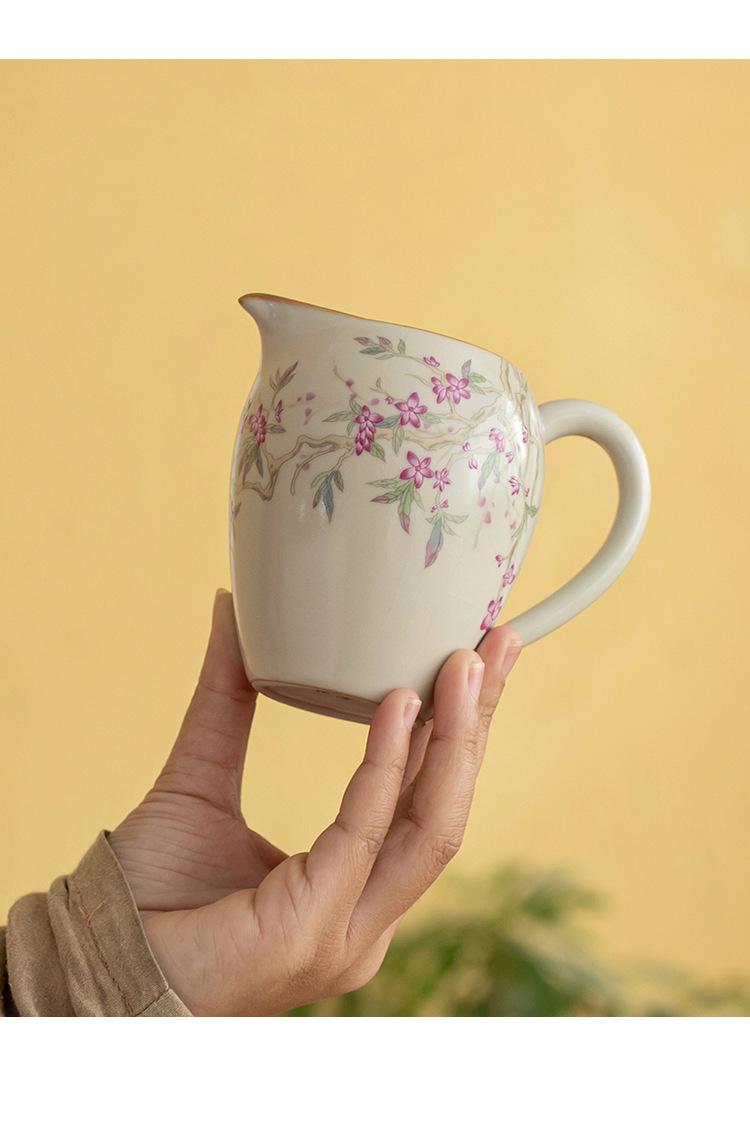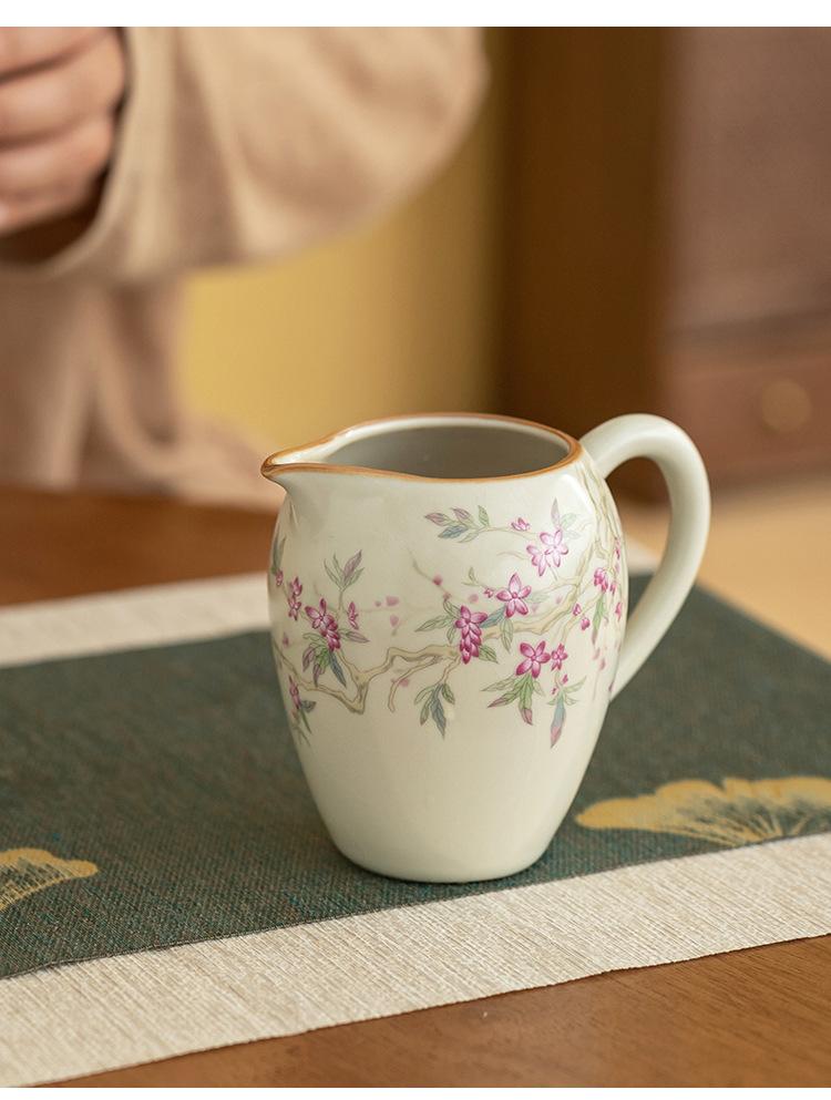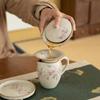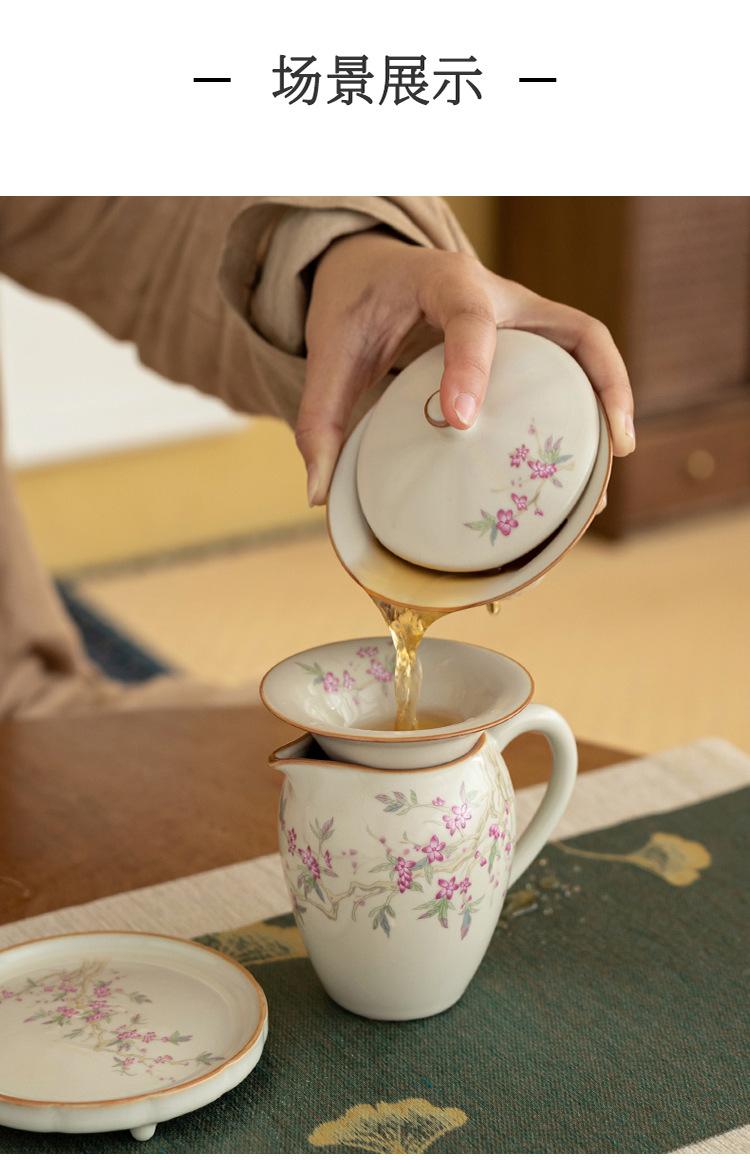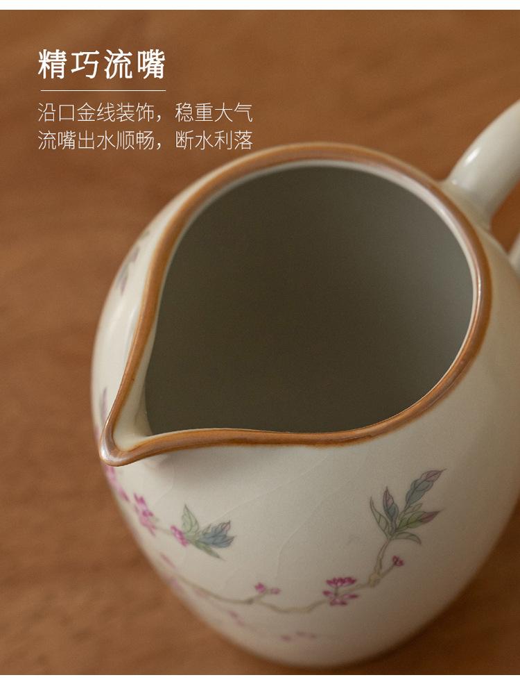 Beige Horno Ru flor de durazno mar de té cerámica juego de té kung fu pieza de apertura nutriente tetera mano sosteniendo taza masculina nuevo estilo chino
