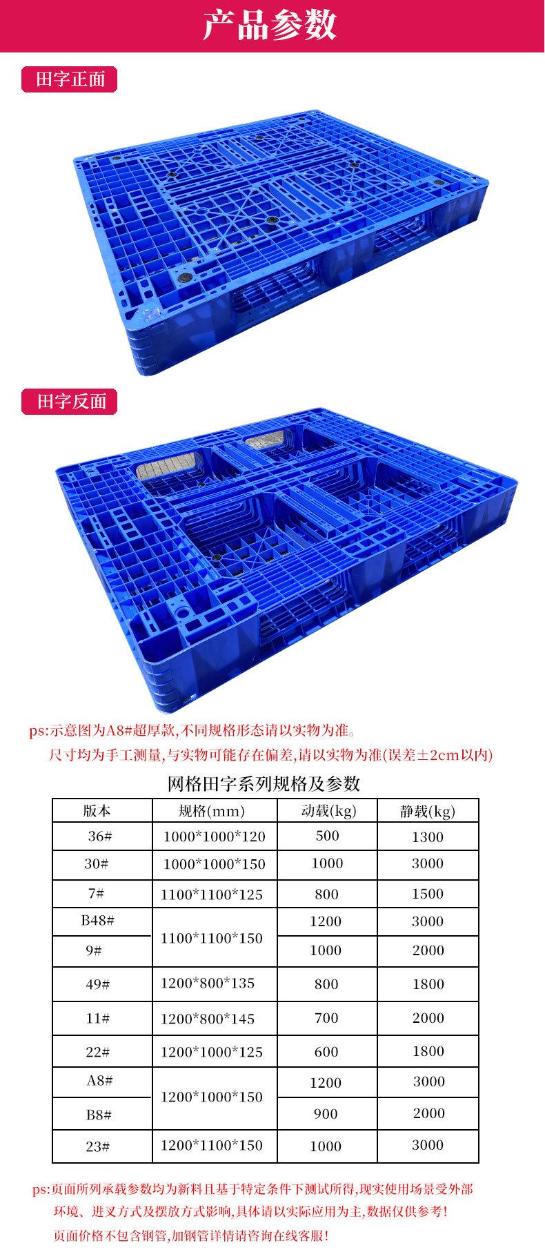 Fábrica de palets de plástico Tian Zi de 1010 cuadrículas, palets azules, palets engrosados, palets de plástico para montacargas de almacenamiento en frío