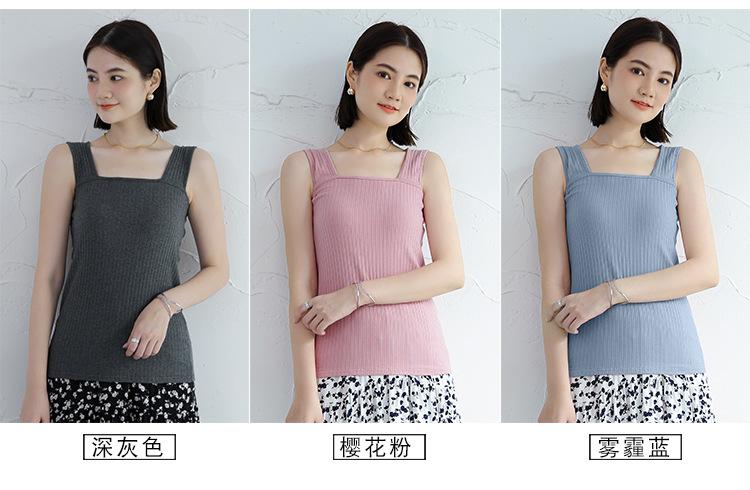 Compra Chaleco de algodón nuevo de primavera y verano para mujer, corte entallado, combina con todo, con tirantes verticales, banda gruesa, camisa sin mangas estilo occidental interior al por mayor en Joom.pro