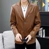 Chaqueta de cuero para hombre, otoño e invierno, nuevo estilo coreano, entallada, moderna, elegante, informal, con solapa, para jóvenes