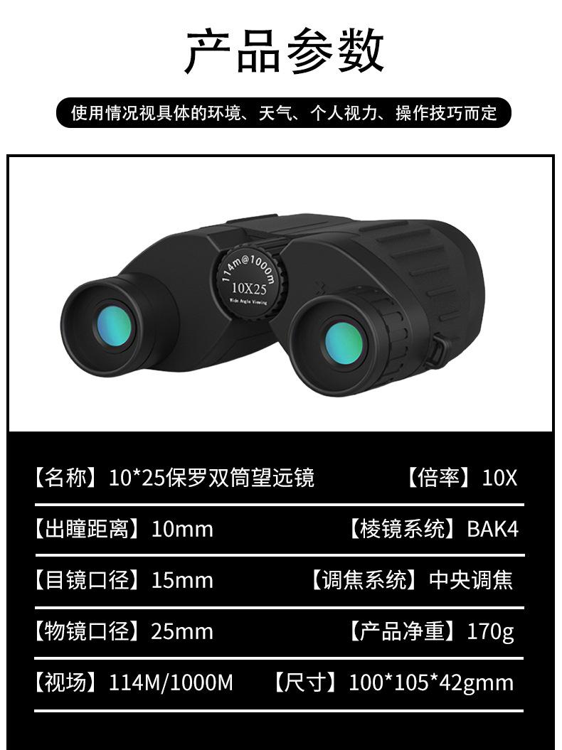 Binoculares 10*25 para exteriores en stock de alta potencia, alta definición, vidrio óptico, espejo para observación de aves, lote para exteriores