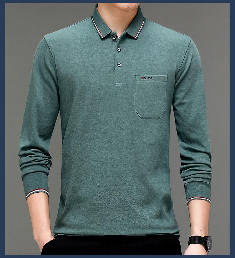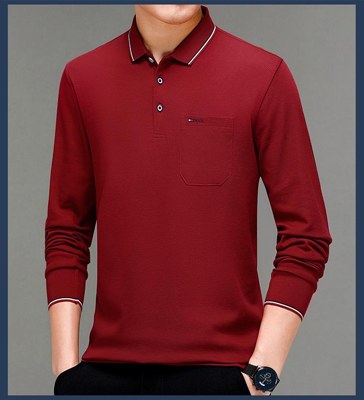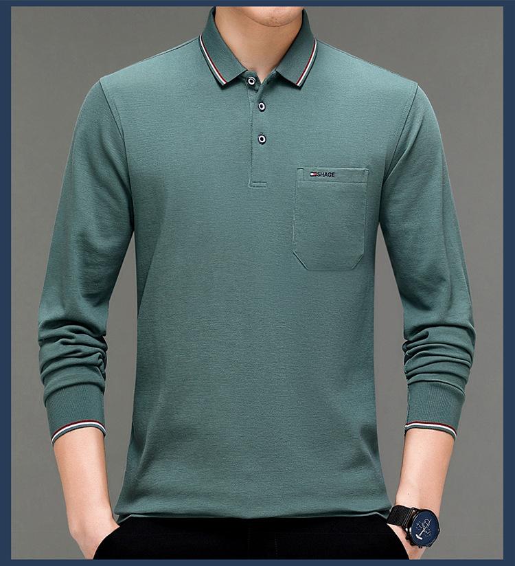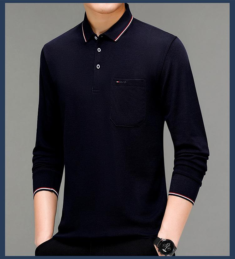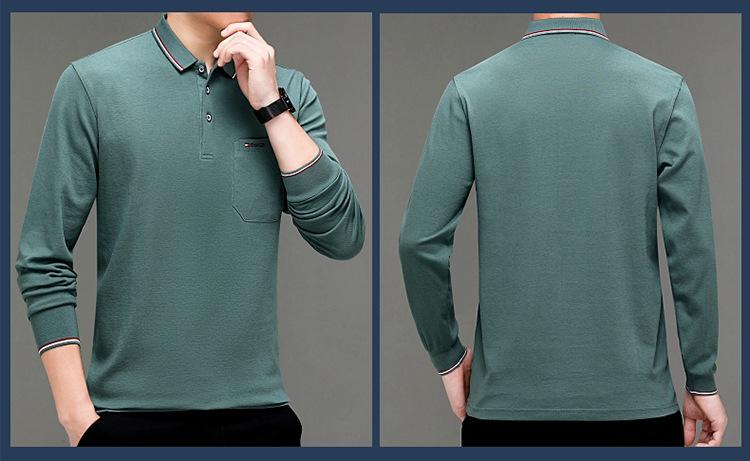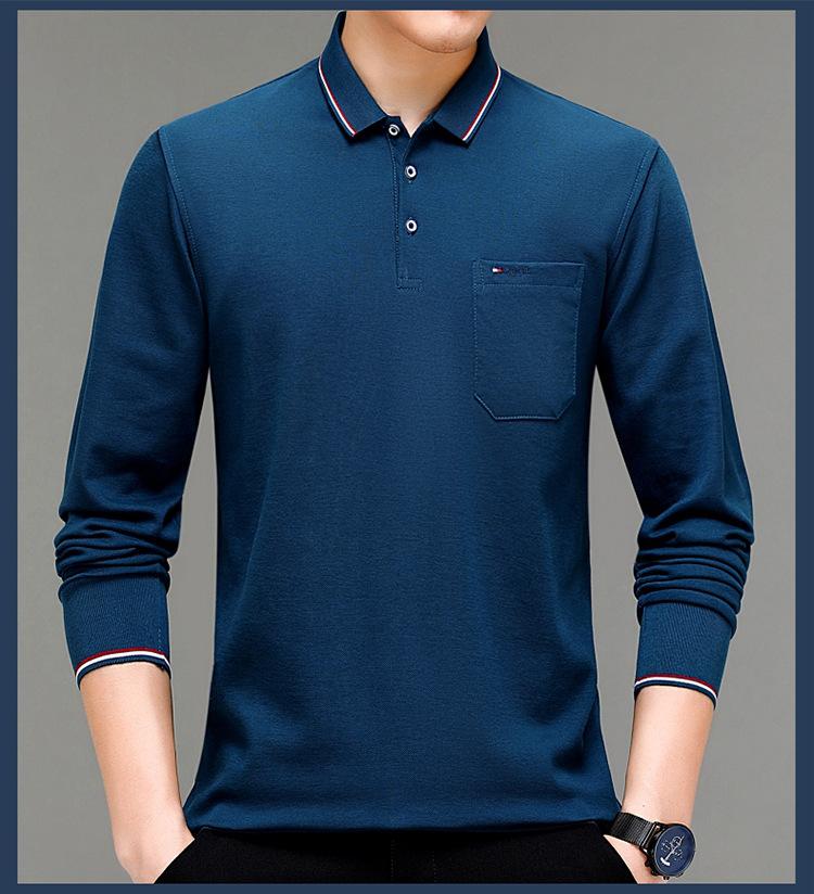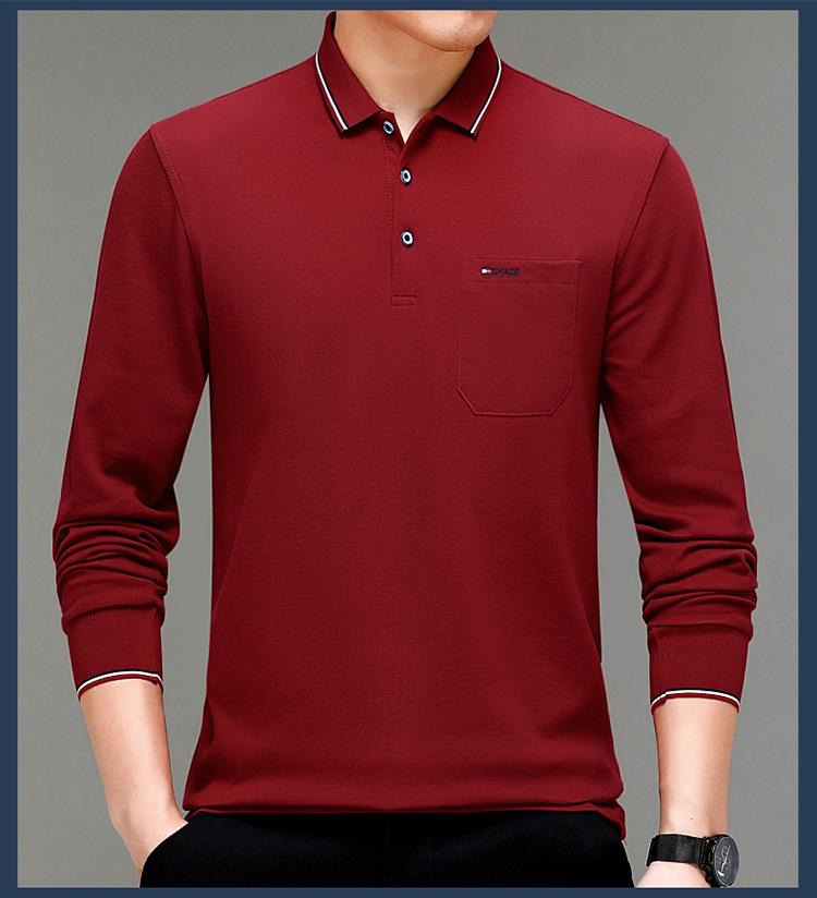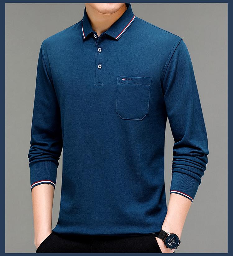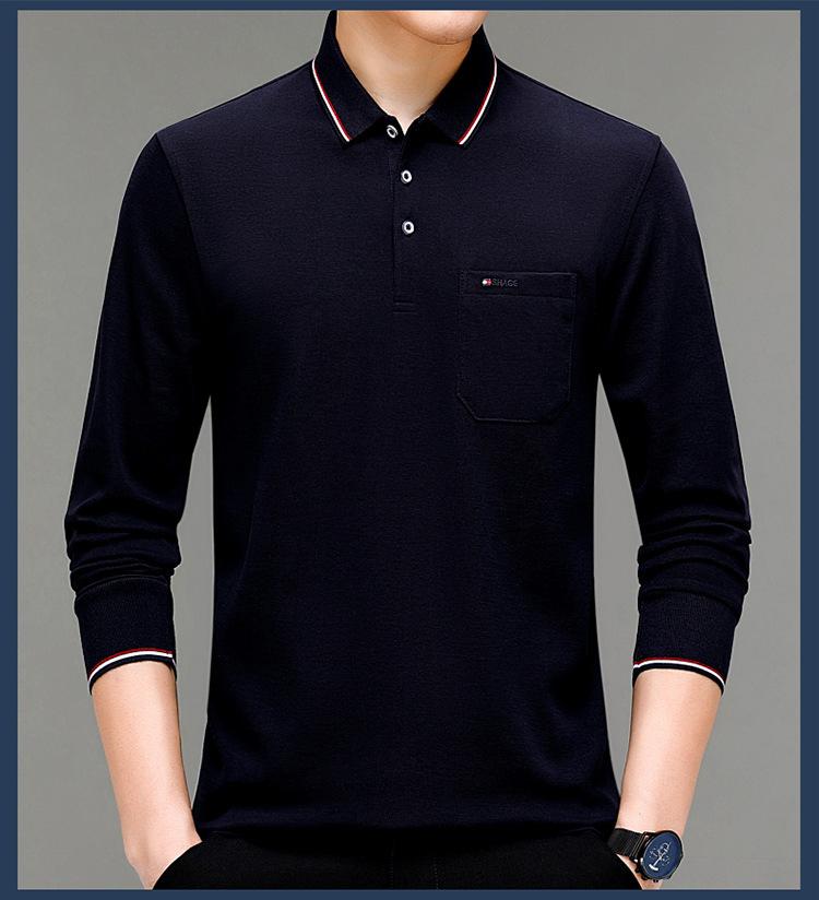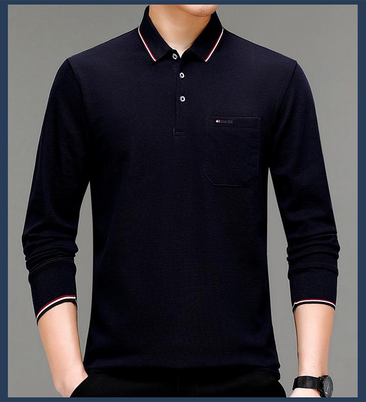 Polo de papá de mediana edad, primavera y otoño, nuevo, fino, con solapa de bolsillo, informal, de negocios, camiseta de manga larga para hombre