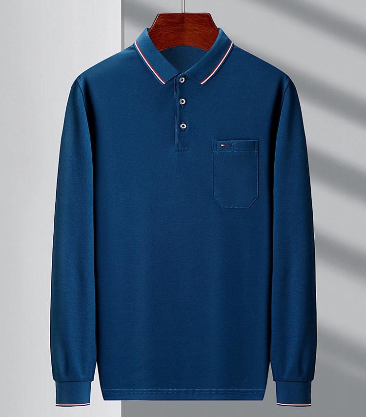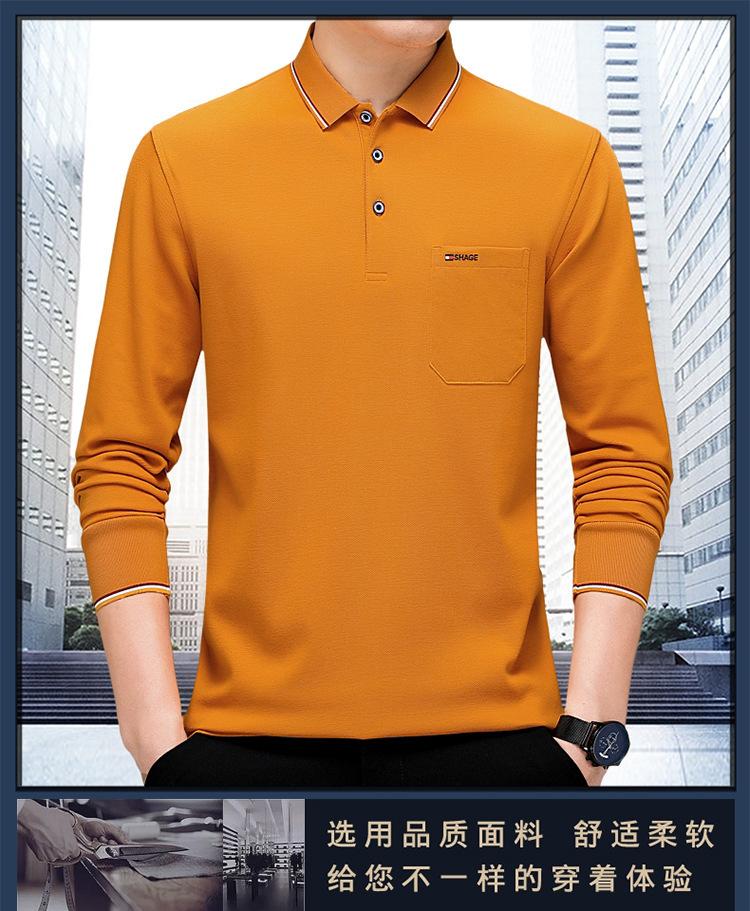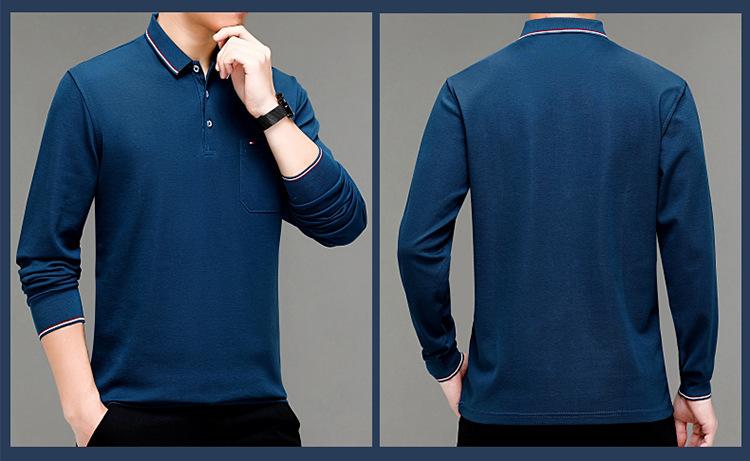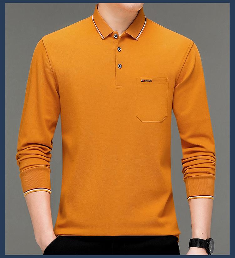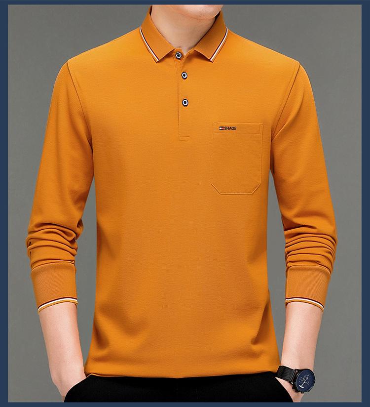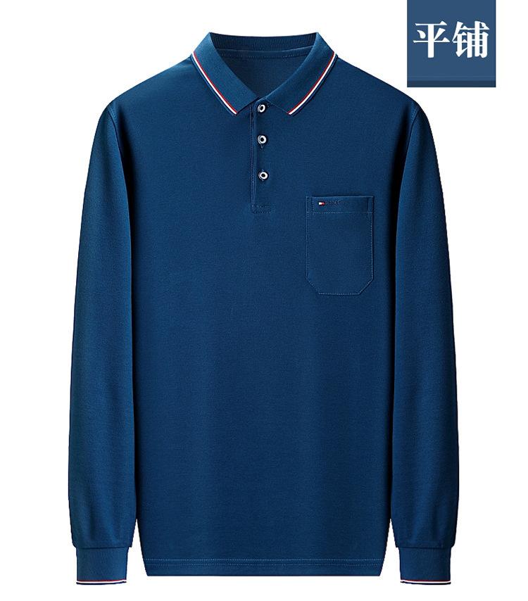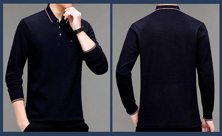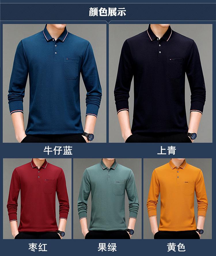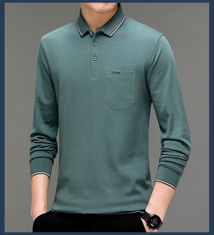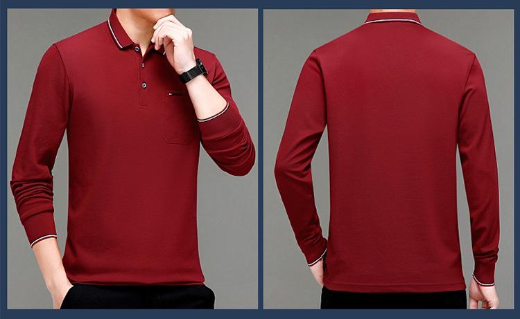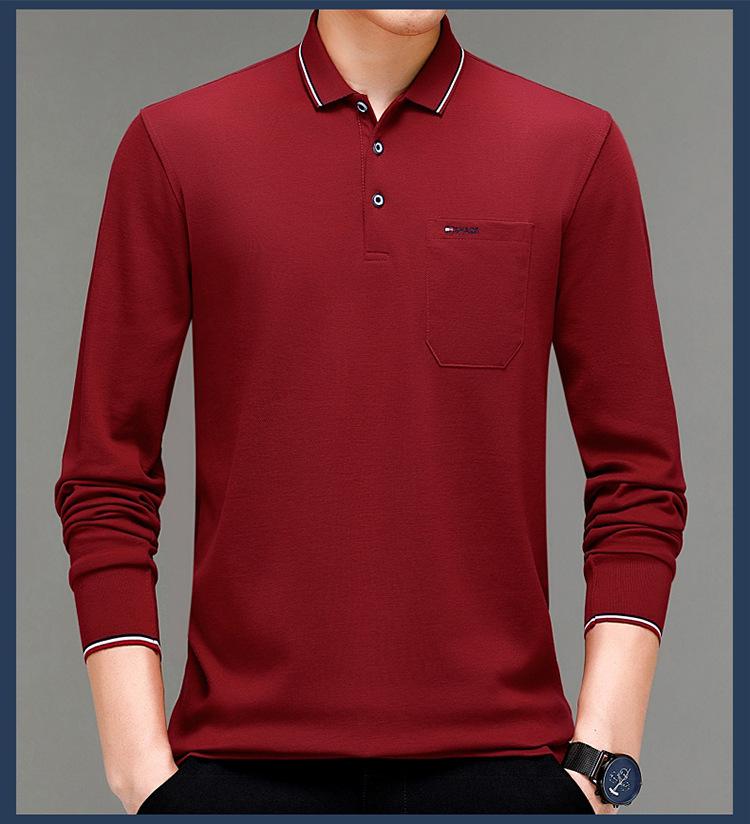 Polo de papá de mediana edad, primavera y otoño, nuevo, fino, con solapa de bolsillo, informal, de negocios, camiseta de manga larga para hombre