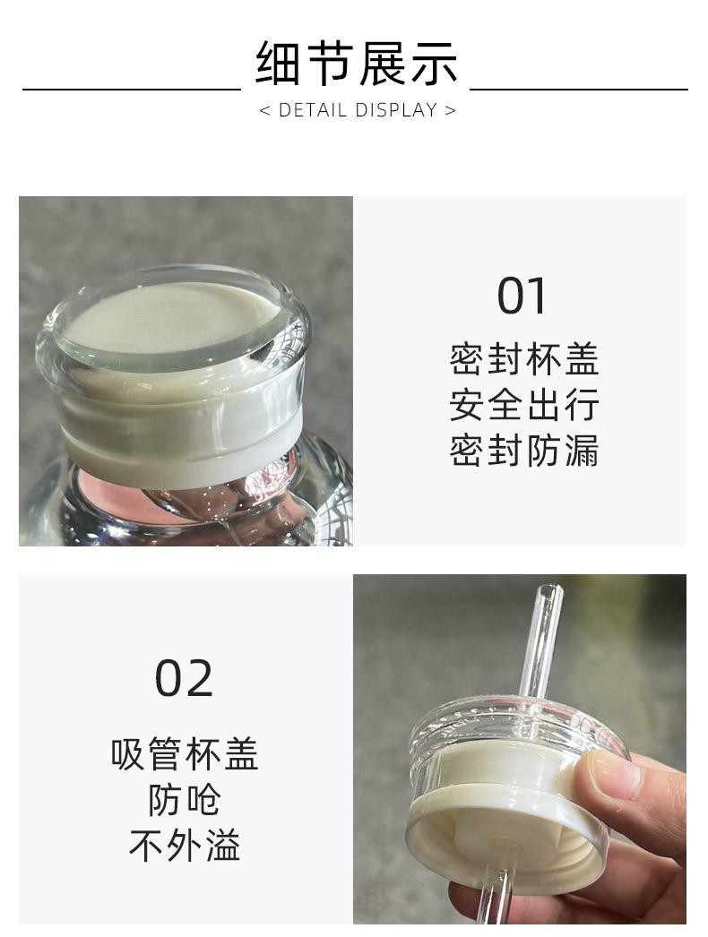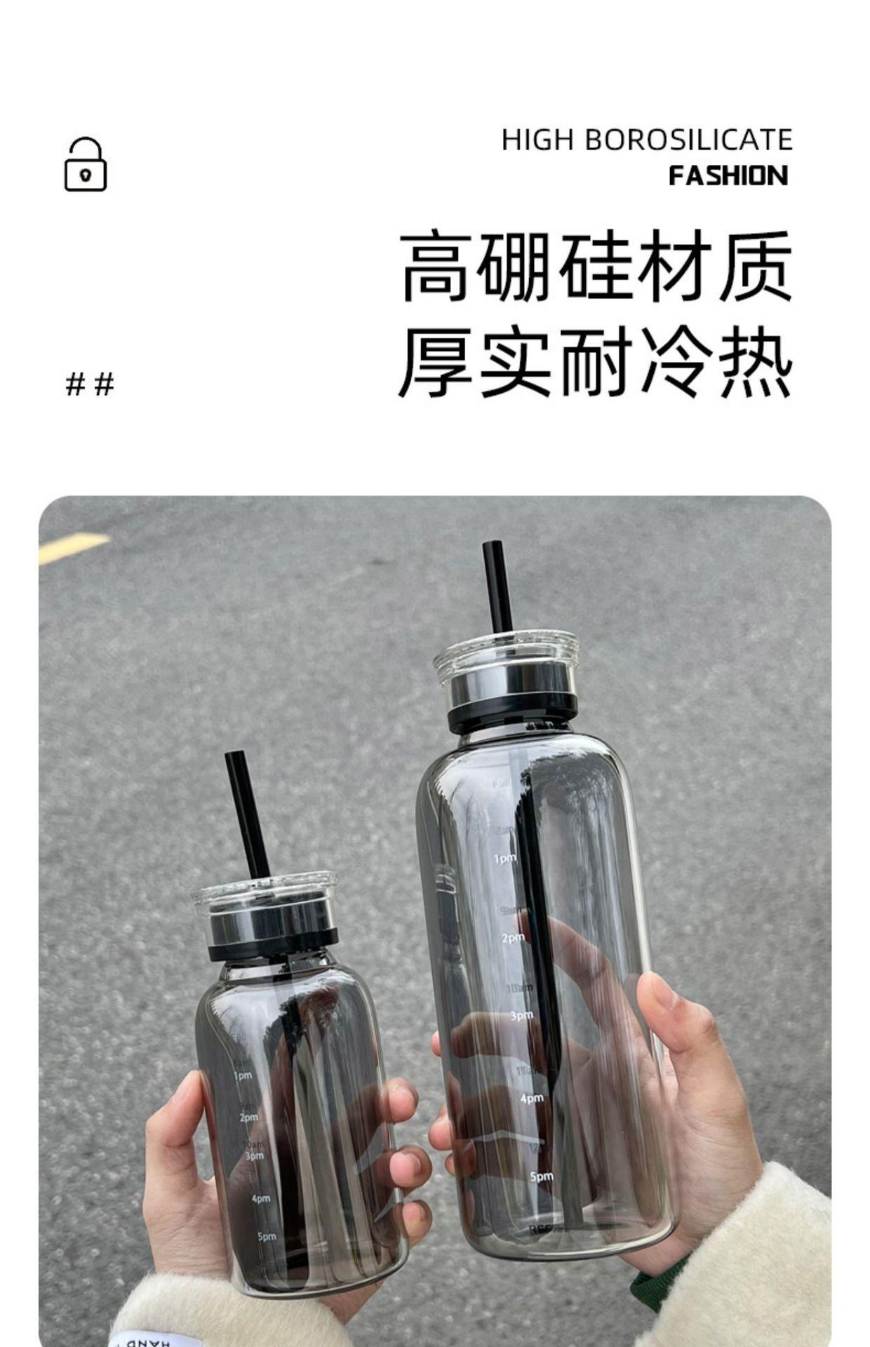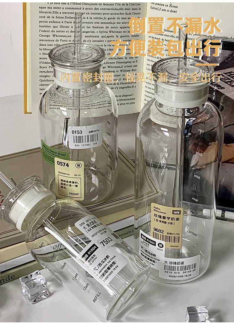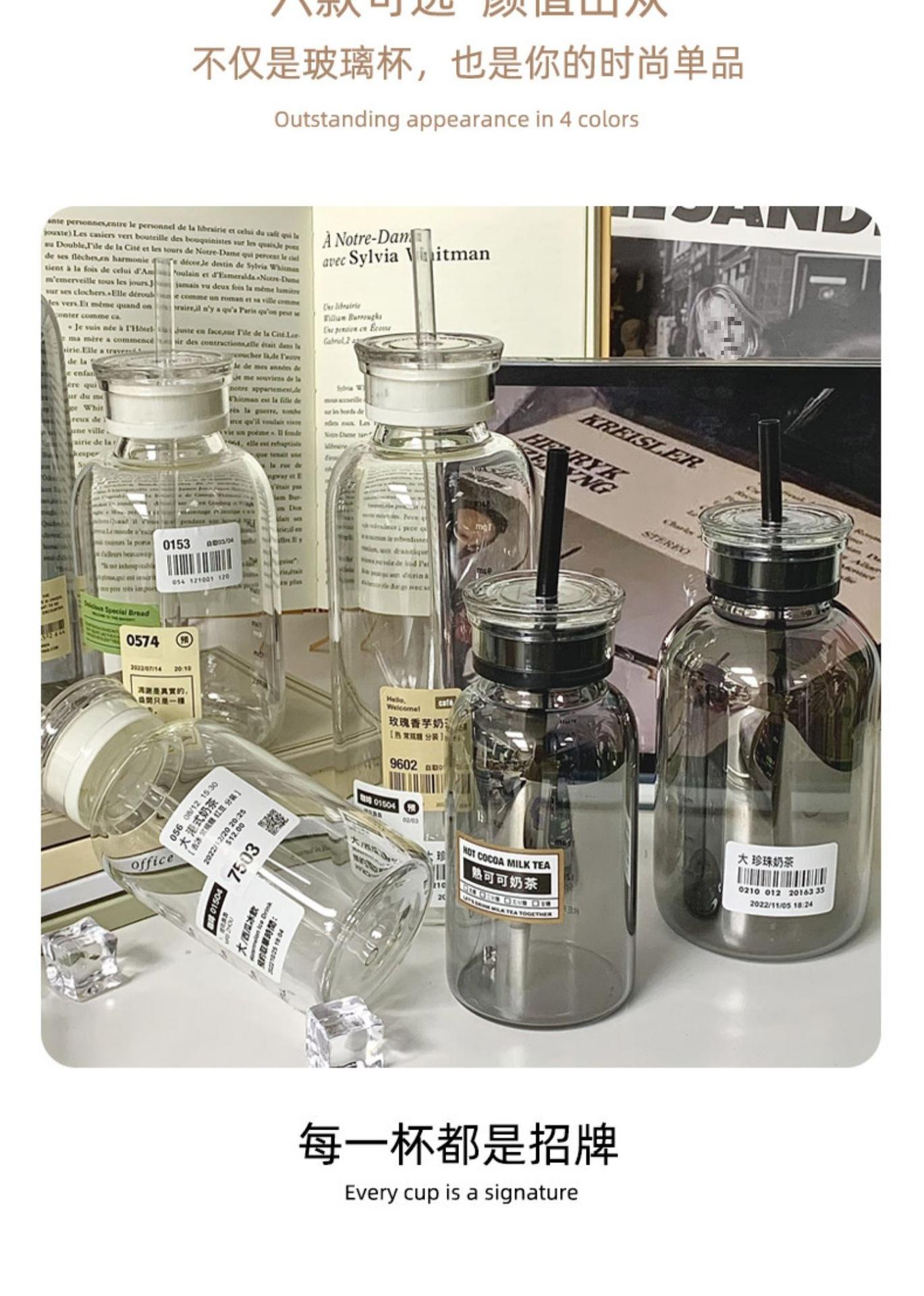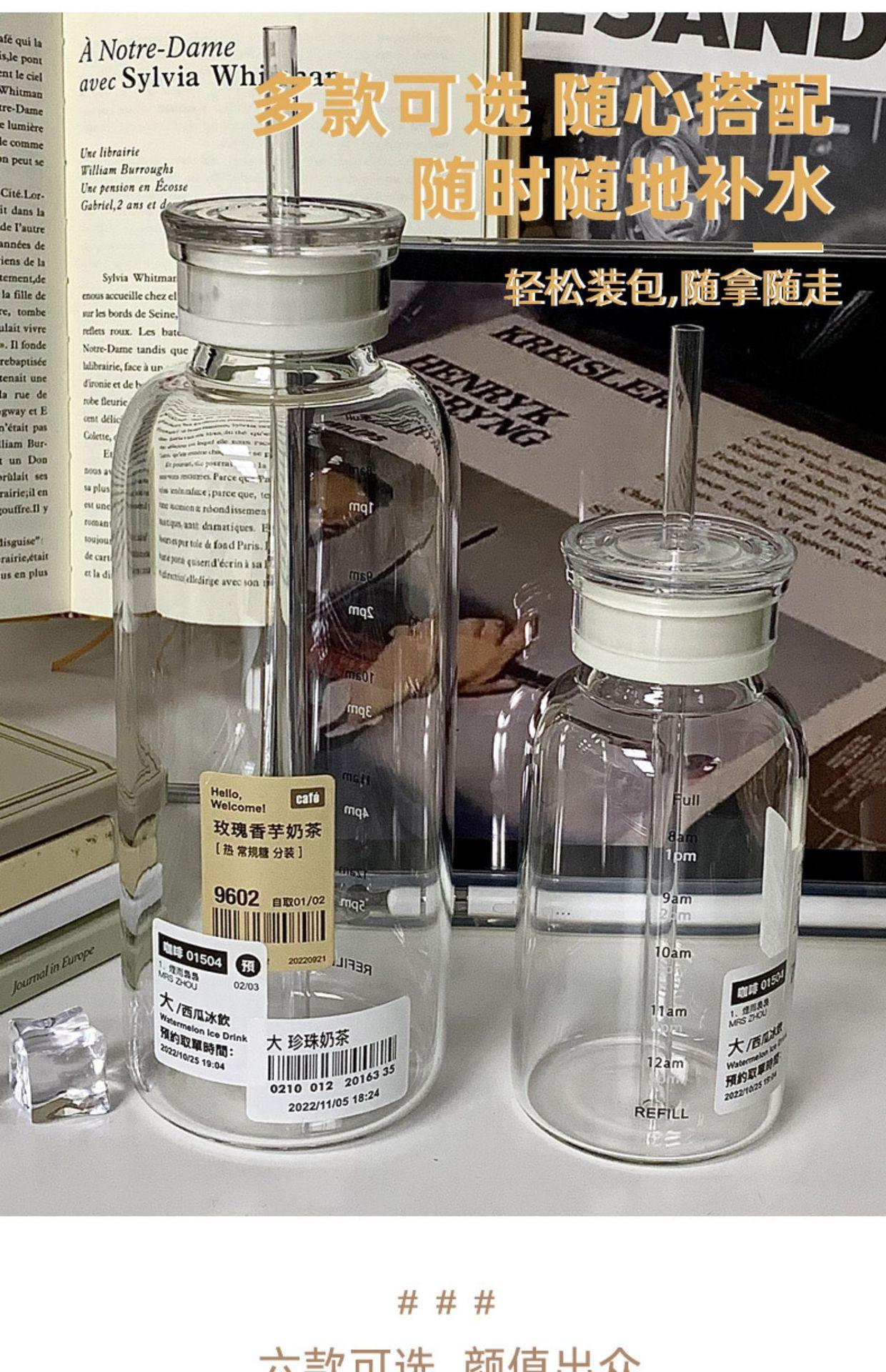 Vaso de Vidrio Resistente a Altas Temperaturas Transparente para Niñas Simple Portátil Tapa Popote Botella de Agua para Hombres Hogar Verano Nuevo Producto