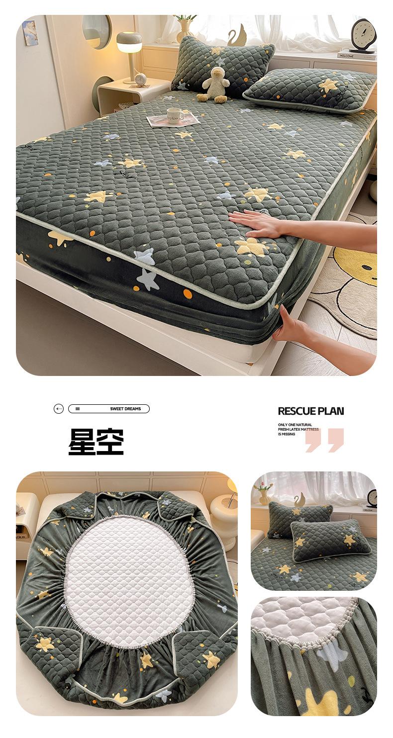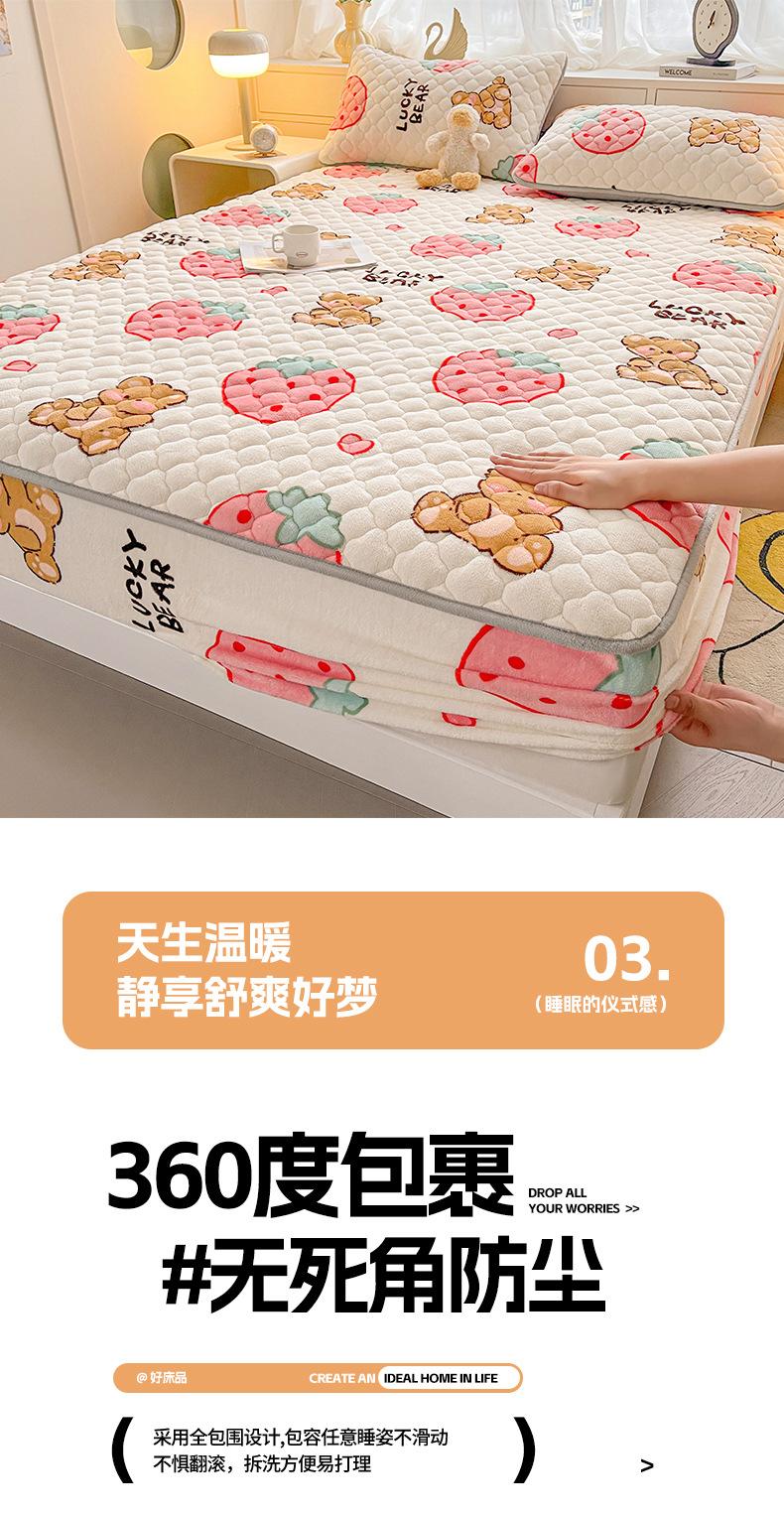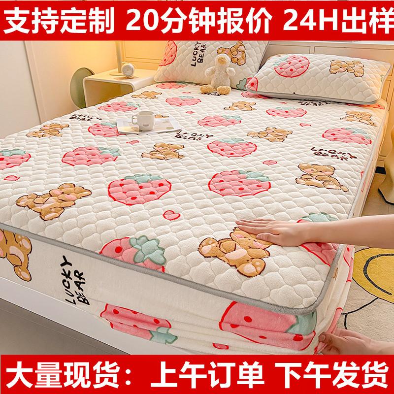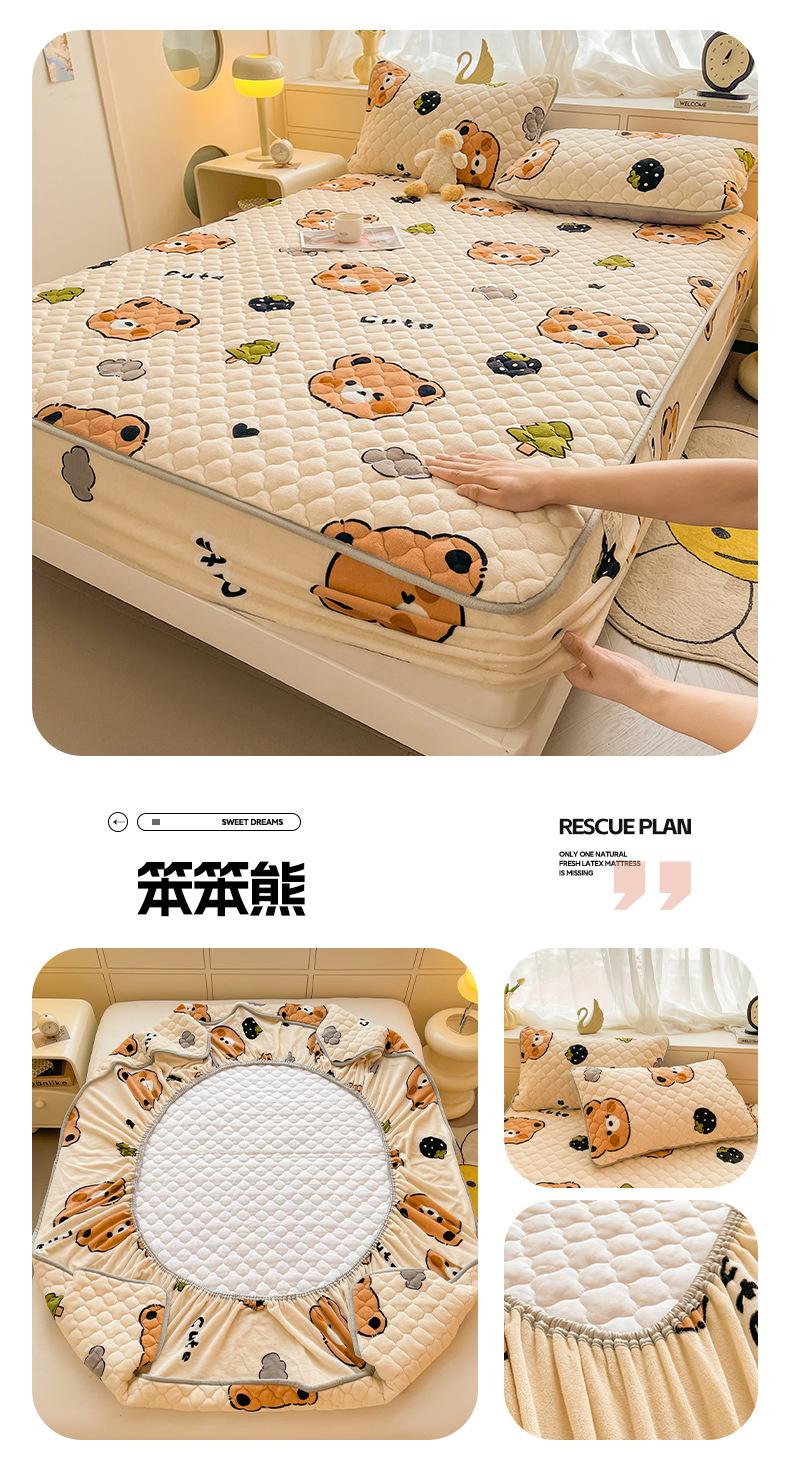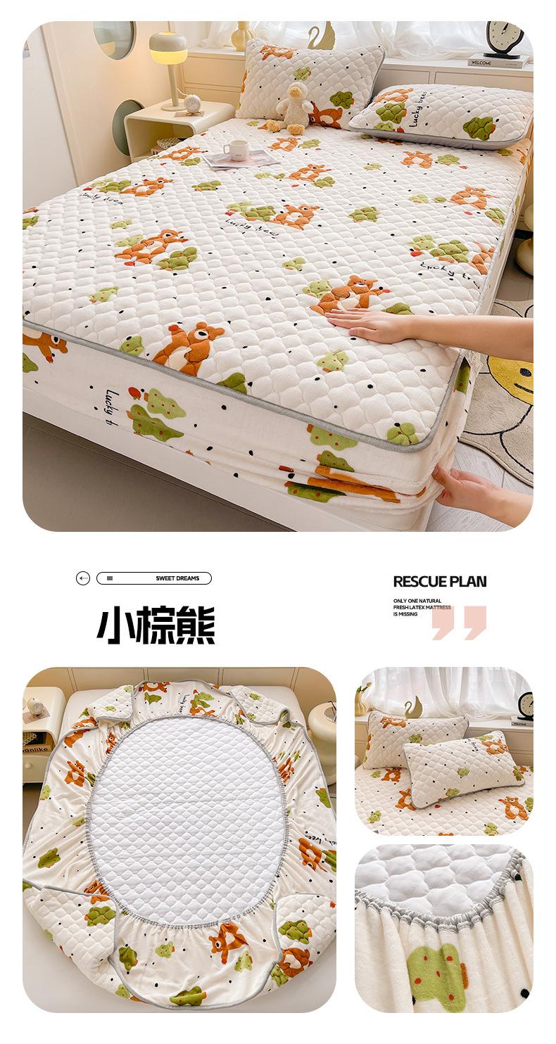 Funda de cama acolchada con estampado de terciopelo de leche espesado para otoño e invierno, funda protectora Simmons, funda de colchón antideslizante, funda marrón fina, funda transfronteriza