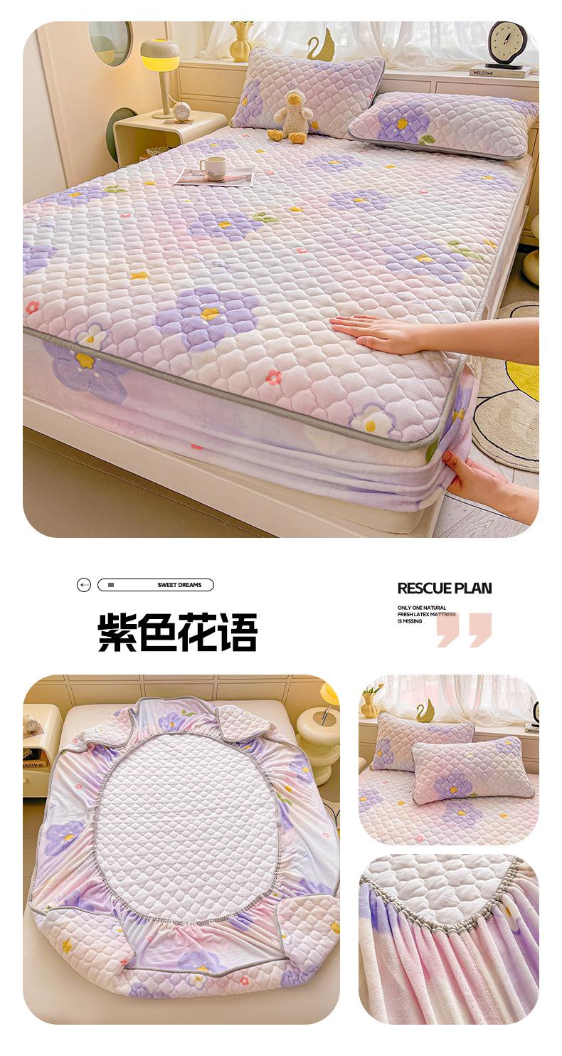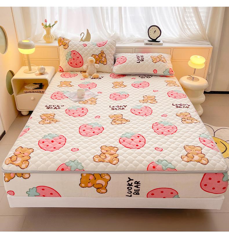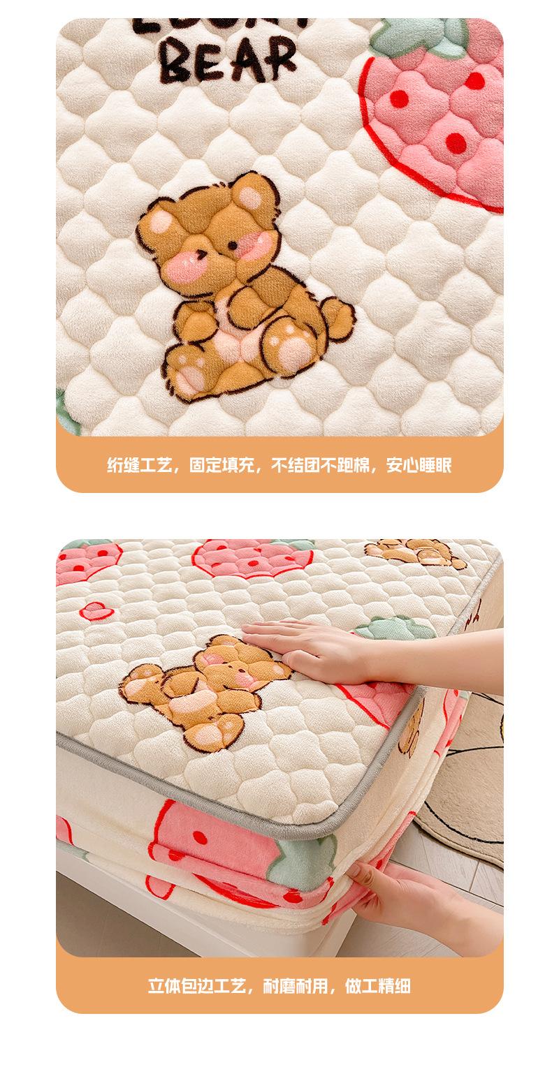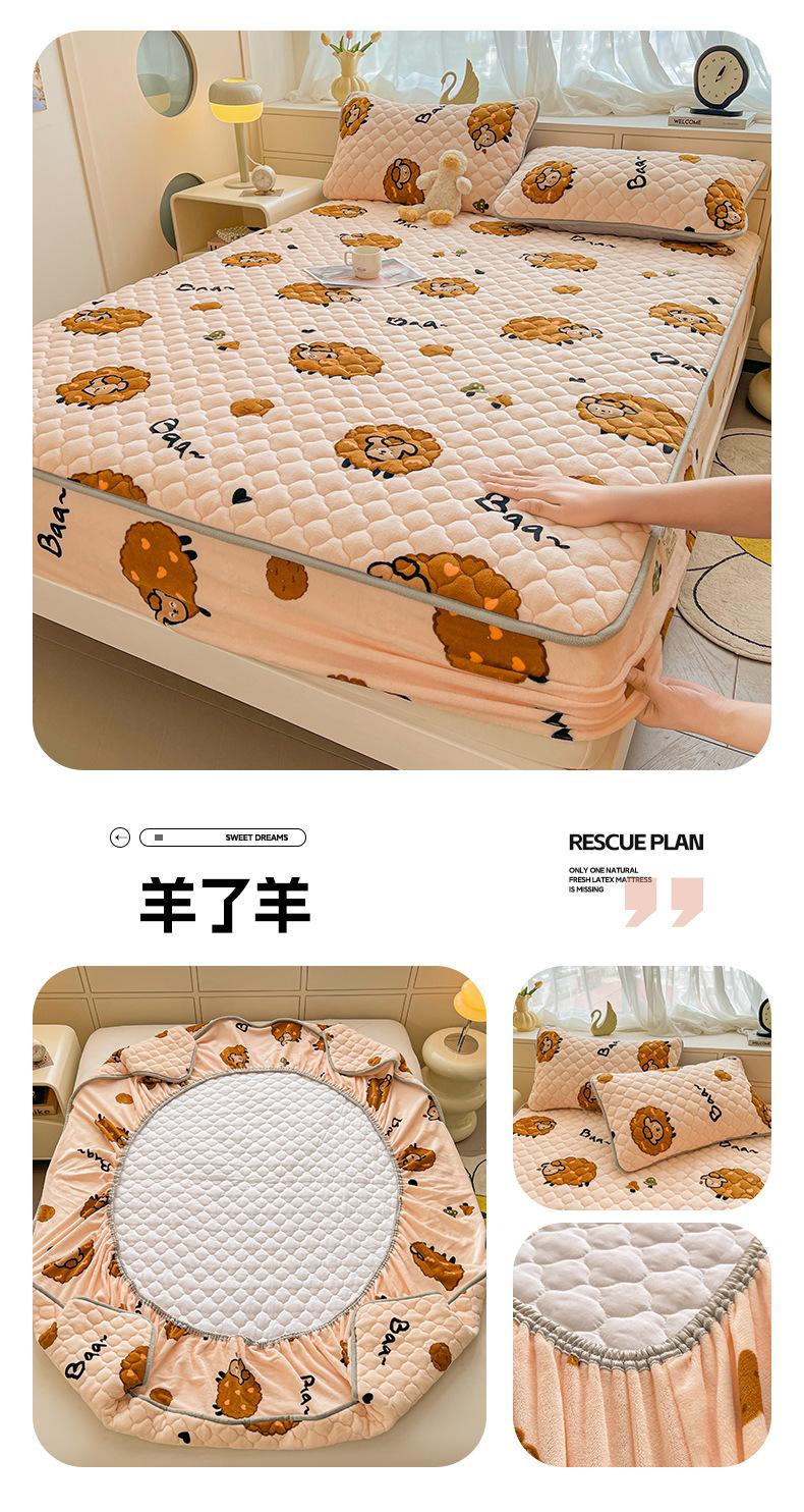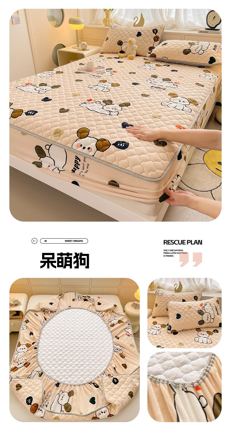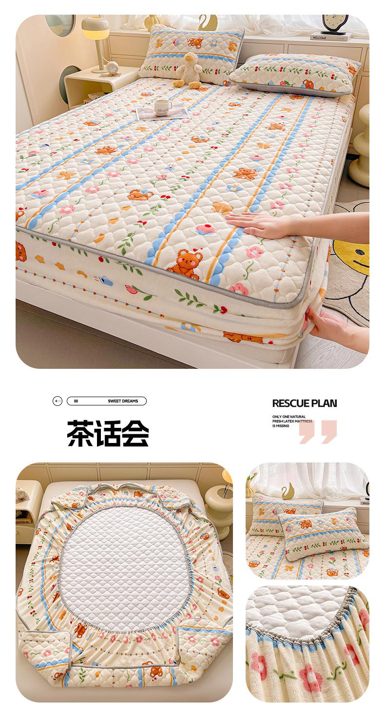 Funda de cama acolchada con estampado de terciopelo de leche espesado para otoño e invierno, funda protectora Simmons, funda de colchón antideslizante, funda marrón fina, funda transfronteriza