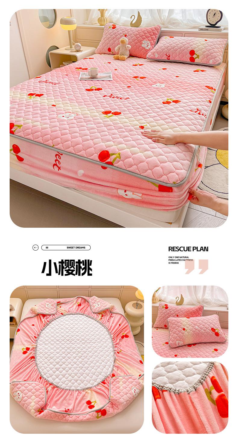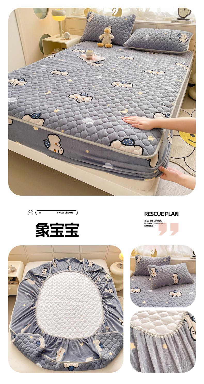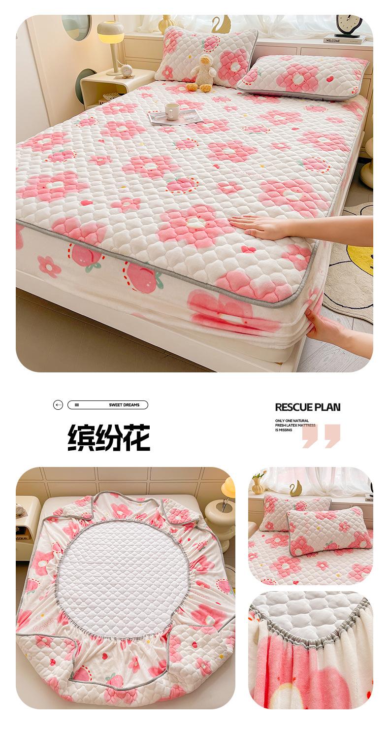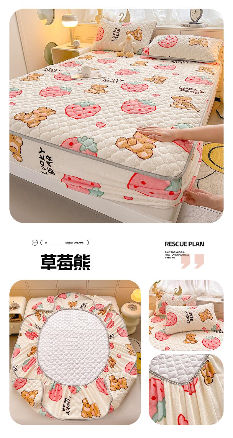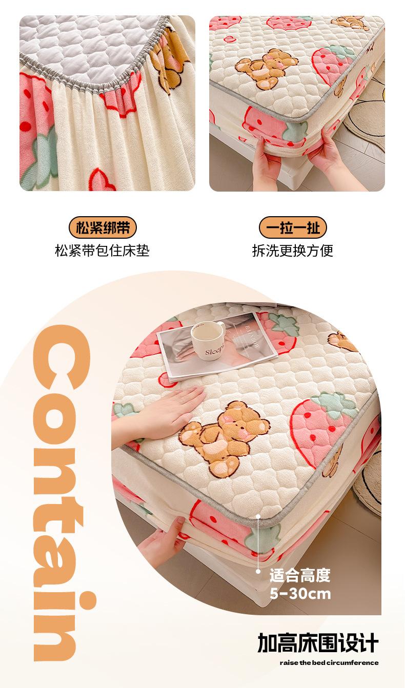 Funda de cama acolchada con estampado de terciopelo de leche espesado para otoño e invierno, funda protectora Simmons, funda de colchón antideslizante, funda marrón fina, funda transfronteriza