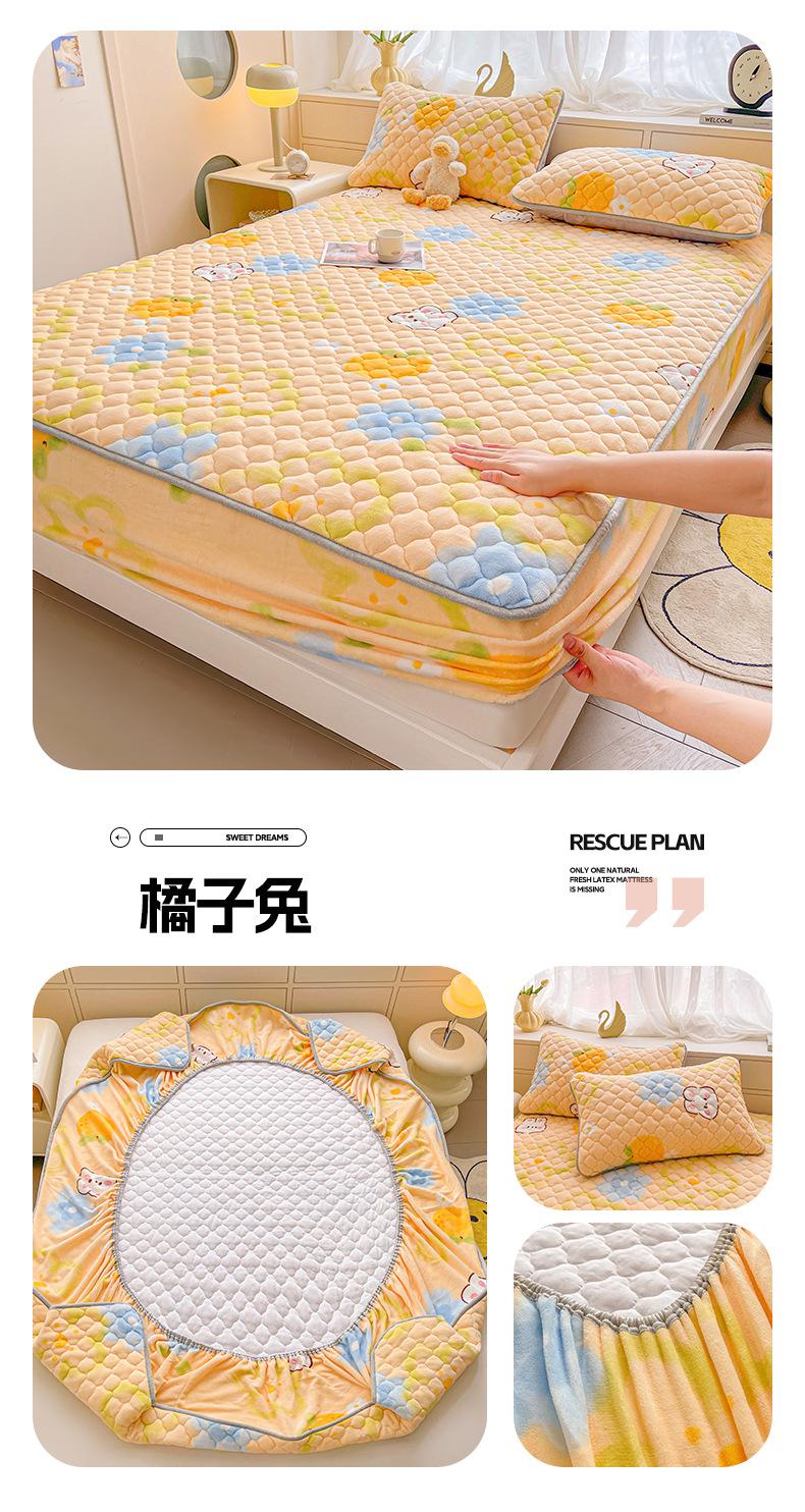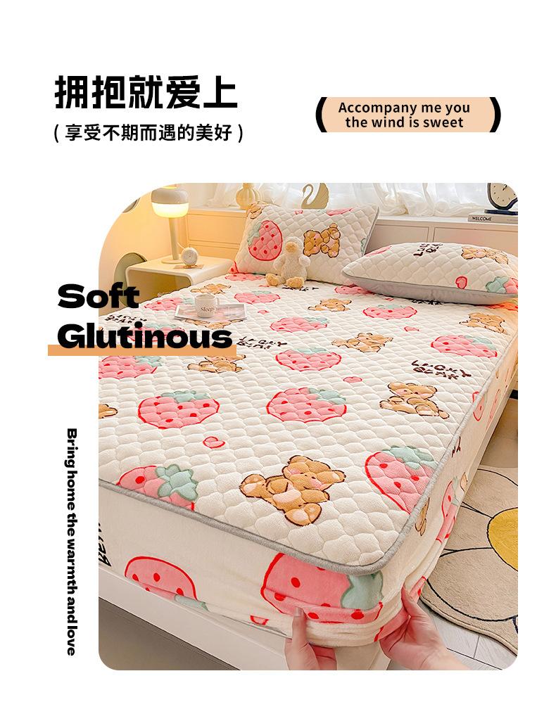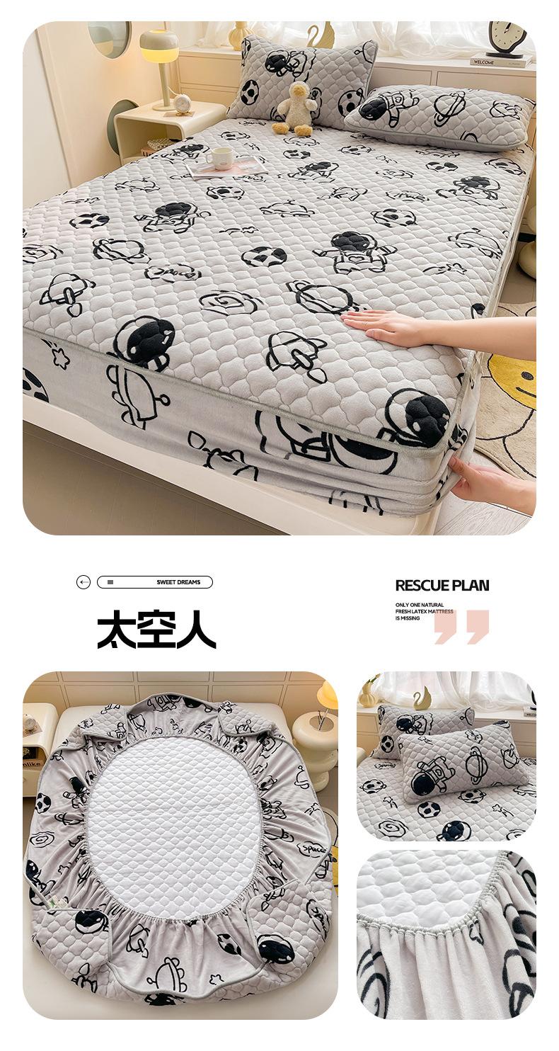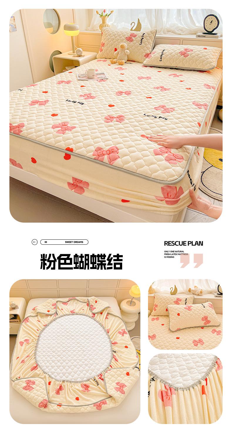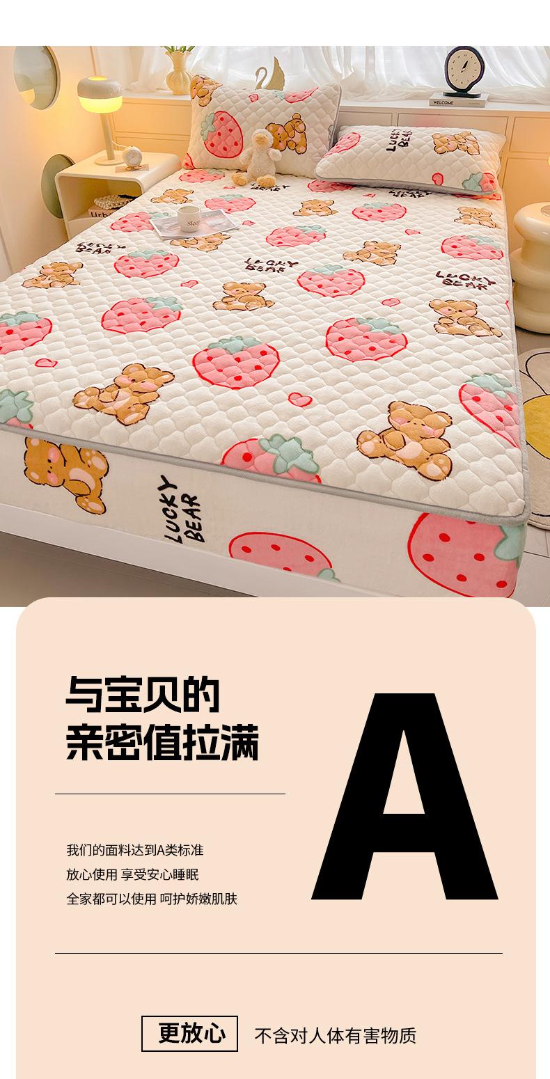Funda de cama acolchada con estampado de terciopelo de leche espesado para otoño e invierno, funda protectora Simmons, funda de colchón antideslizante, funda marrón fina, funda transfronteriza