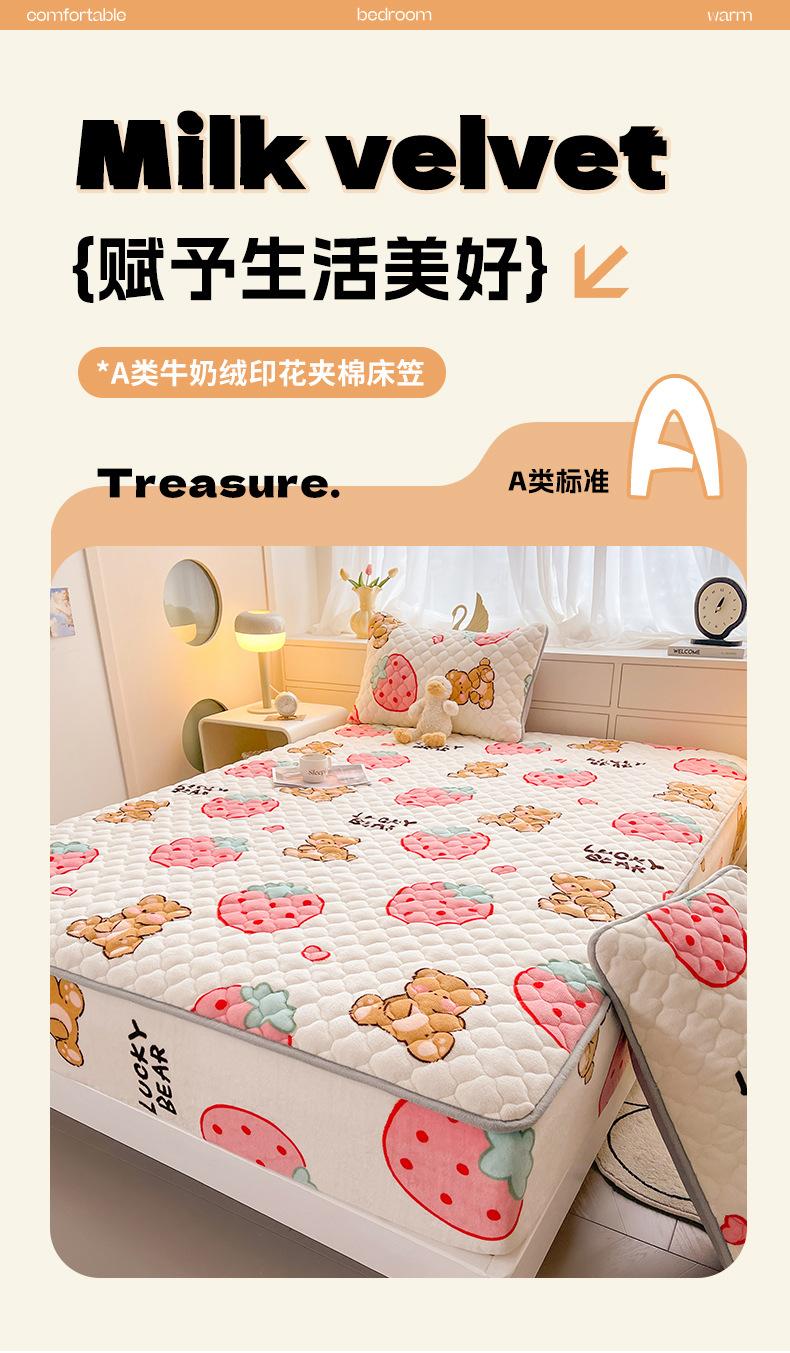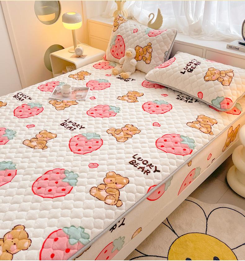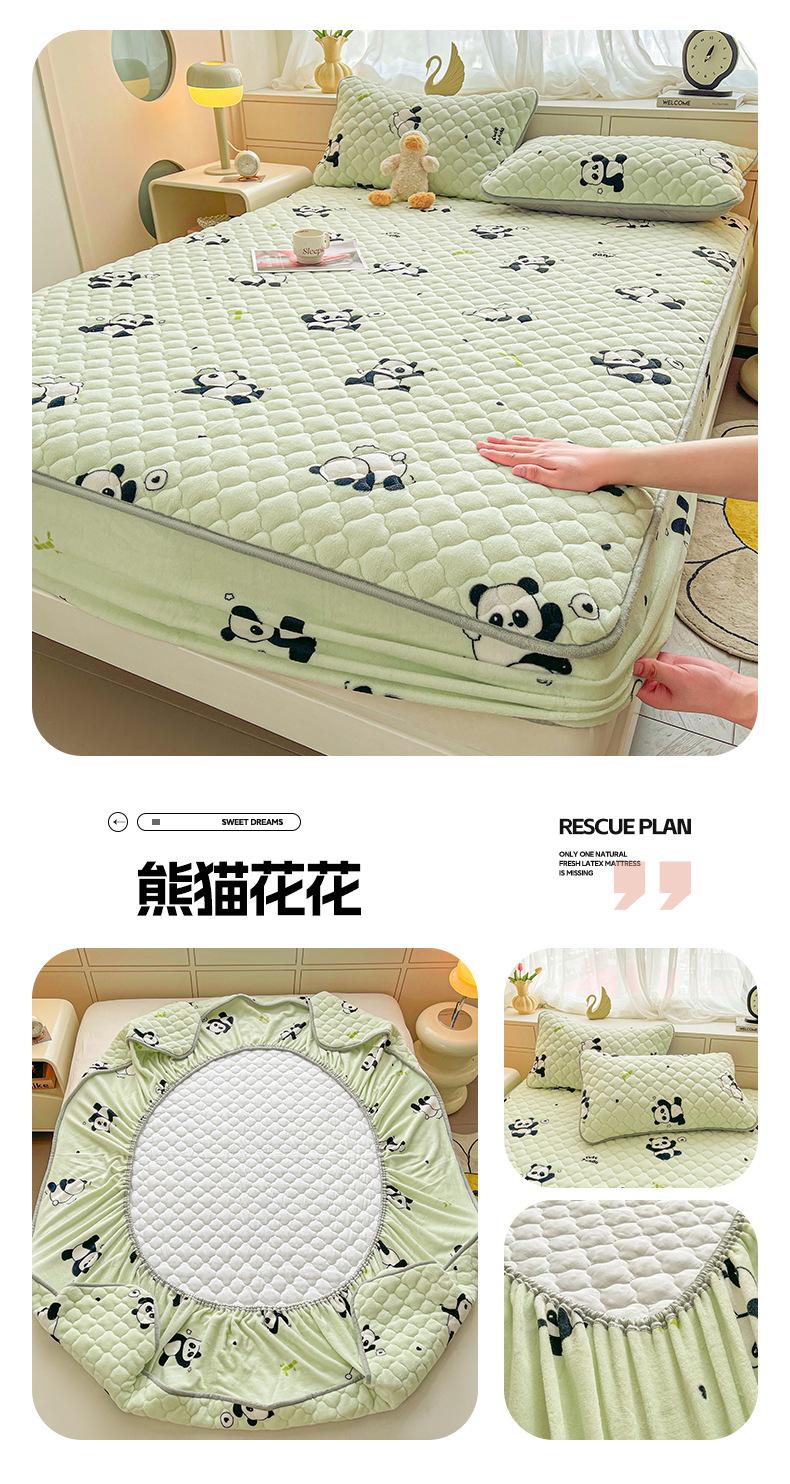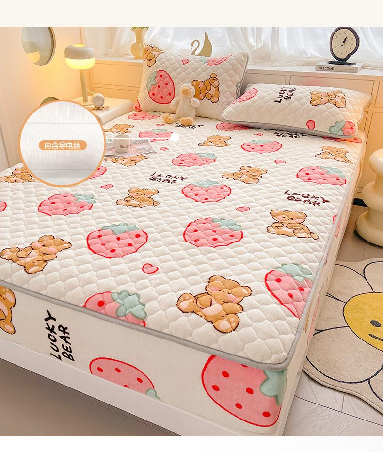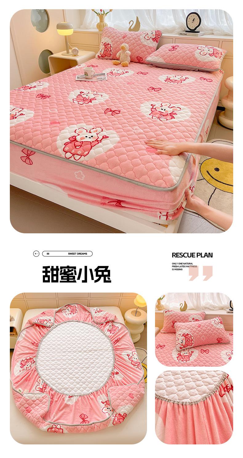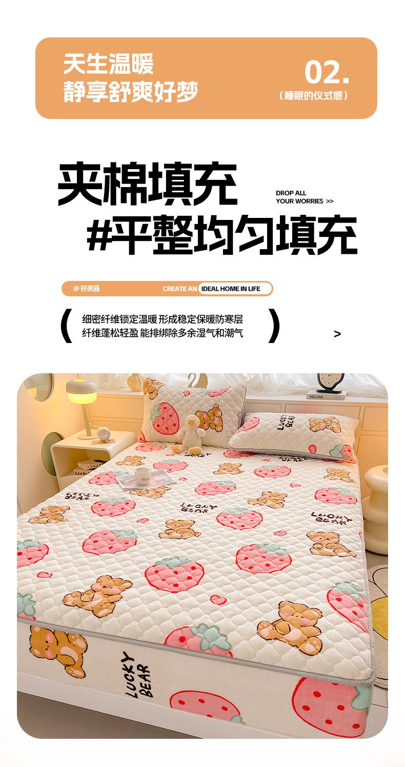 Funda de cama acolchada con estampado de terciopelo de leche espesado para otoño e invierno, funda protectora Simmons, funda de colchón antideslizante, funda marrón fina, funda transfronteriza
