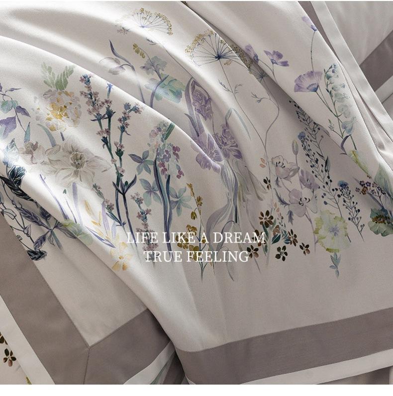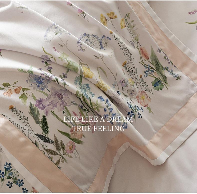 Juego de cuatro piezas de sábana de algodón satinado de alta gama para las cuatro estaciones, estampado digital de flores americanas, funda nórdica de algodón para ropa de cama