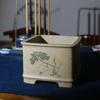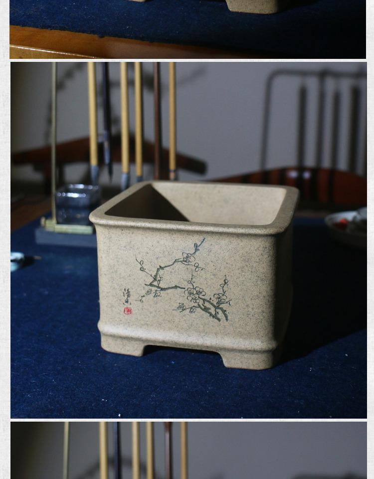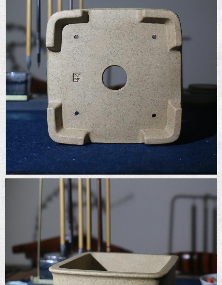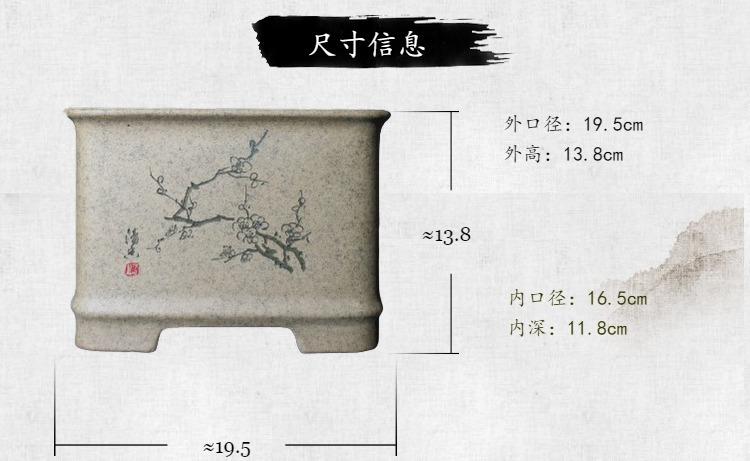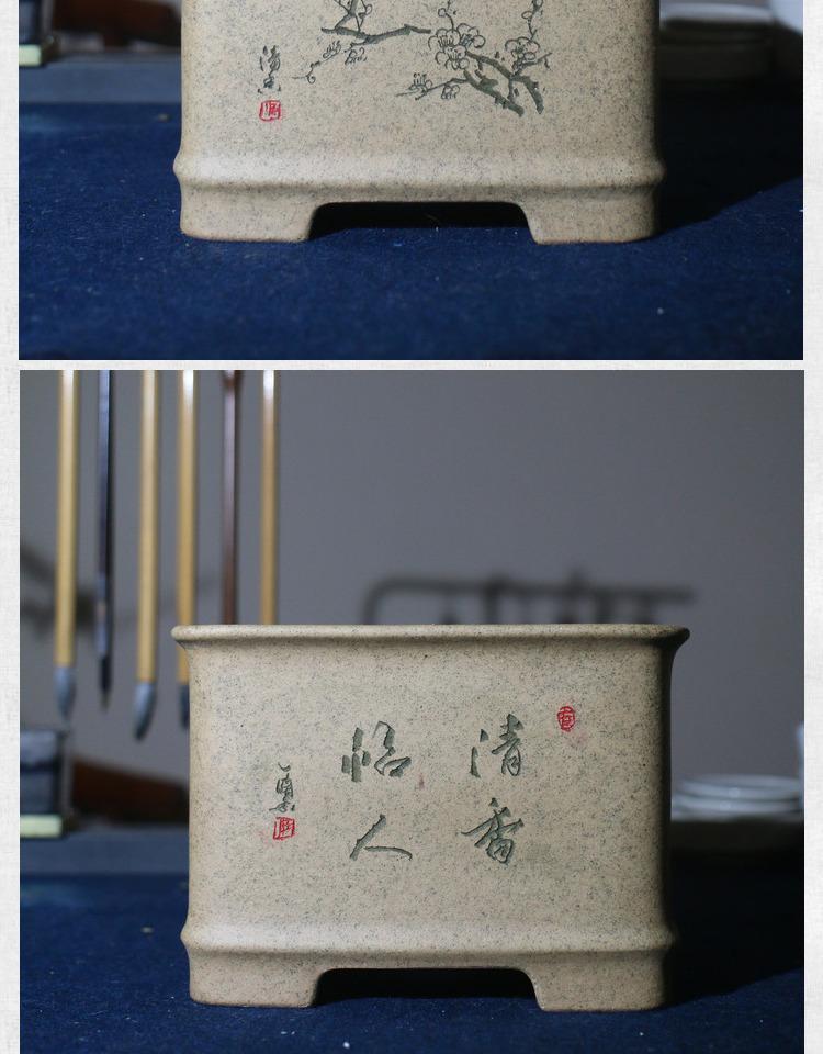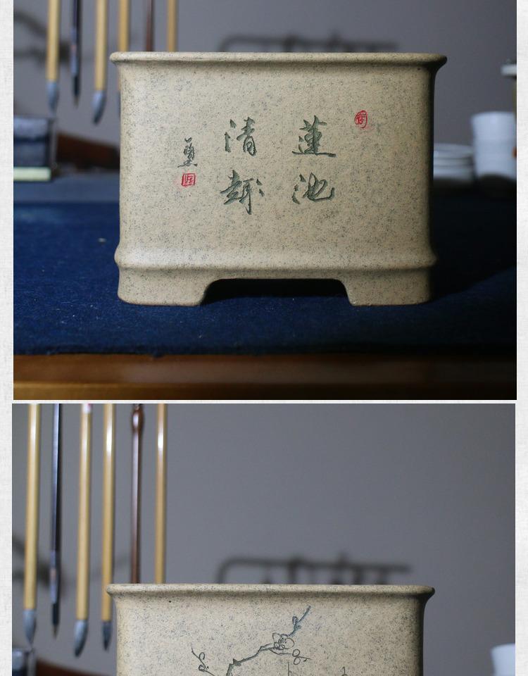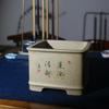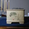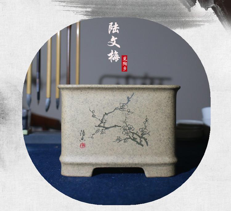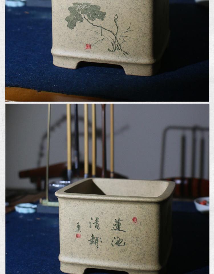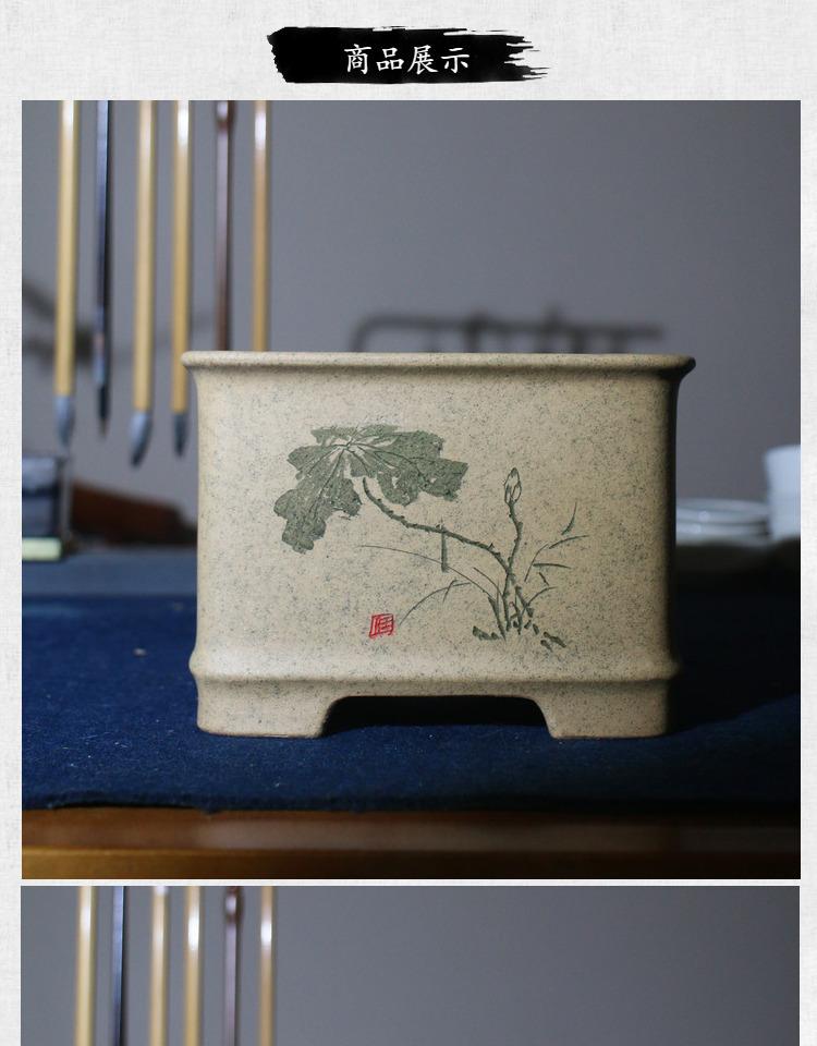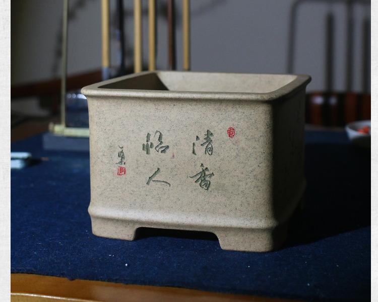 Maceta de arena morada cuadrada, fina, tallada a mano, verde, para bonsái, famosa maceta de Lu Wenmei
