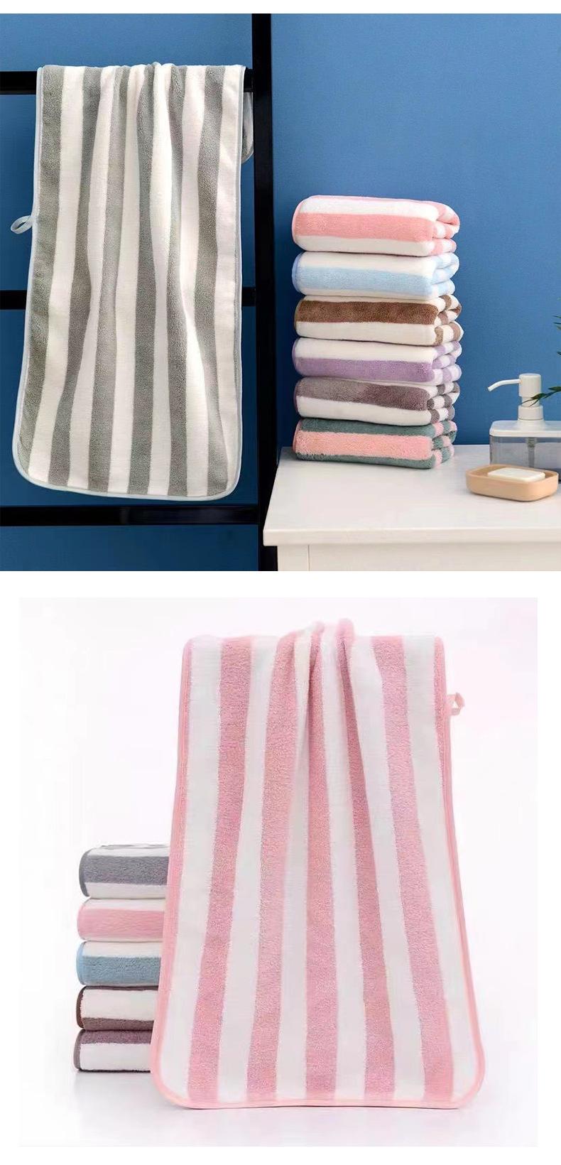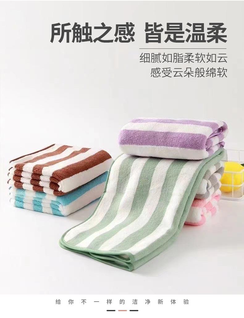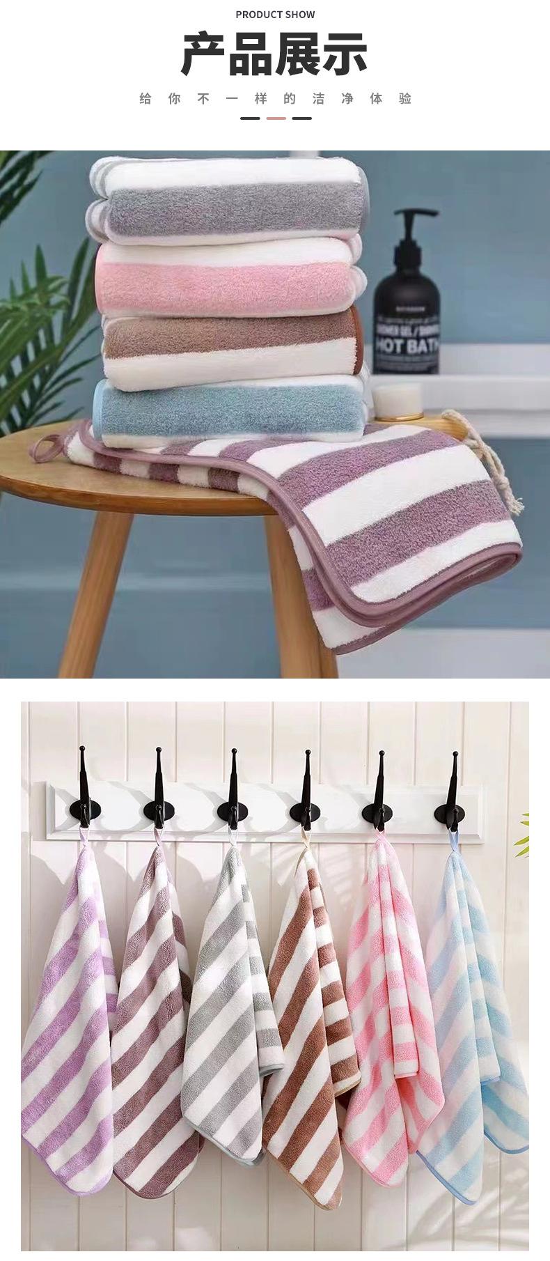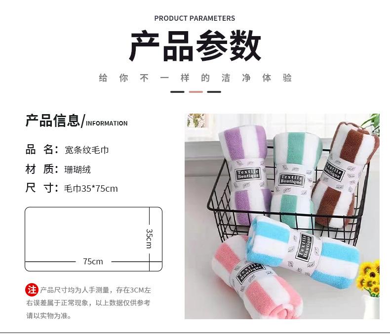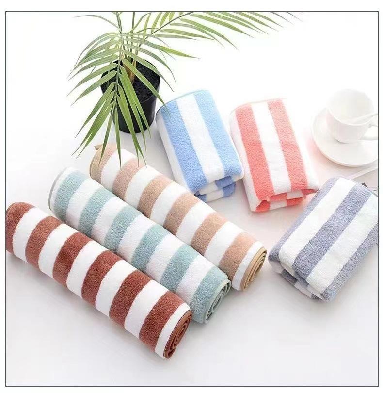 Toalla de Coral Fleece con Rayas Anchas al por Mayor Toalla de Baño Engrosada para Uso Doméstico Suave Absorbente Rayada Simple Rayada de una Pieza Dropshipping