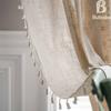 Cortina de gasa con encaje de flor de caña beige, cortina de media altura blanca americana, cortina de algodón y lino para partición de cocina, cortina corta con método de colocación con varilla