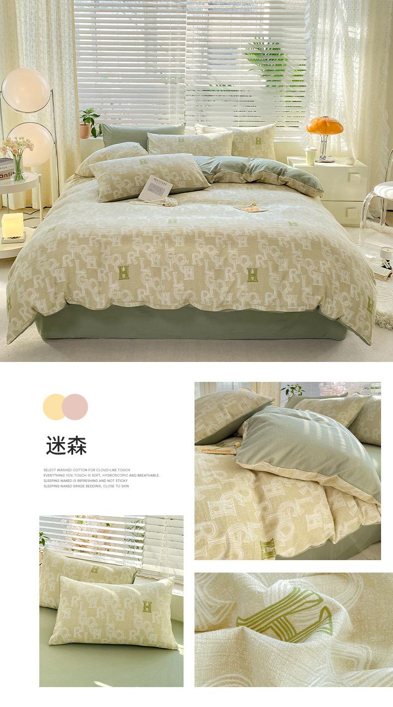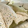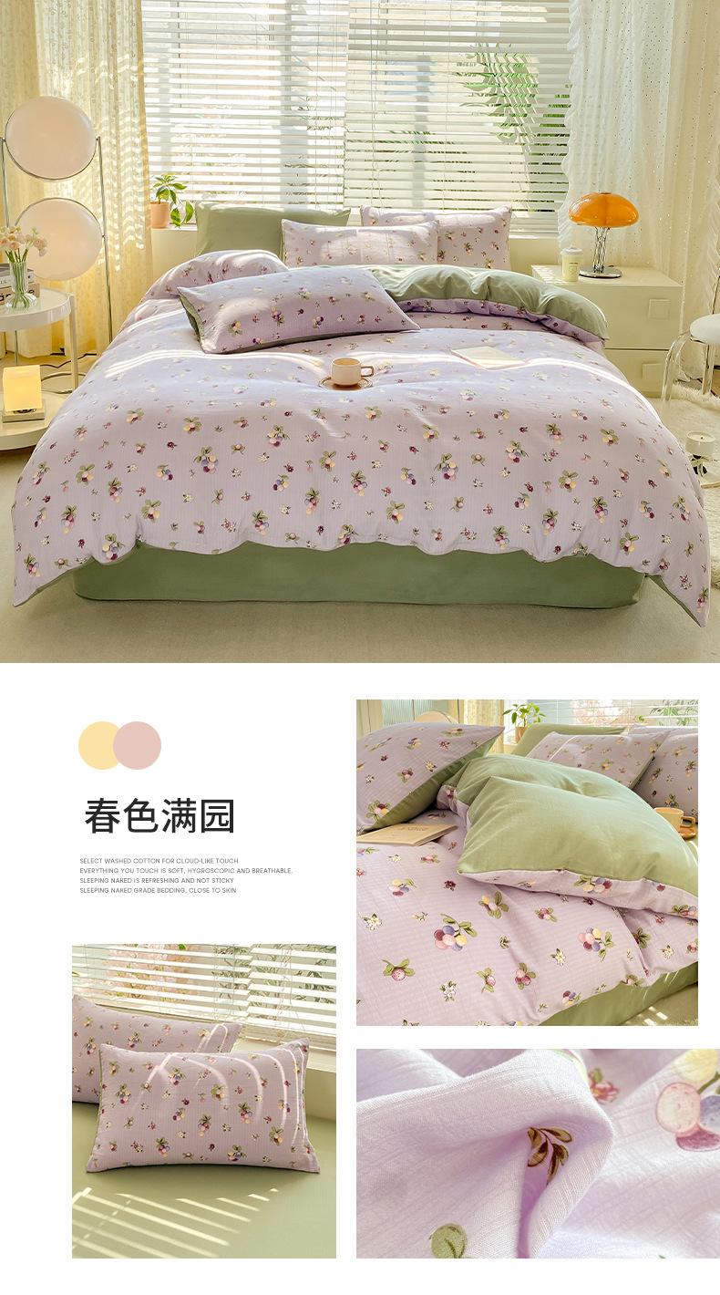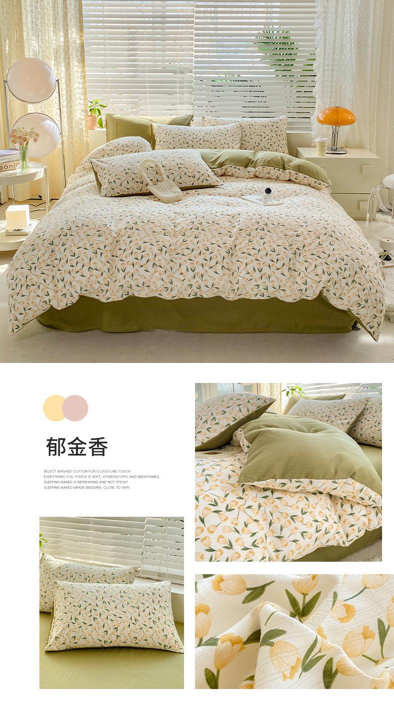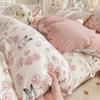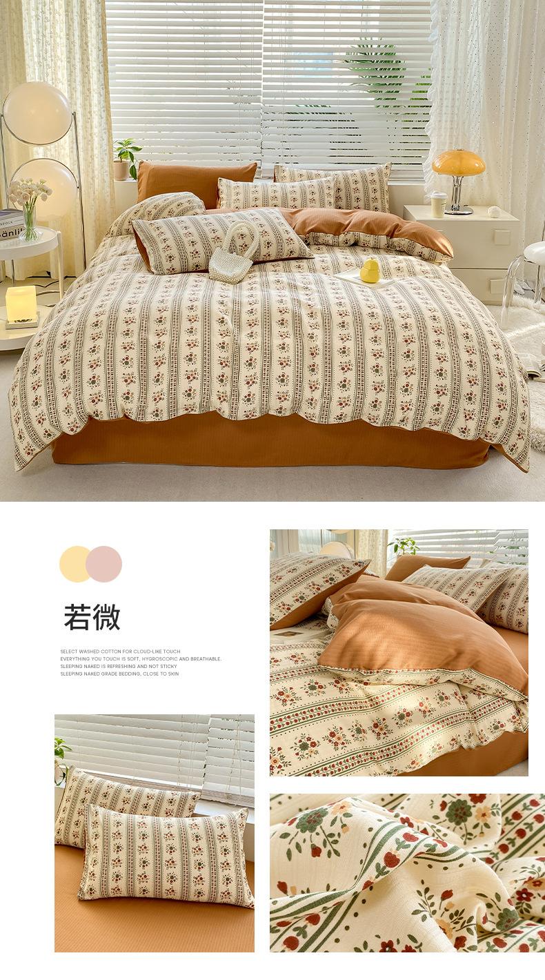 Juego de cama de algodón Zhu súper suave y pequeño de cuatro piezas con estampado retro fresco, funda de cama, juego de cama de tres piezas para dormitorio