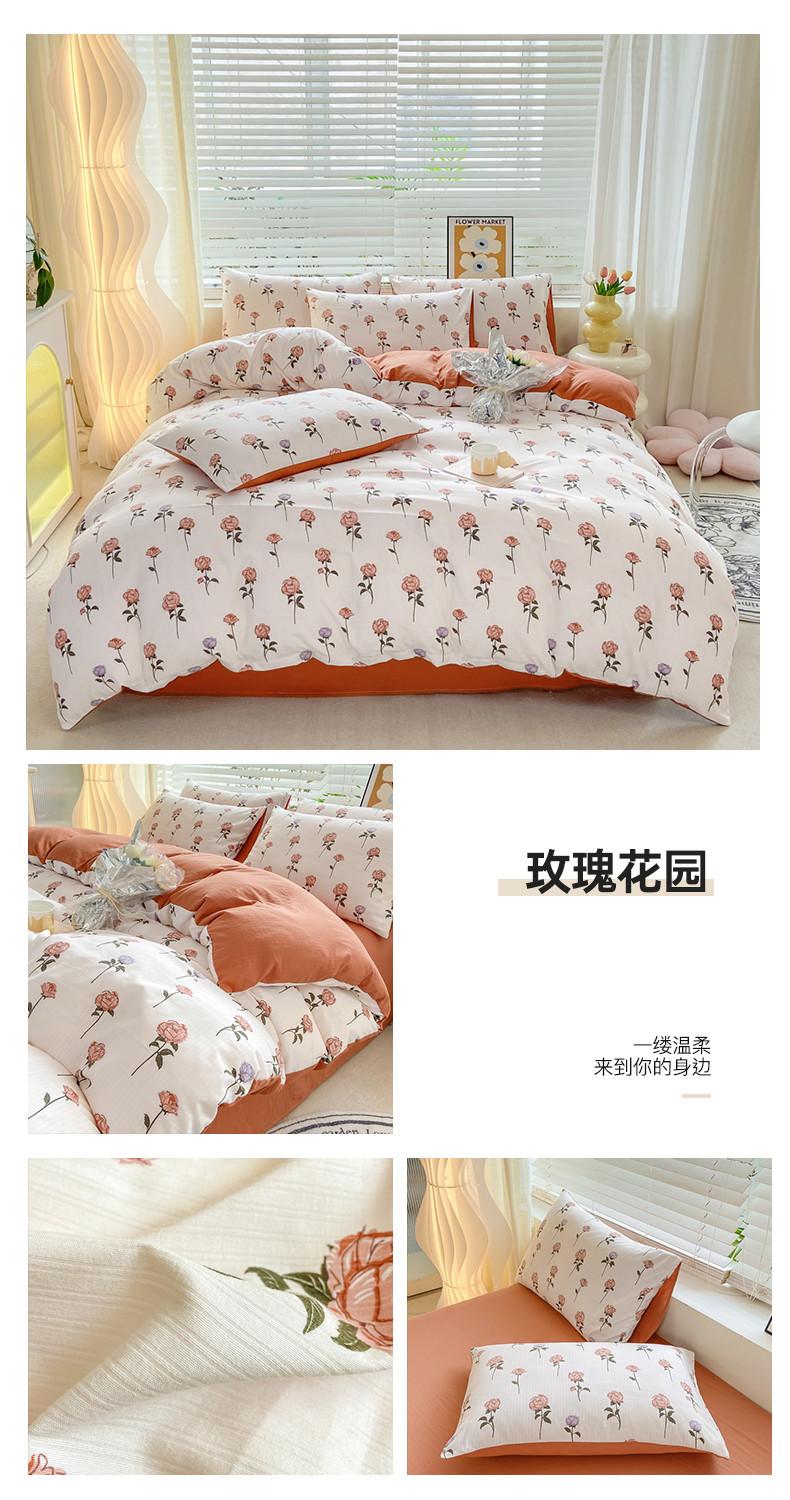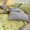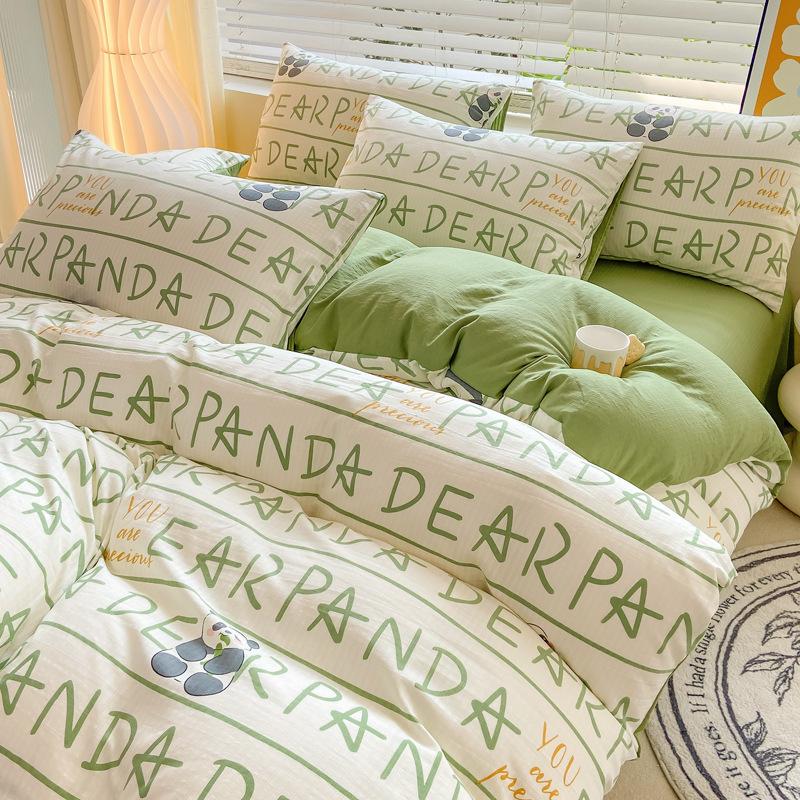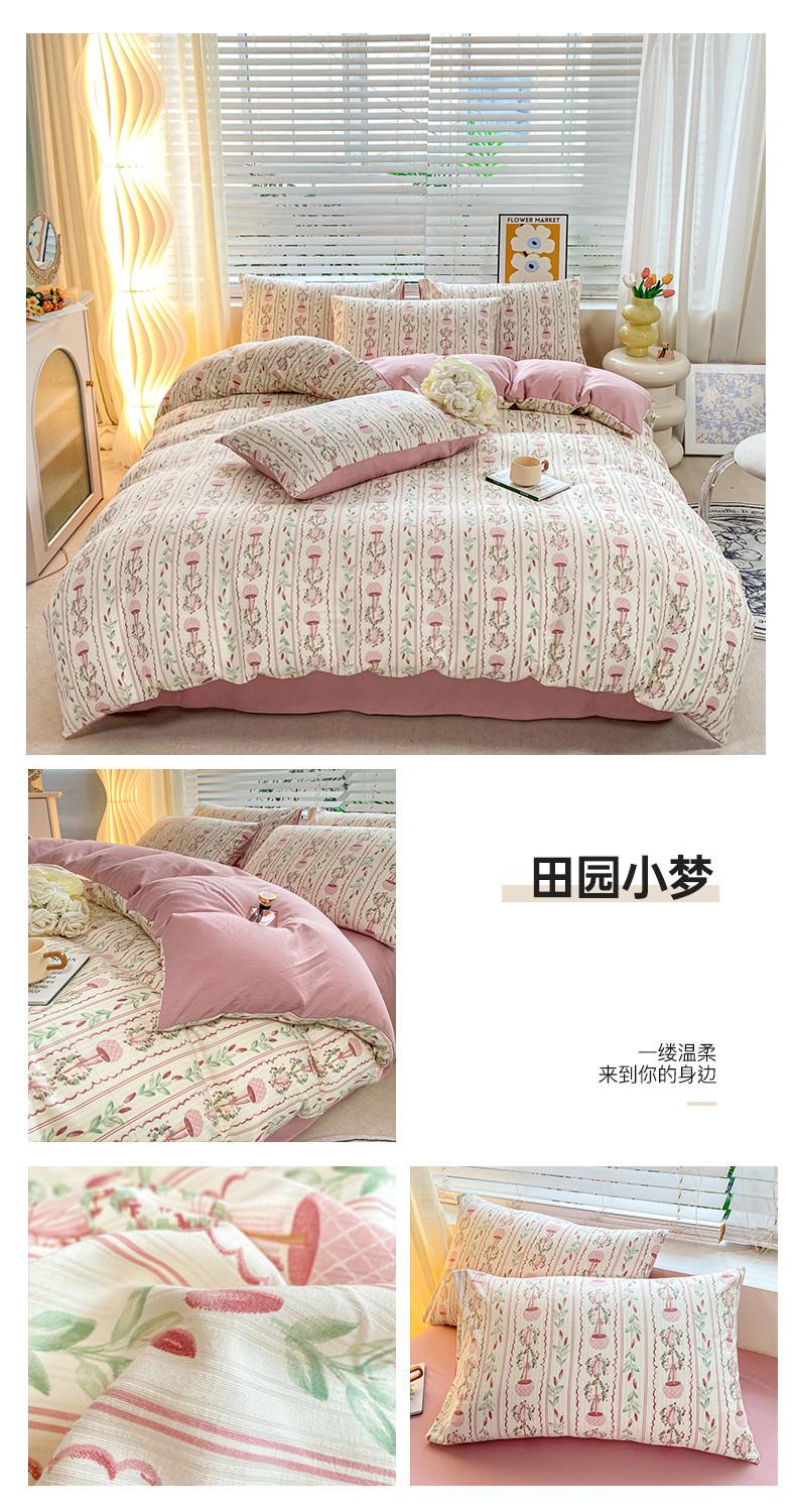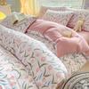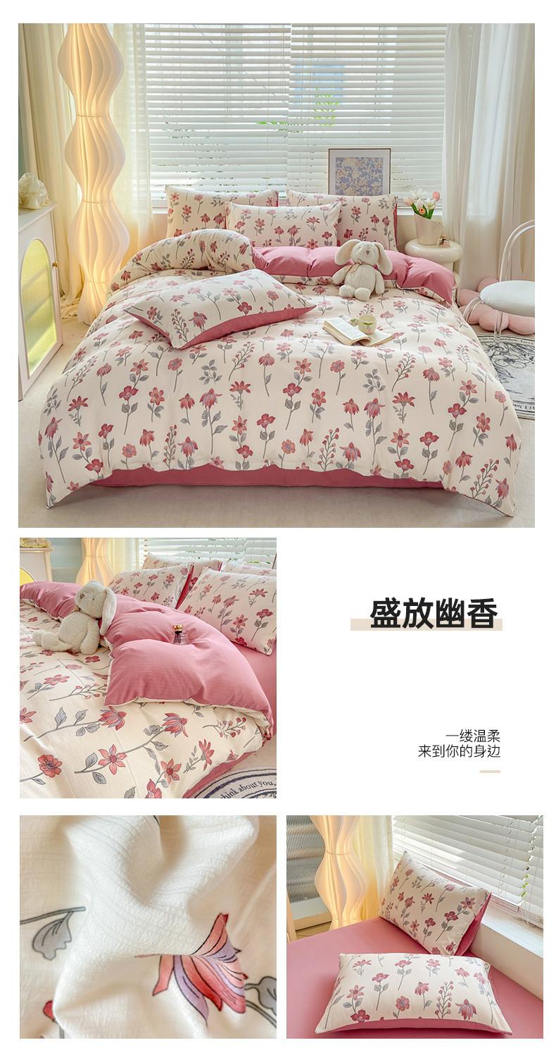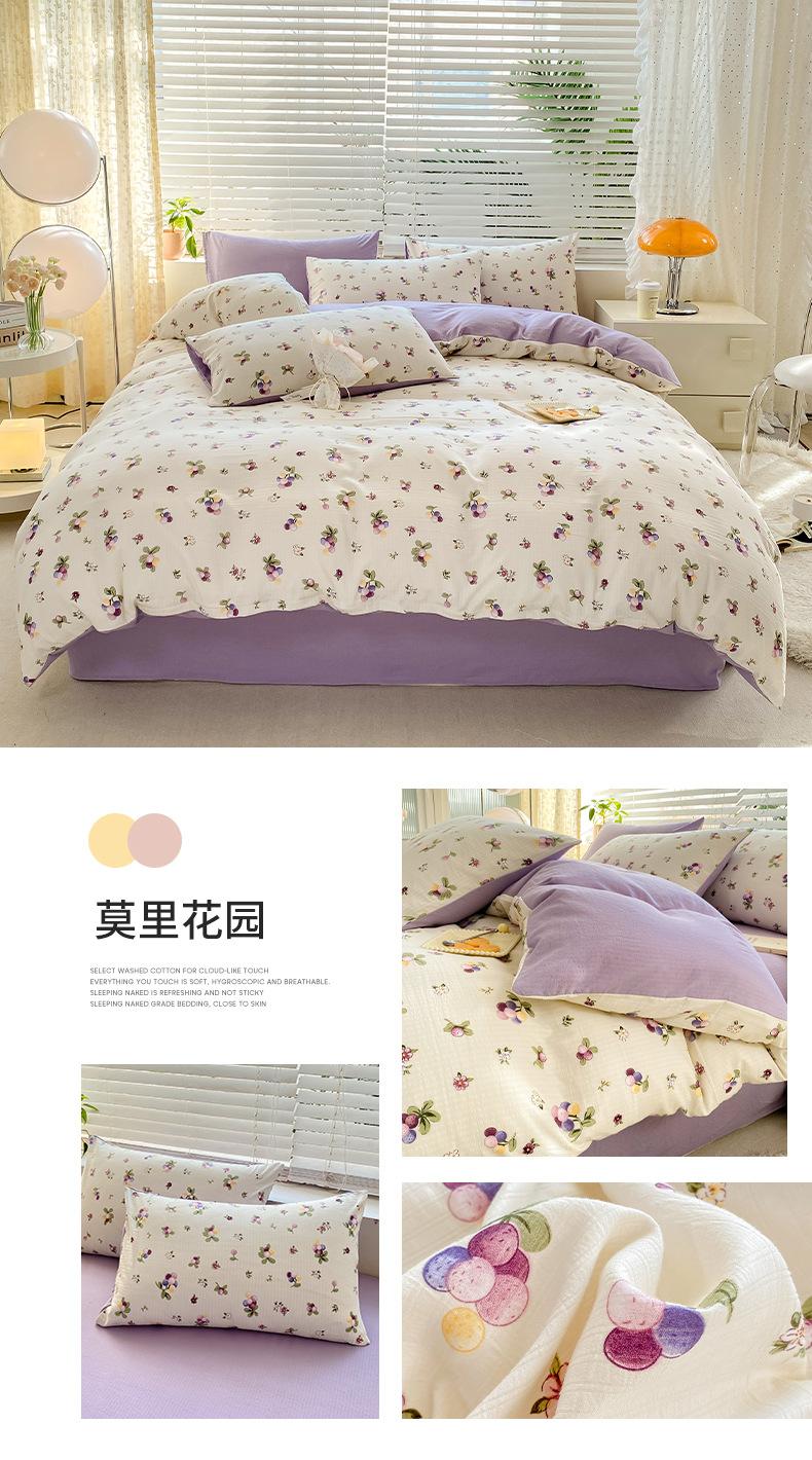 Juego de cama de algodón Zhu súper suave y pequeño de cuatro piezas con estampado retro fresco, funda de cama, juego de cama de tres piezas para dormitorio