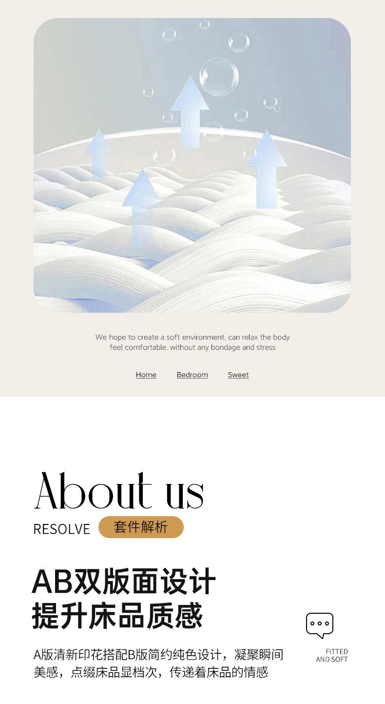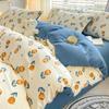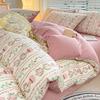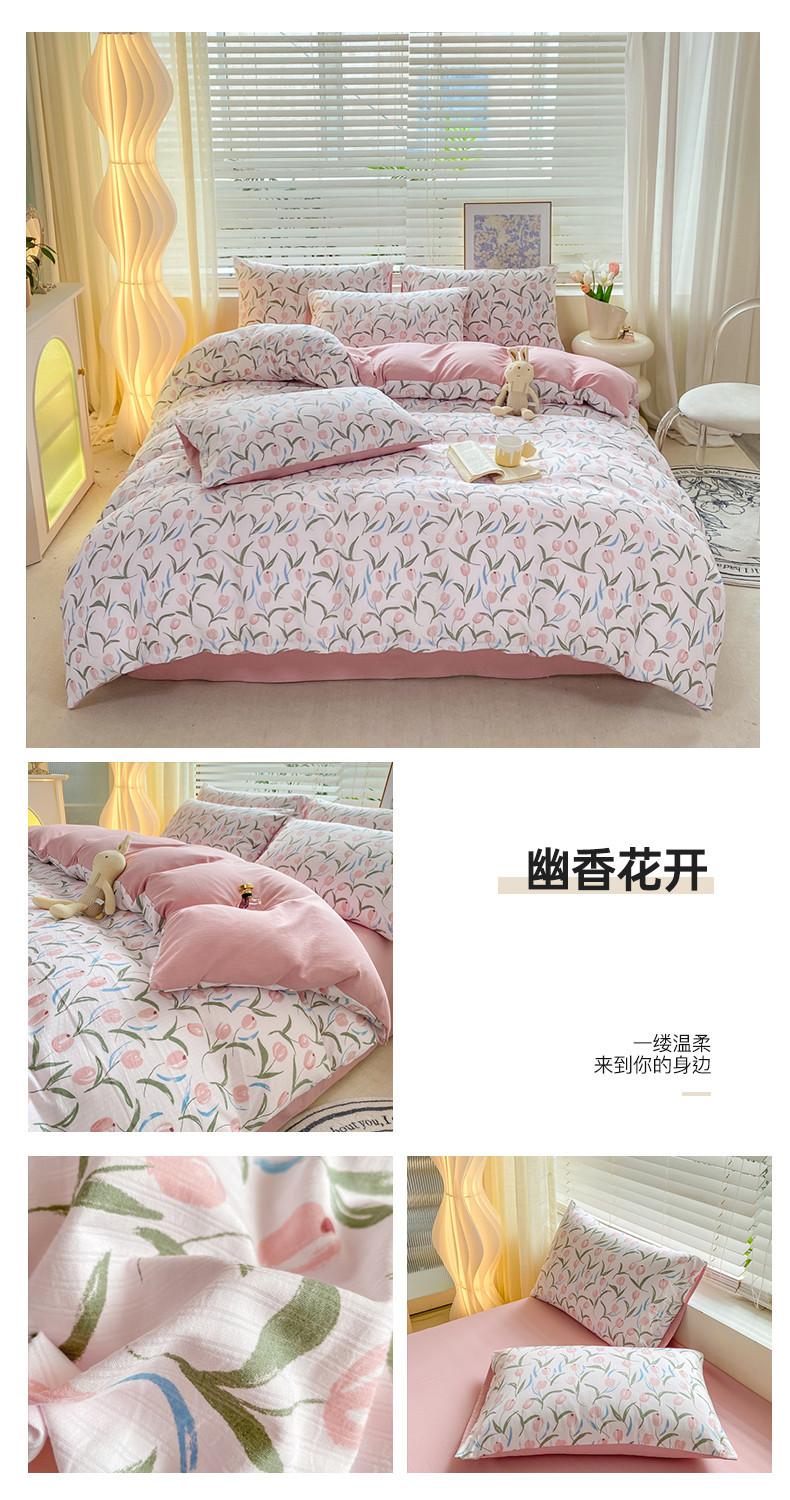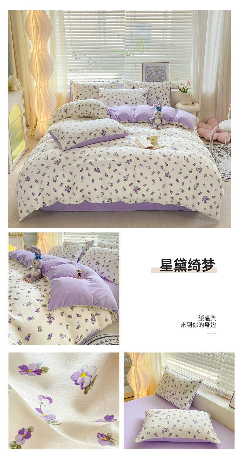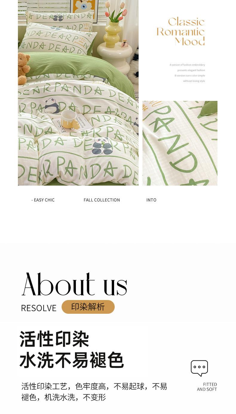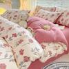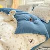 Juego de cama de algodón Zhu súper suave y pequeño de cuatro piezas con estampado retro fresco, funda de cama, juego de cama de tres piezas para dormitorio