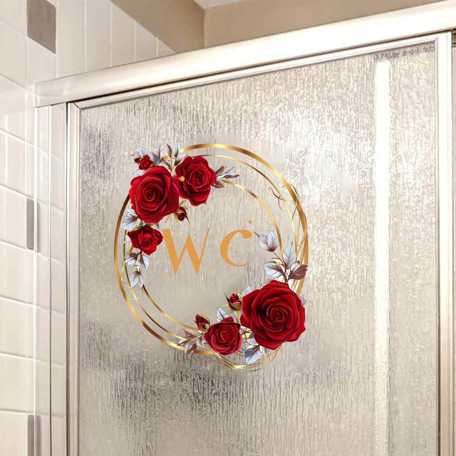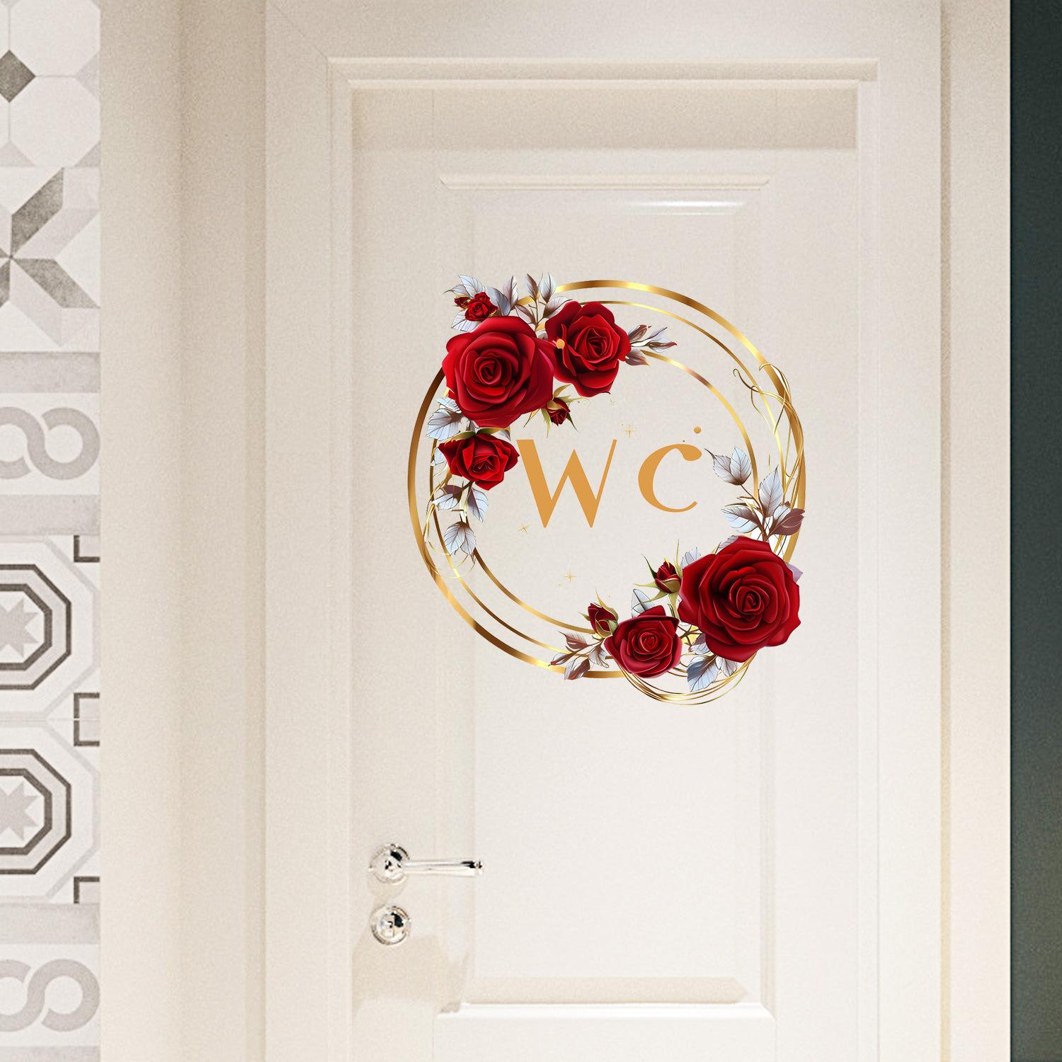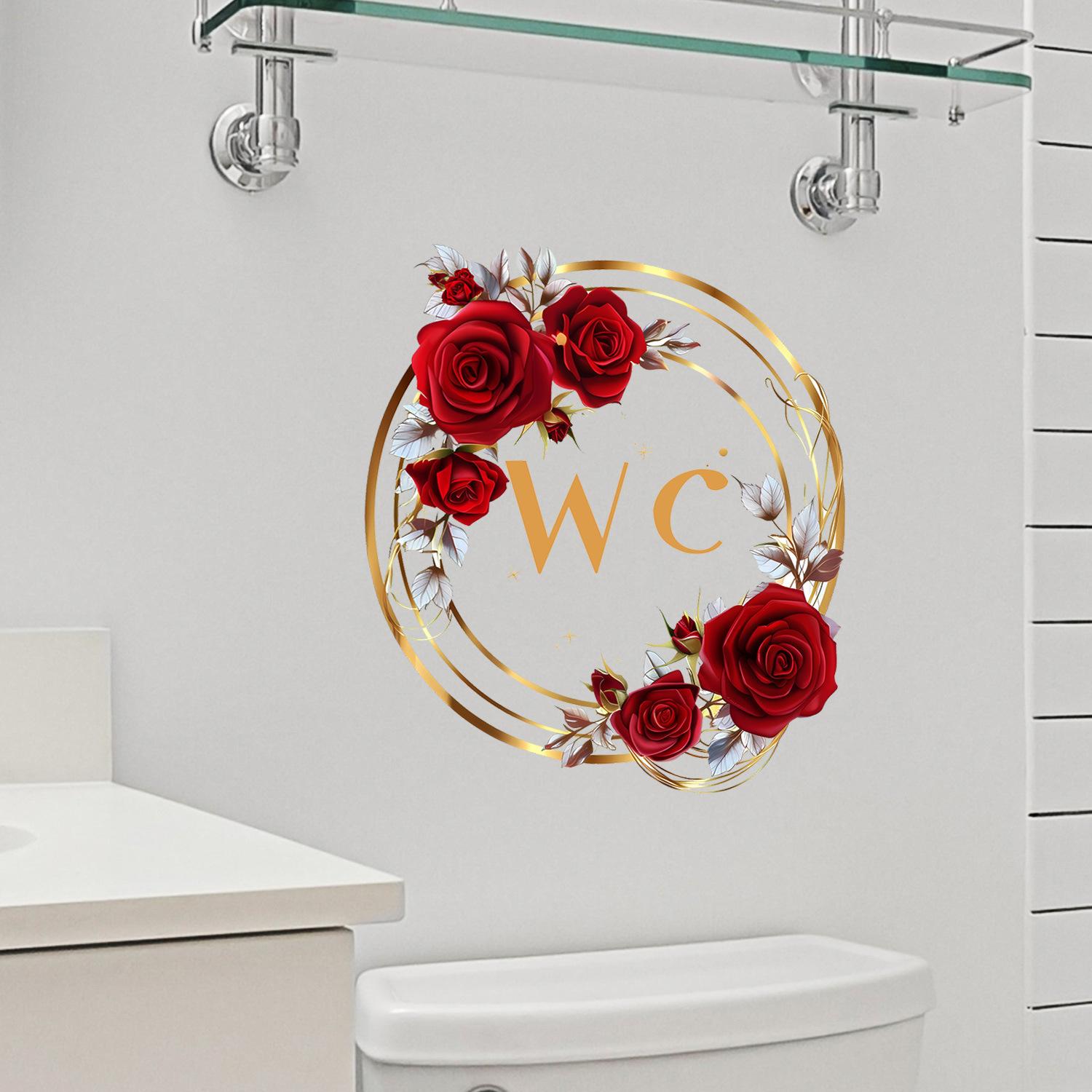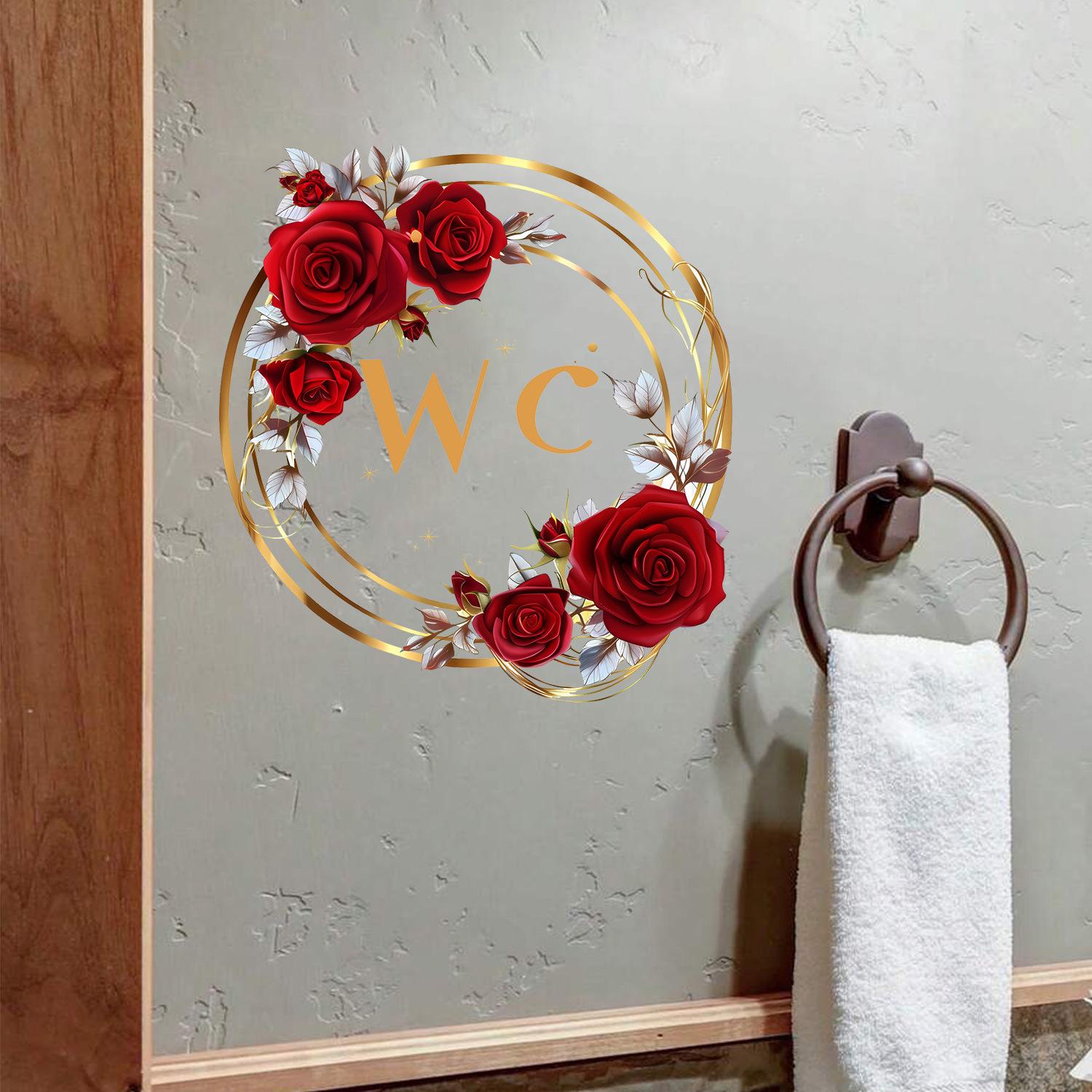 Pegatinas WC Flor Rosa Transfronterizas Amazon Decorativas para Pared de Baño Pegatinas de Puerta Pared Decorativa Autoadhesiva