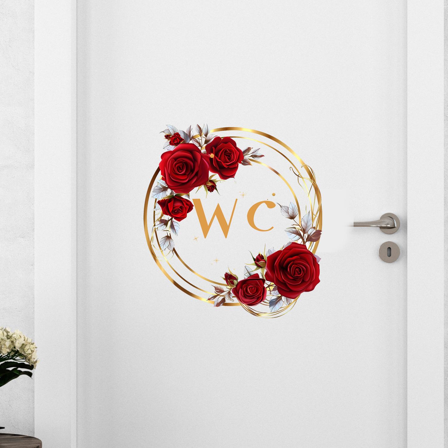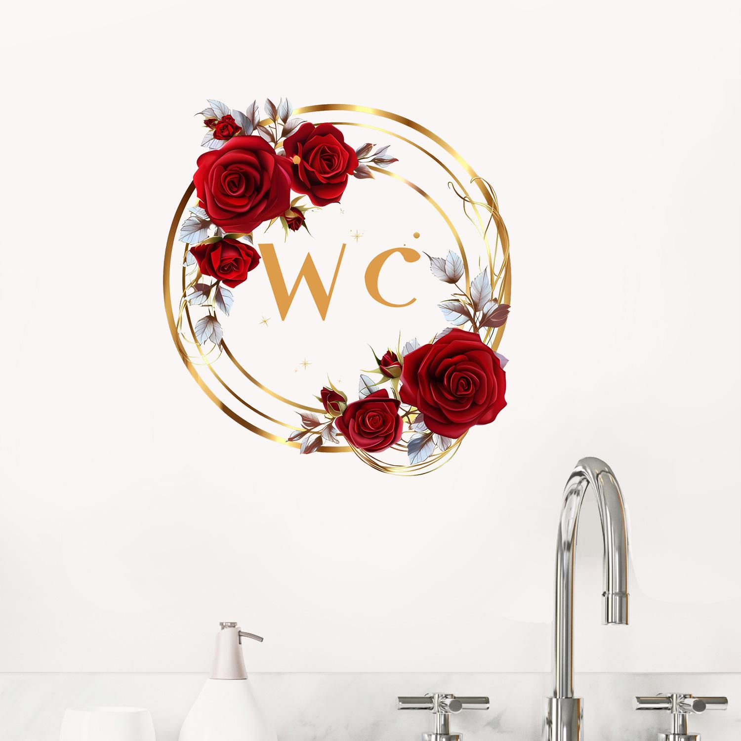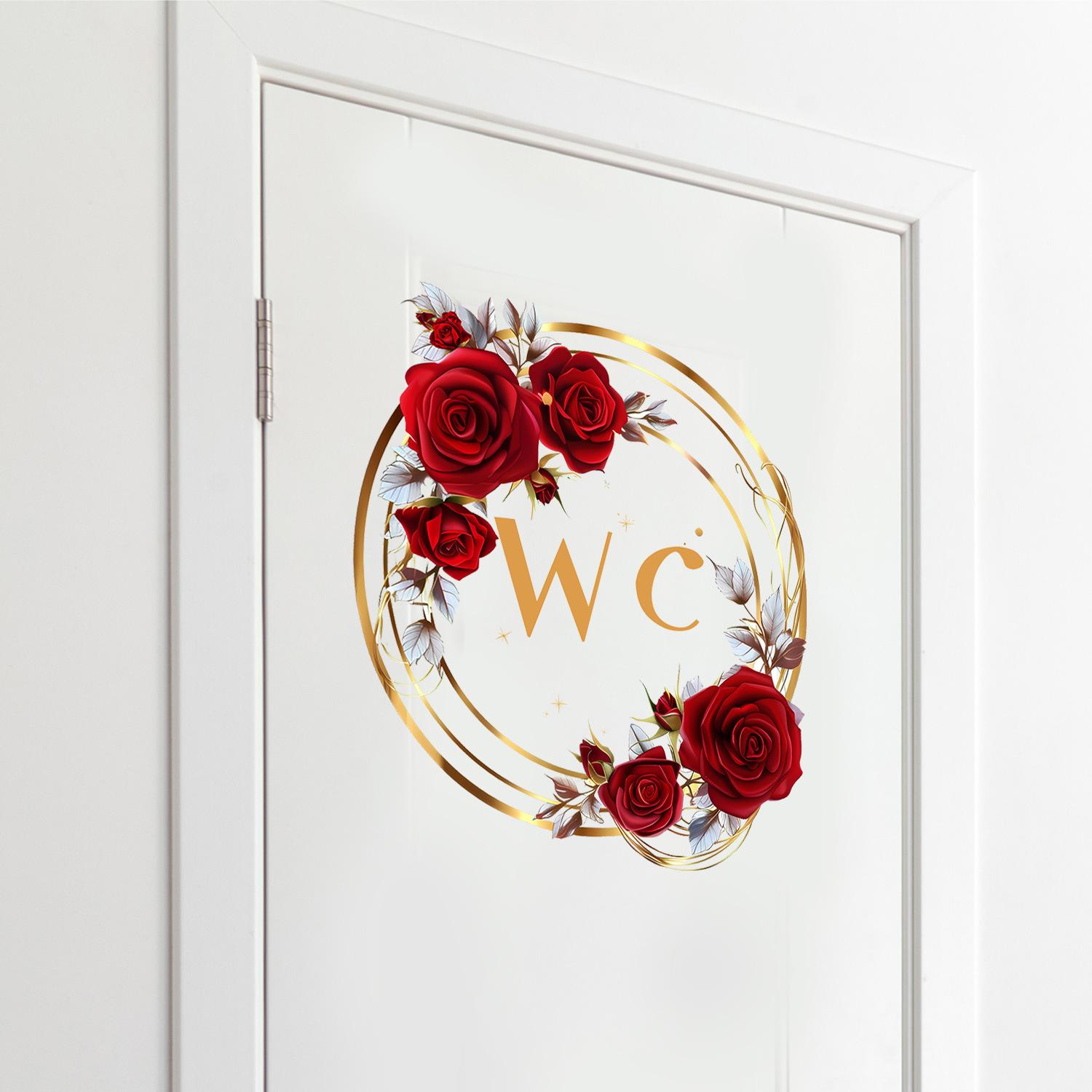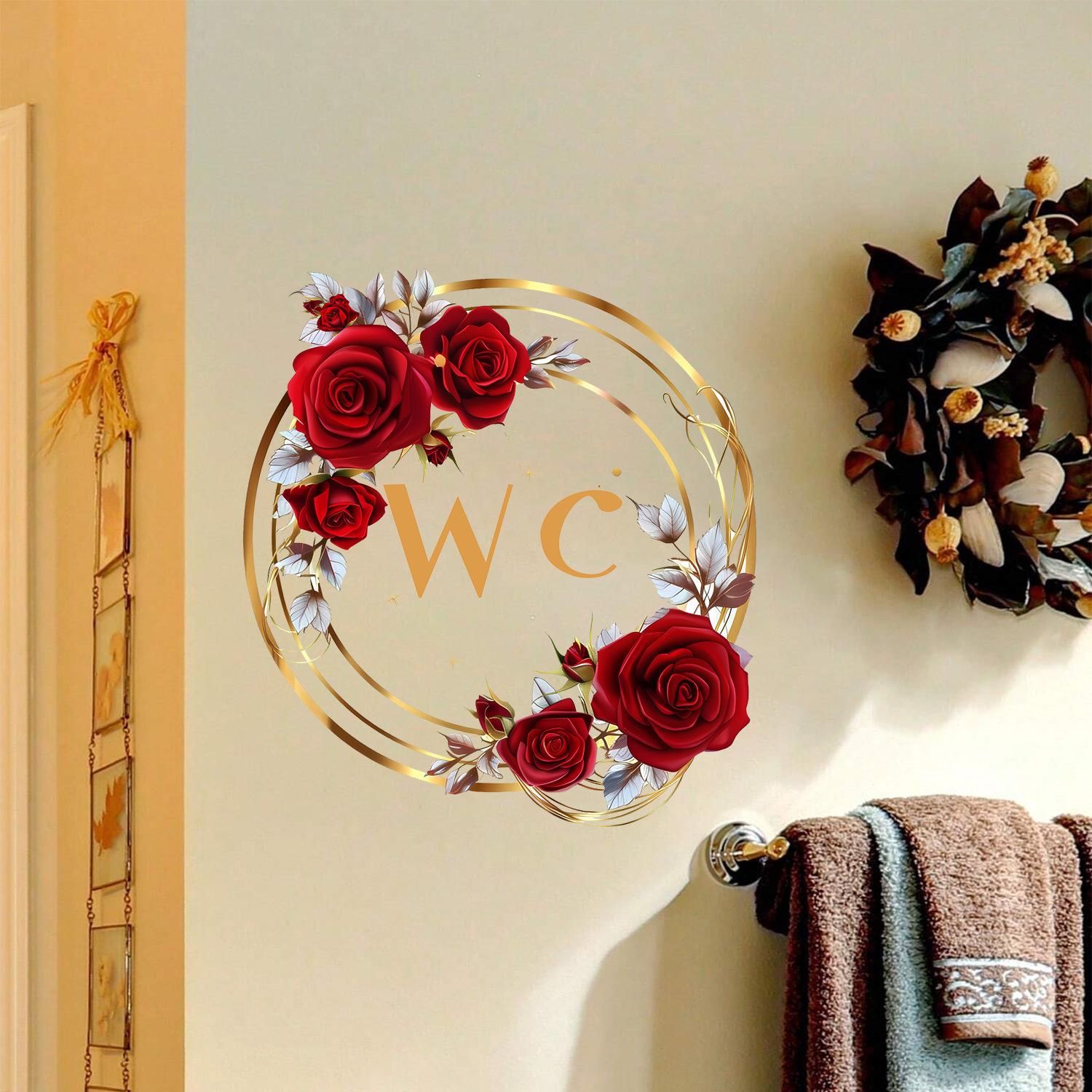 Pegatinas WC Flor Rosa Transfronterizas Amazon Decorativas para Pared de Baño Pegatinas de Puerta Pared Decorativa Autoadhesiva